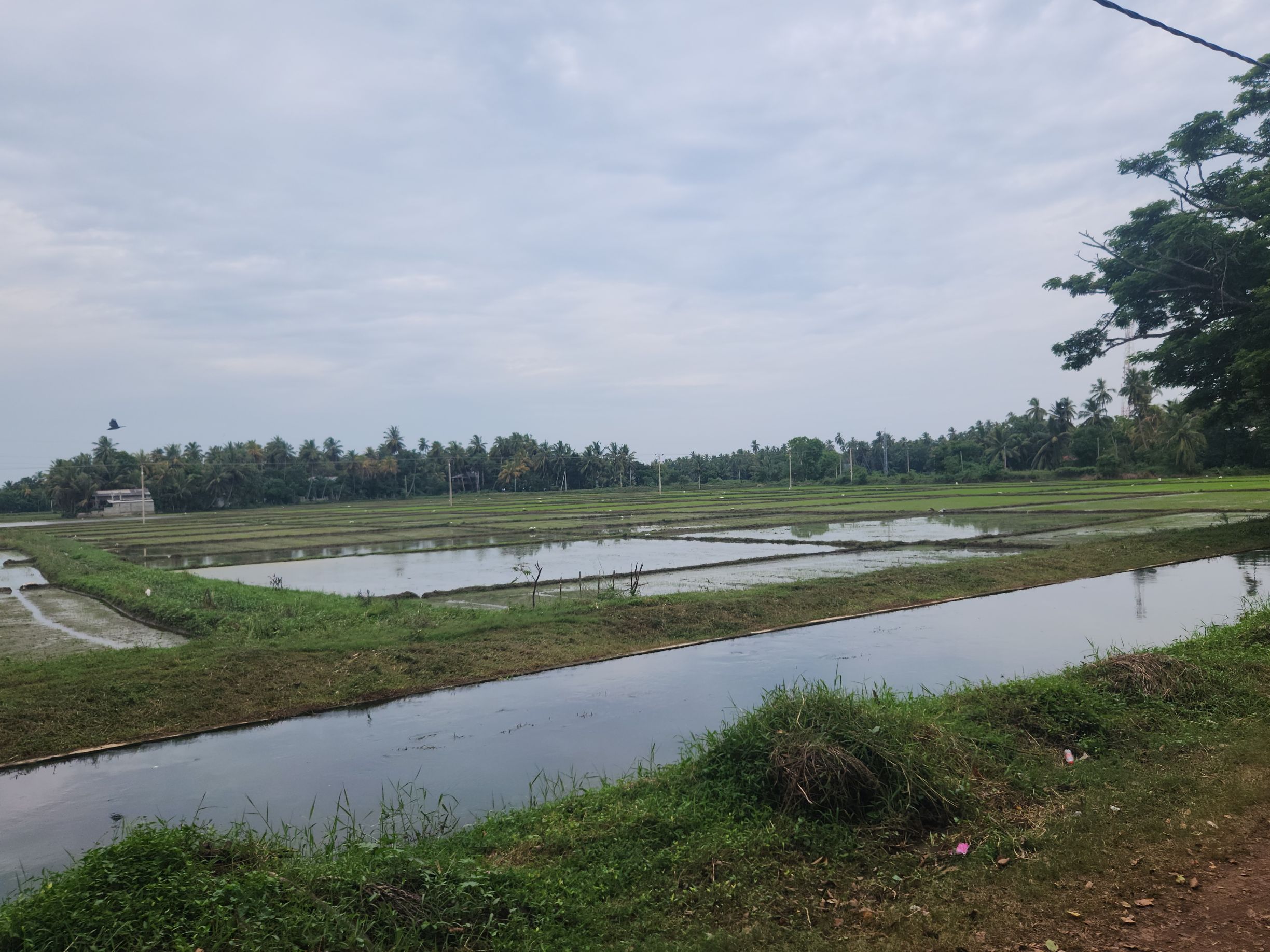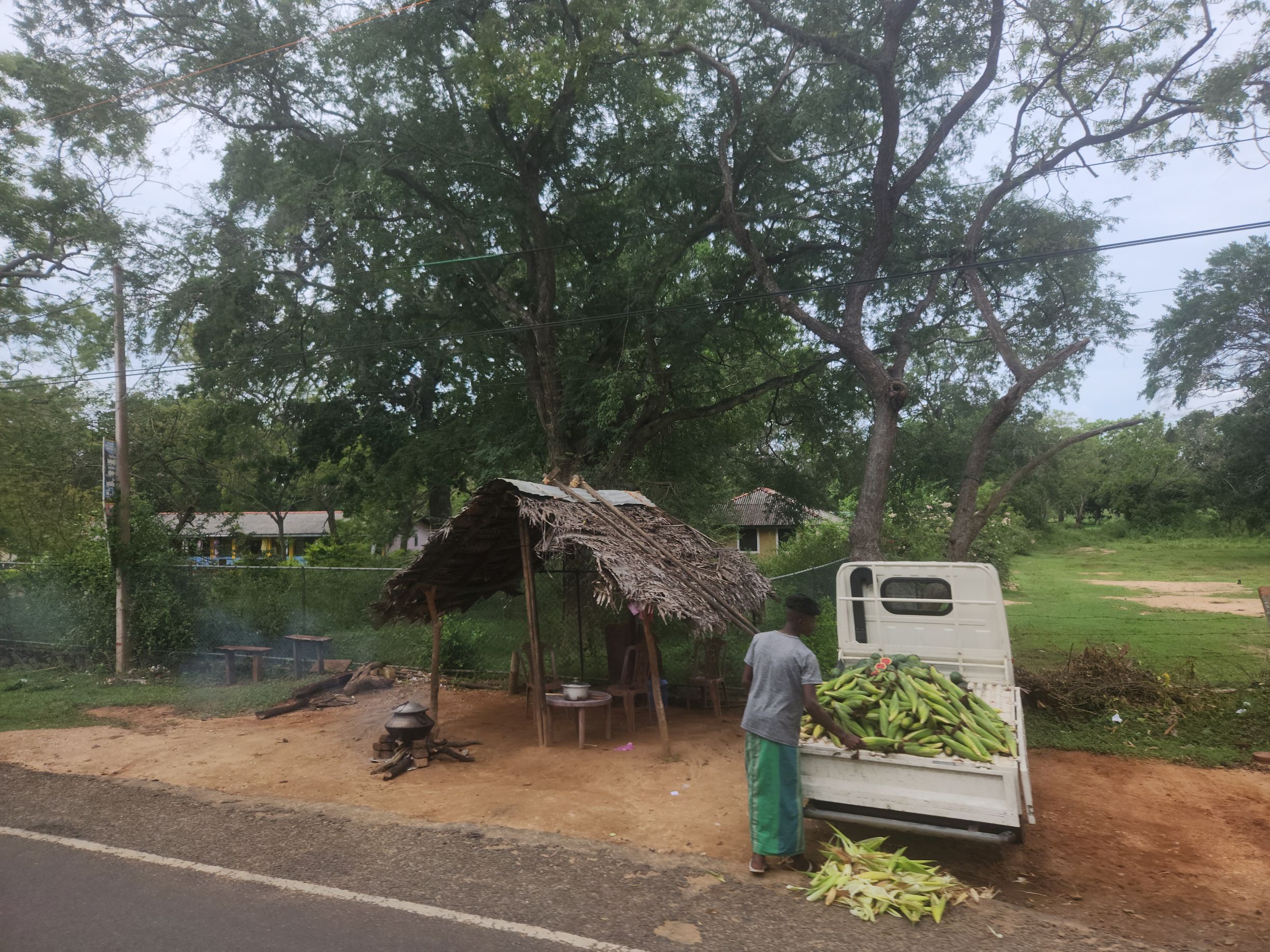 And then we are out into the rice fields stretching as far as you can see on either side of the road. Now it is cows that are wandering down the road, getting in the way. Then to a few little shops on the side of the road and tons of vegetable stalls with fresh corn (apparently in season) and lots of other delicacies. Eventually we stop at a little seafood vendor on the side of the road, where Ramesh gets out to buy some seafood. Lunch? Oh, this could be fun!