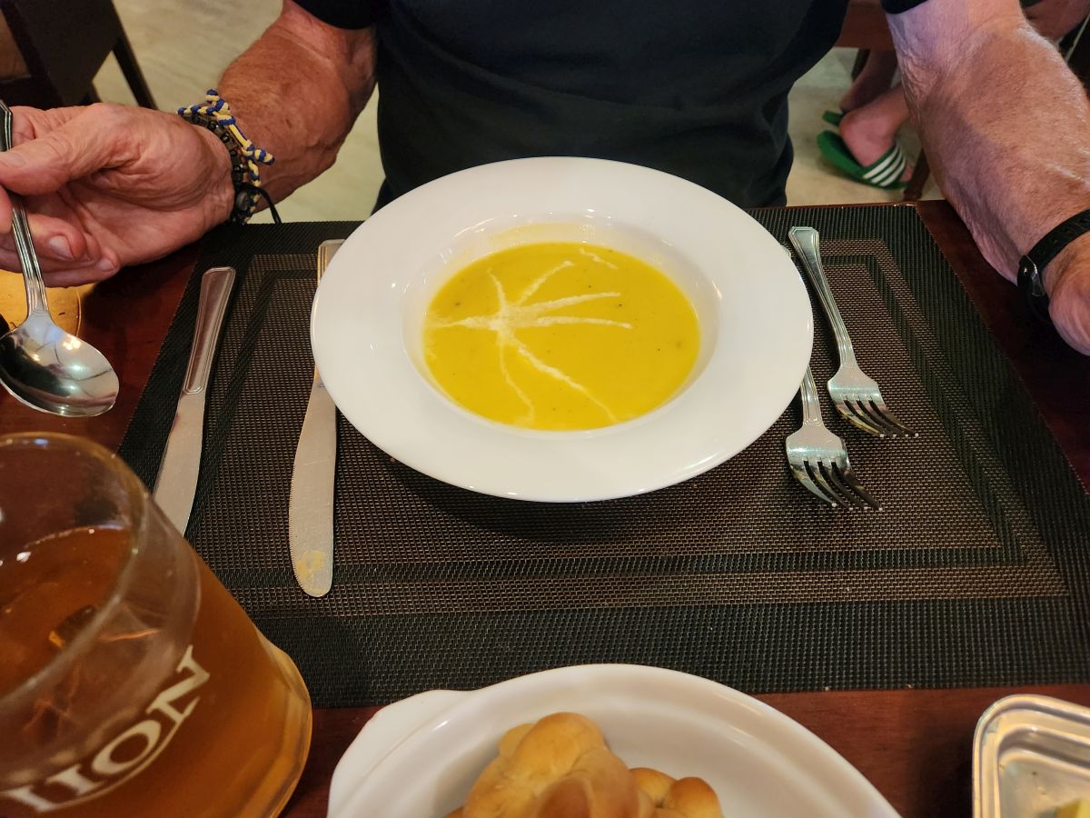 We listen to the fat guy complain about Azamara and their coordination, which in his opinion is “rubbish.” And while we are not going to say we don’t have issues with some of the things on this cruise, this is really not one of them. It is the Quest’s first time in the port. There really truly is not a lot of support from the port here – it is rural and container based – and it isn’t Azamara’s fault there is no shuttle. They provided one – for free – to the Shangri-la where you could easily get a taxi into whatever town there might be here. Complaining to complain. Will let you guess the nationality.