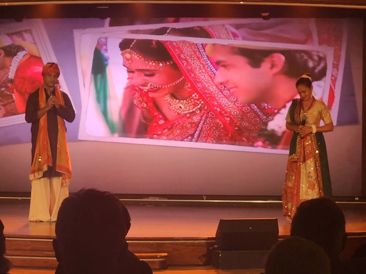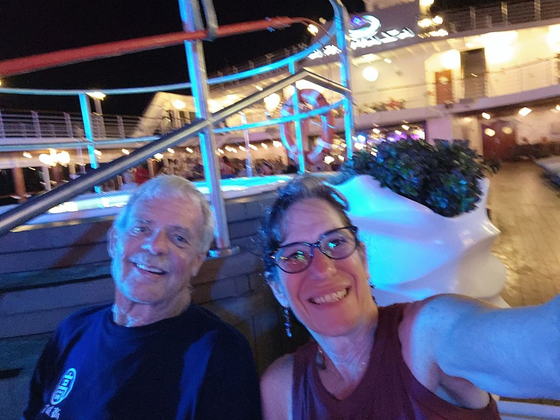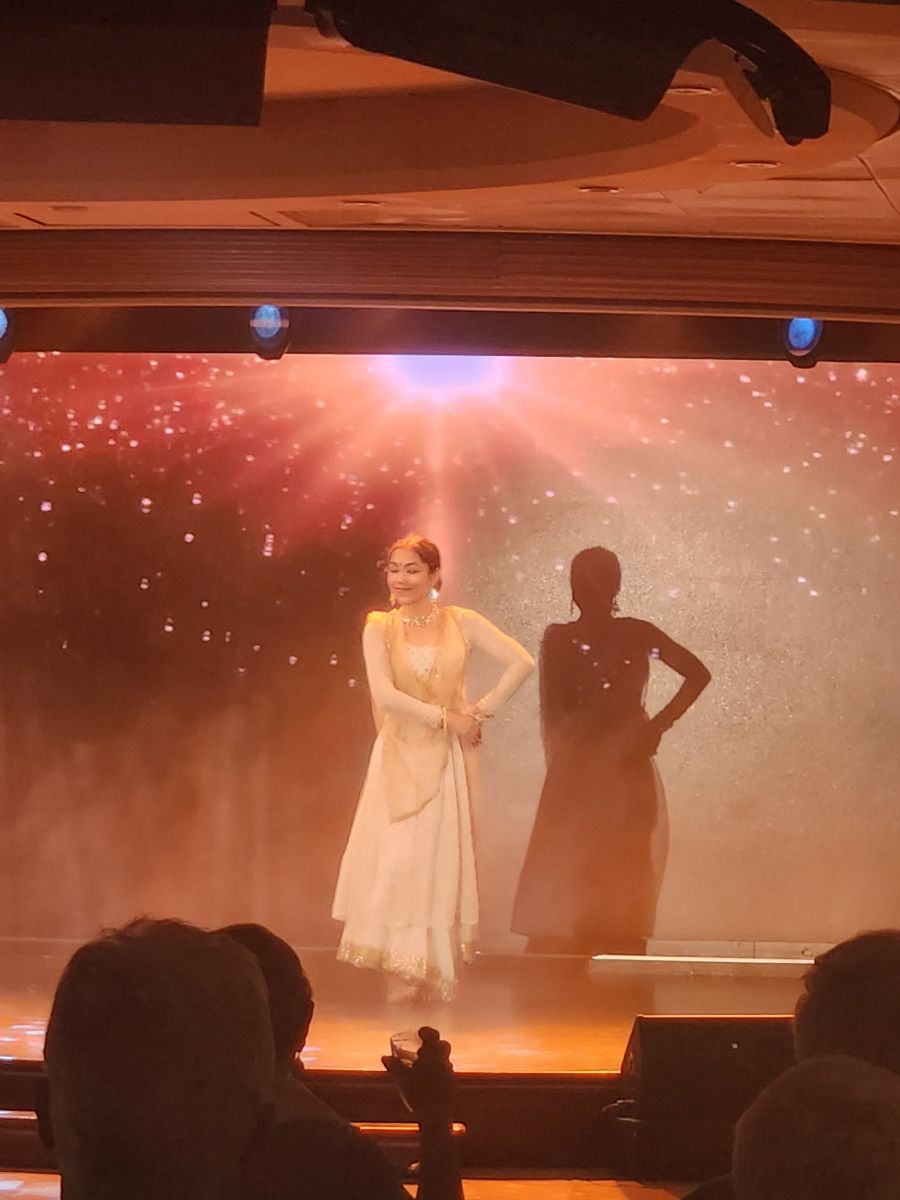 Friday – Day 7, last sea day. Same, same, no different. Gym, breakfast, coffee and trivia, Connie lecture, lunch, blogging, early afternoon gym because the dancing and acting “showcase” with all the passengers is at 5pm. Can’t miss that. And wow, did they put on a show. Acting and dancing as is they were at an Indian wedding. They were so impressive – the whole performance really came together in the last couple of days. We had tears in our eyes, it was so good and nice and fun. After the passenger performance, the professional Indian dancer (whose name I can’t recall) performed some wonderful dances, then Sumeet and Sasha closed out the show with pictures of their wedding and a farewell and thank you. Excellent series.