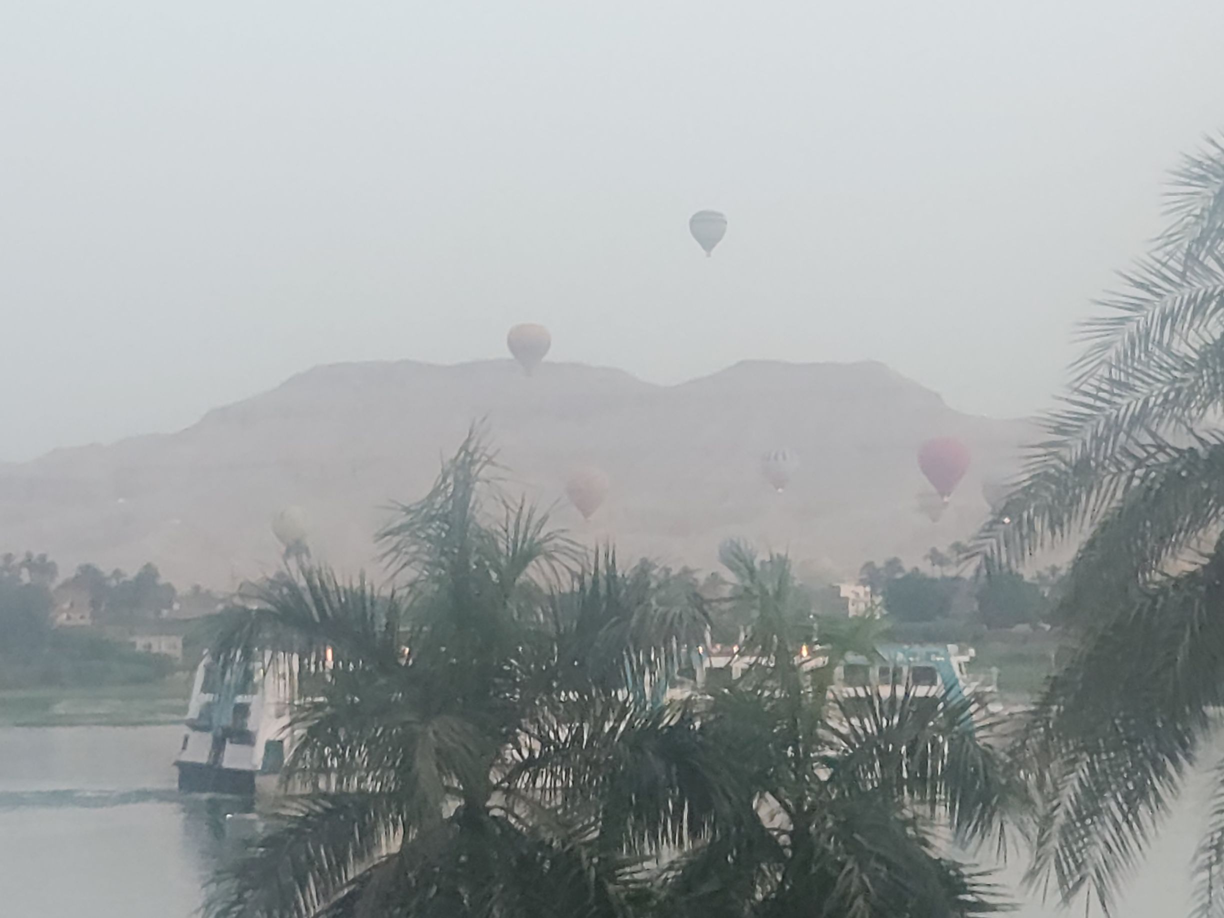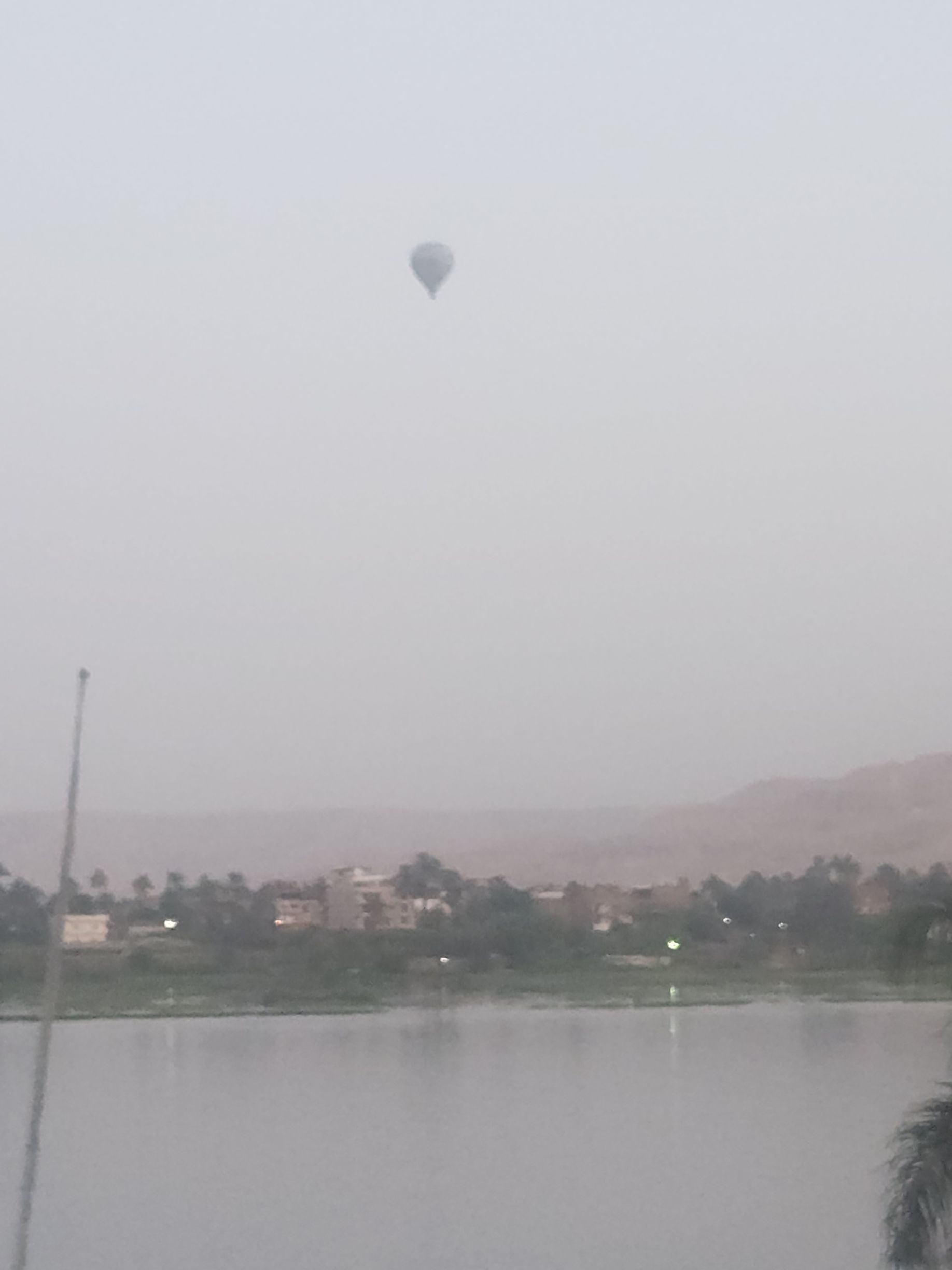 Early rising this morning, but we had lots of rest and are ready to go to before our 5:30 wake up call. And as a bonus – we are treated to a beautiful view of balloons being launched on the West Bank of the Nile. There are tons of them! Now I know what the guys who were paying their bill at the same time we were last night were doing this morning – because they asked for a breakfast box. Makes sense coz they must have had to leave the hotel at 5am! And we thought we were early birds.