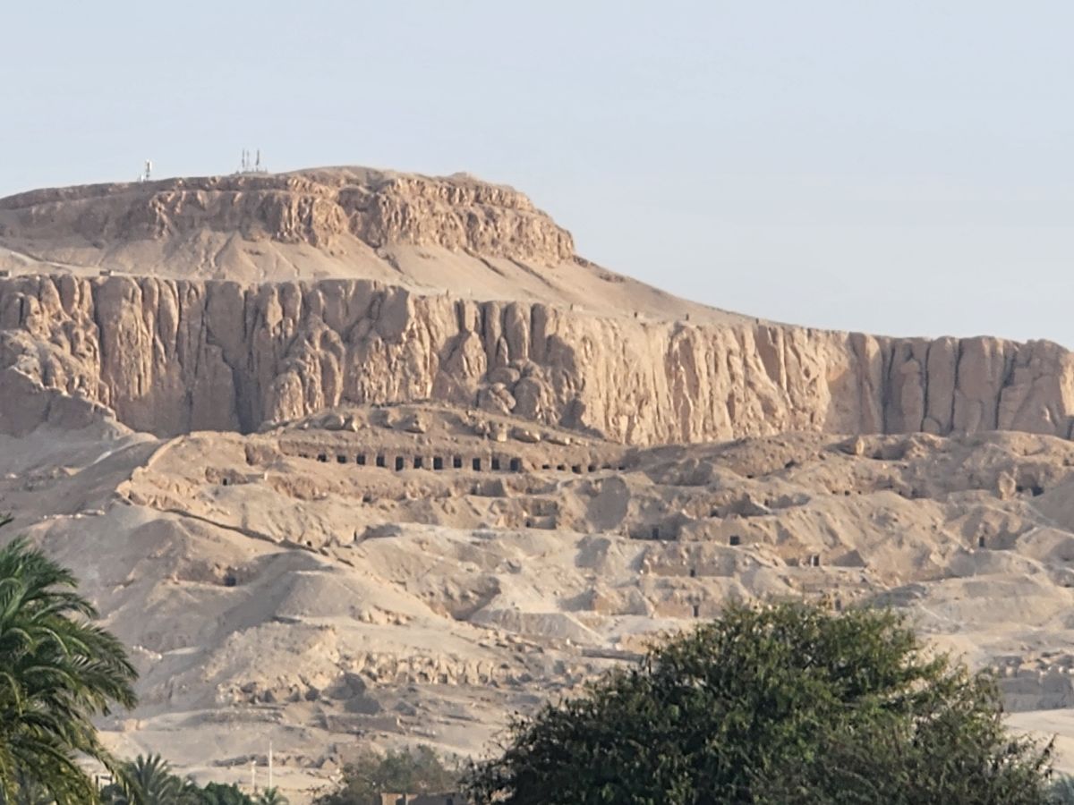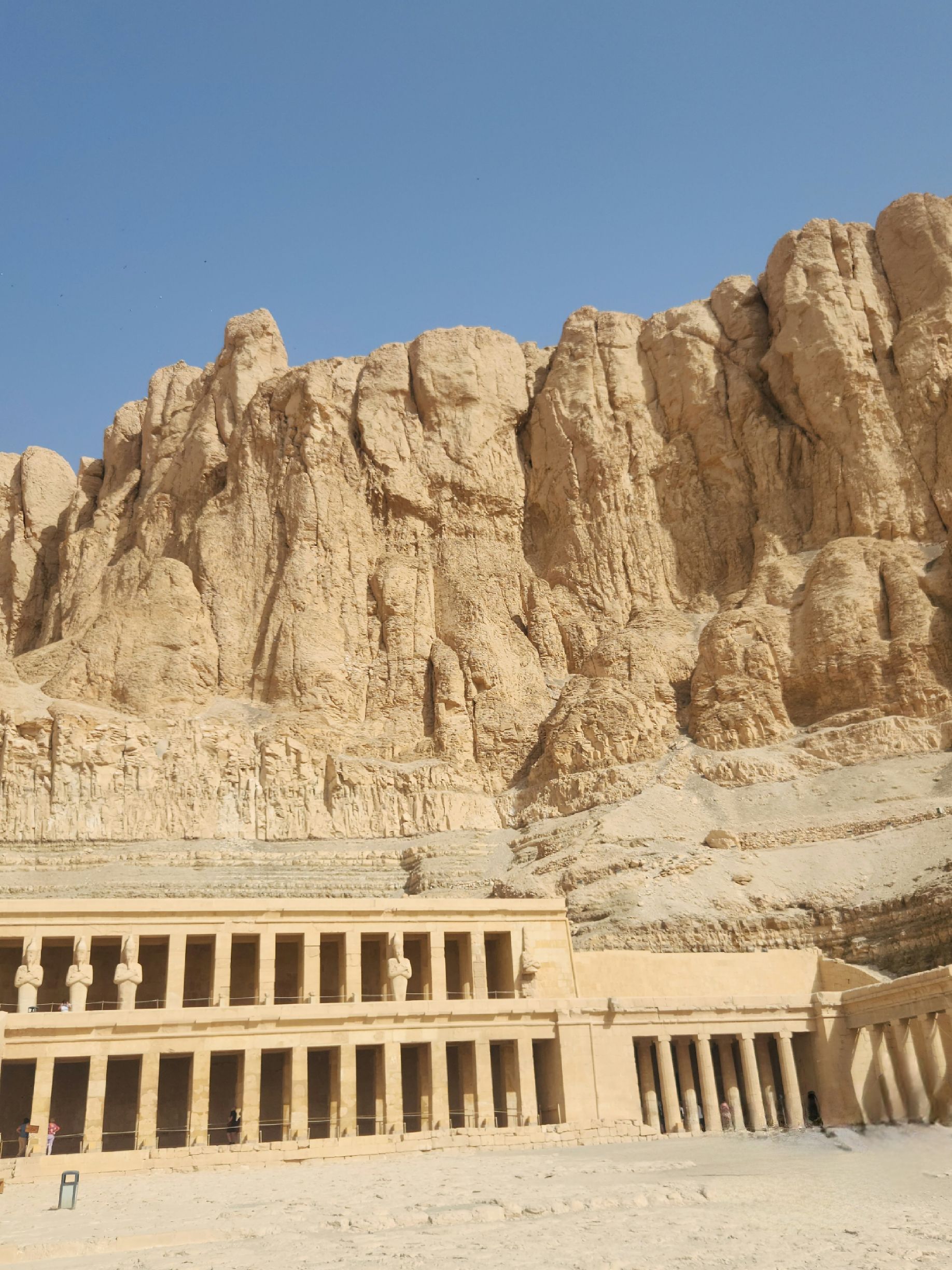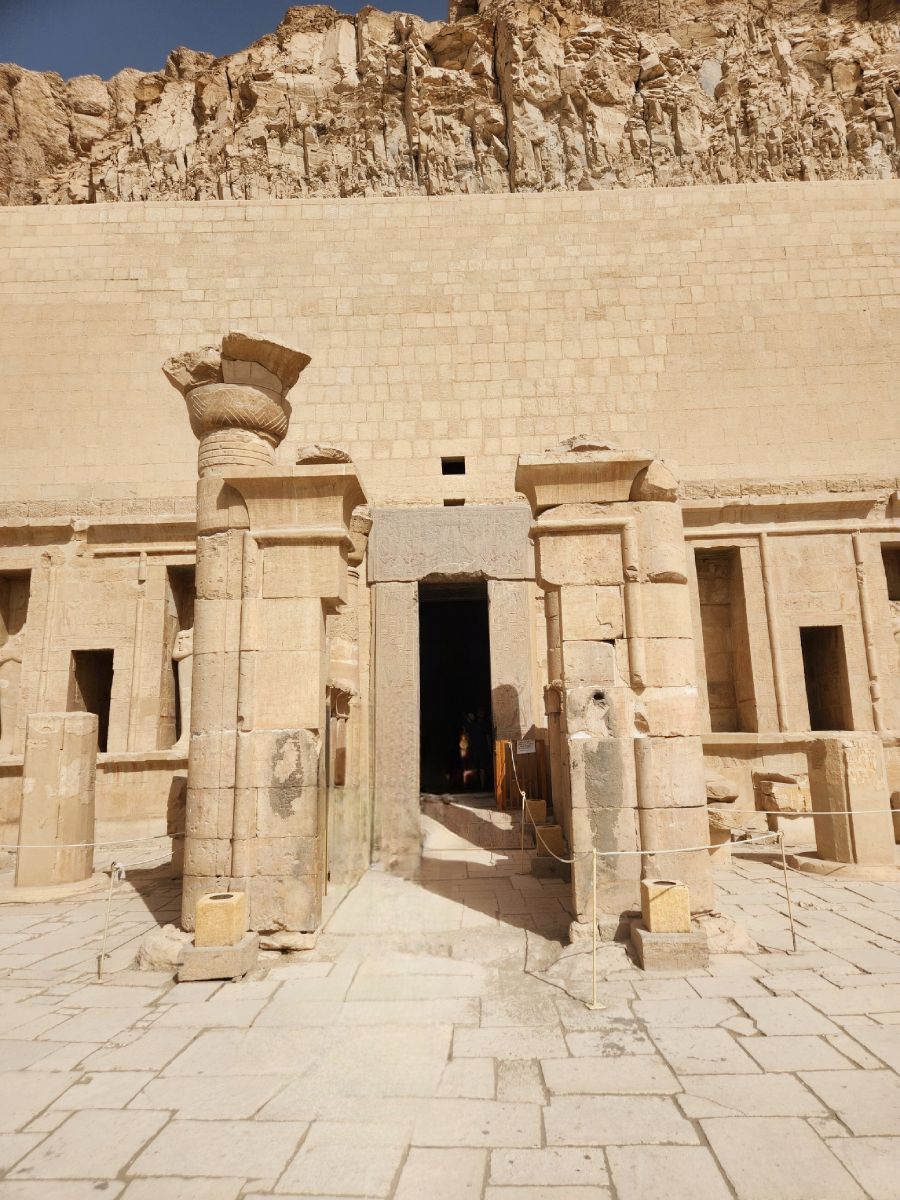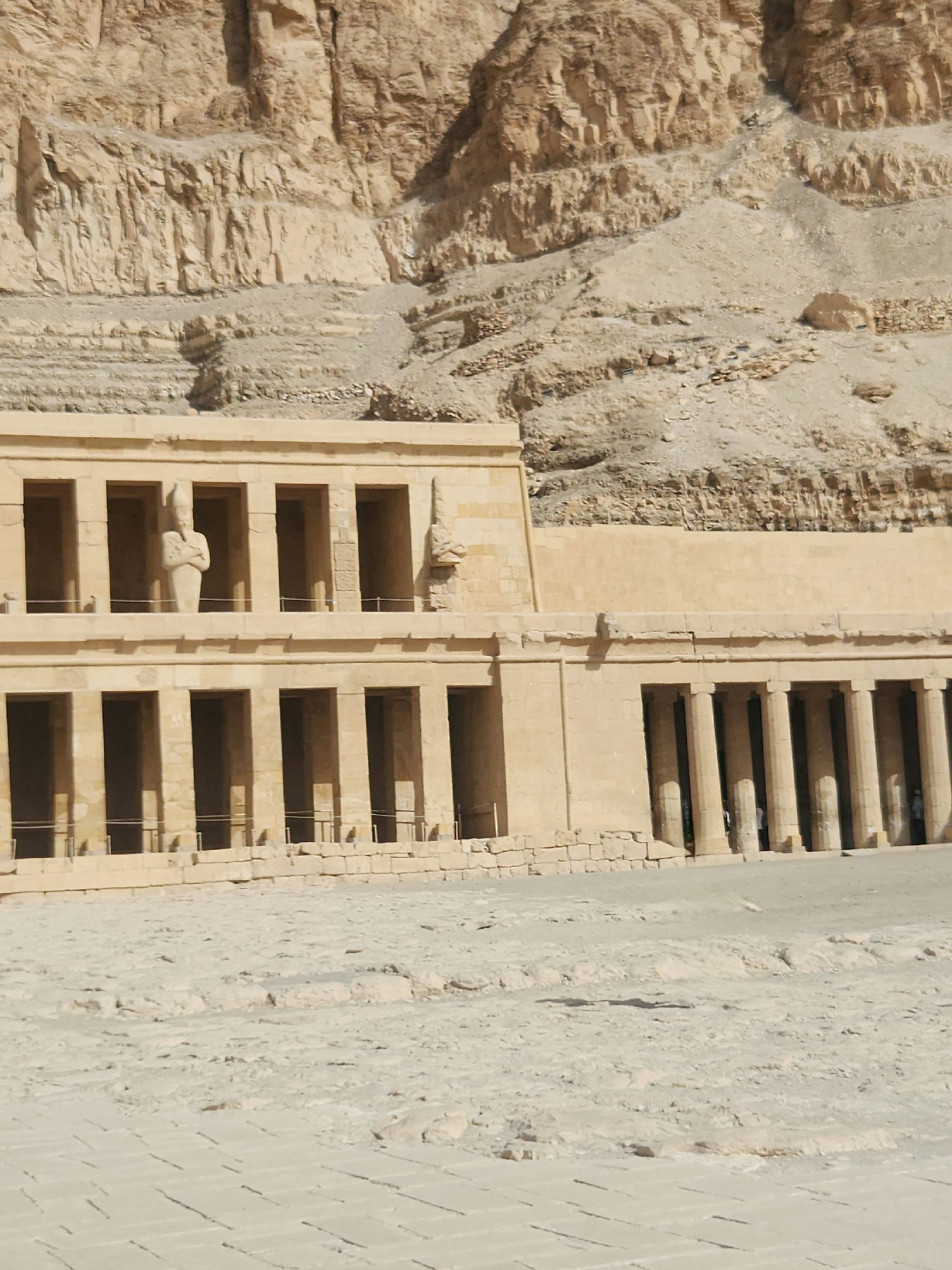 This tomb/complex was wholly different from the Valley of the Kings. Built into the side of the limestone mountain on the exact opposite side from the kings, it’s massive with 3 stories and pillared with huge figurines. The architect promised the queen he would build her a tomb like no other in the land and he did. Built for the wives of the Pharoahs, it was also used for nobles and other members of the royal families. Over 90 tombs were initially found here.