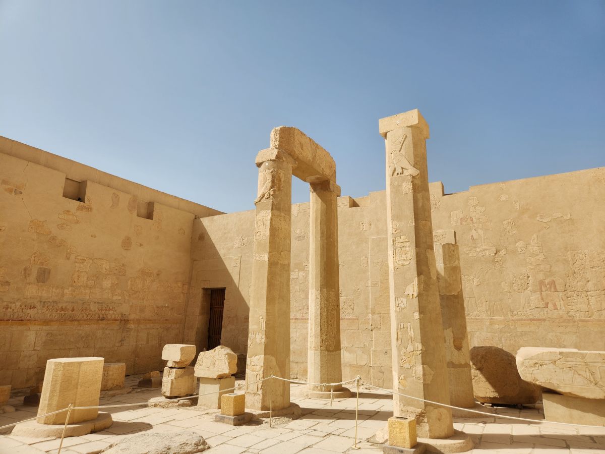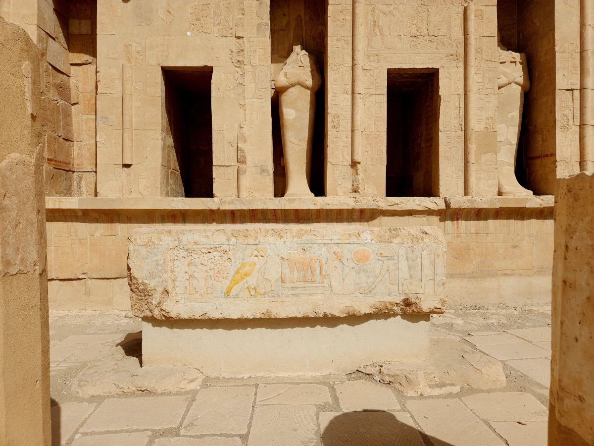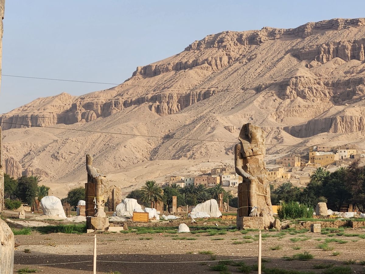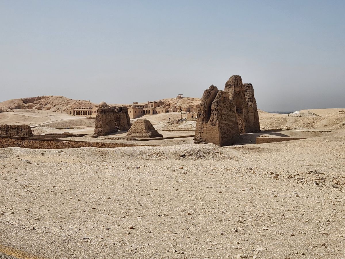 This tomb/complex was wholly different from the Valley of the Kings. Built into the side of the limestone mountain on the exact opposite side from the kings, it’s massive with 3 stories and pillared with huge figurines. The architect promised the queen he would build her a tomb like no other in the land and he did. Built for the wives of the Pharoahs, it was also used for nobles and other members of the royal families. Over 90 tombs were initially found here.