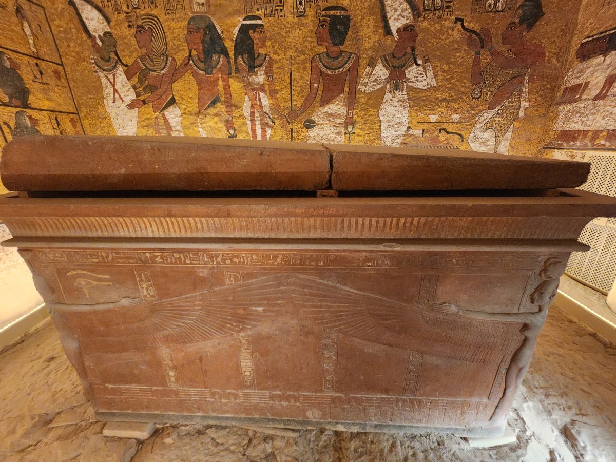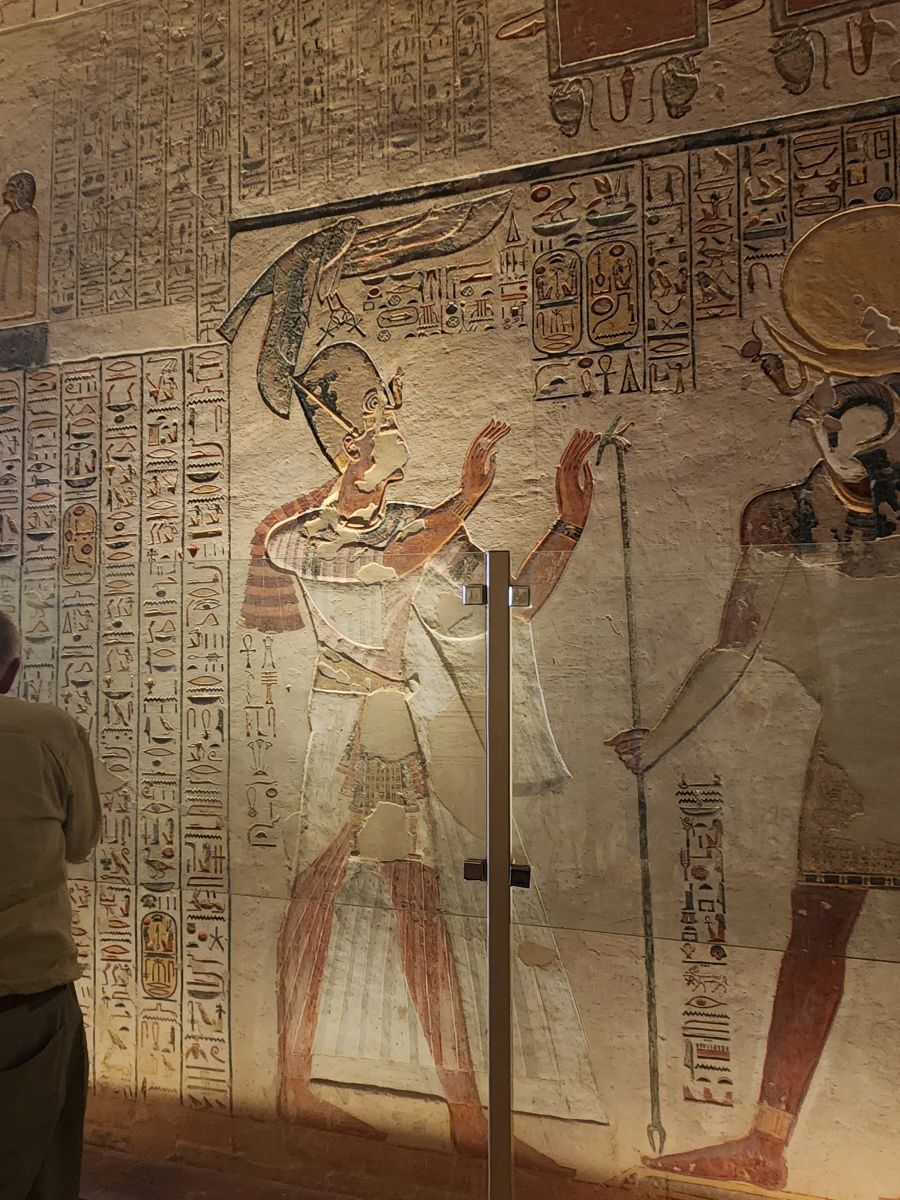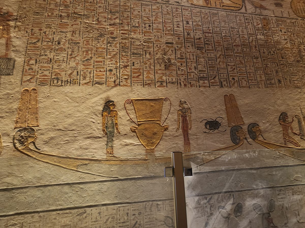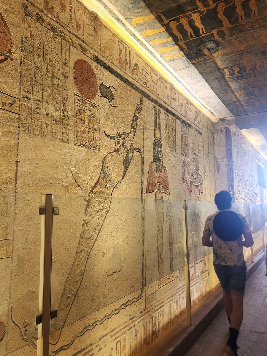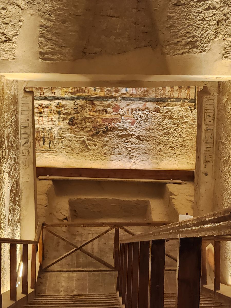 His sarcophagus is still down there, carved with 2 protective goddesses. As well as paintings of the King making an offering to God Nefertum and the King on his Barque. Plus the King with God Osiris and so much more. It is beautiful.