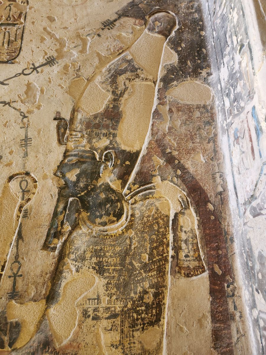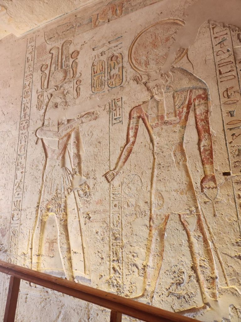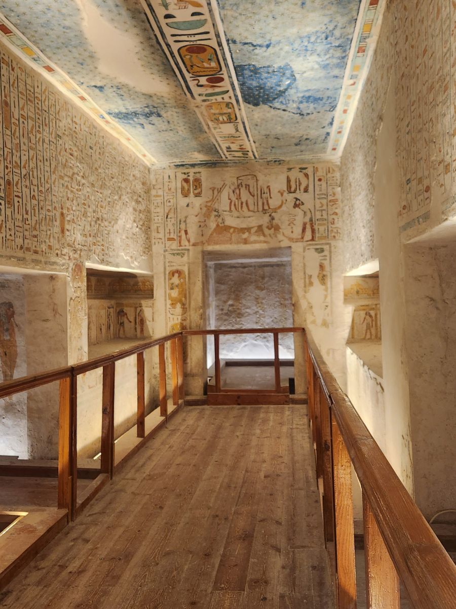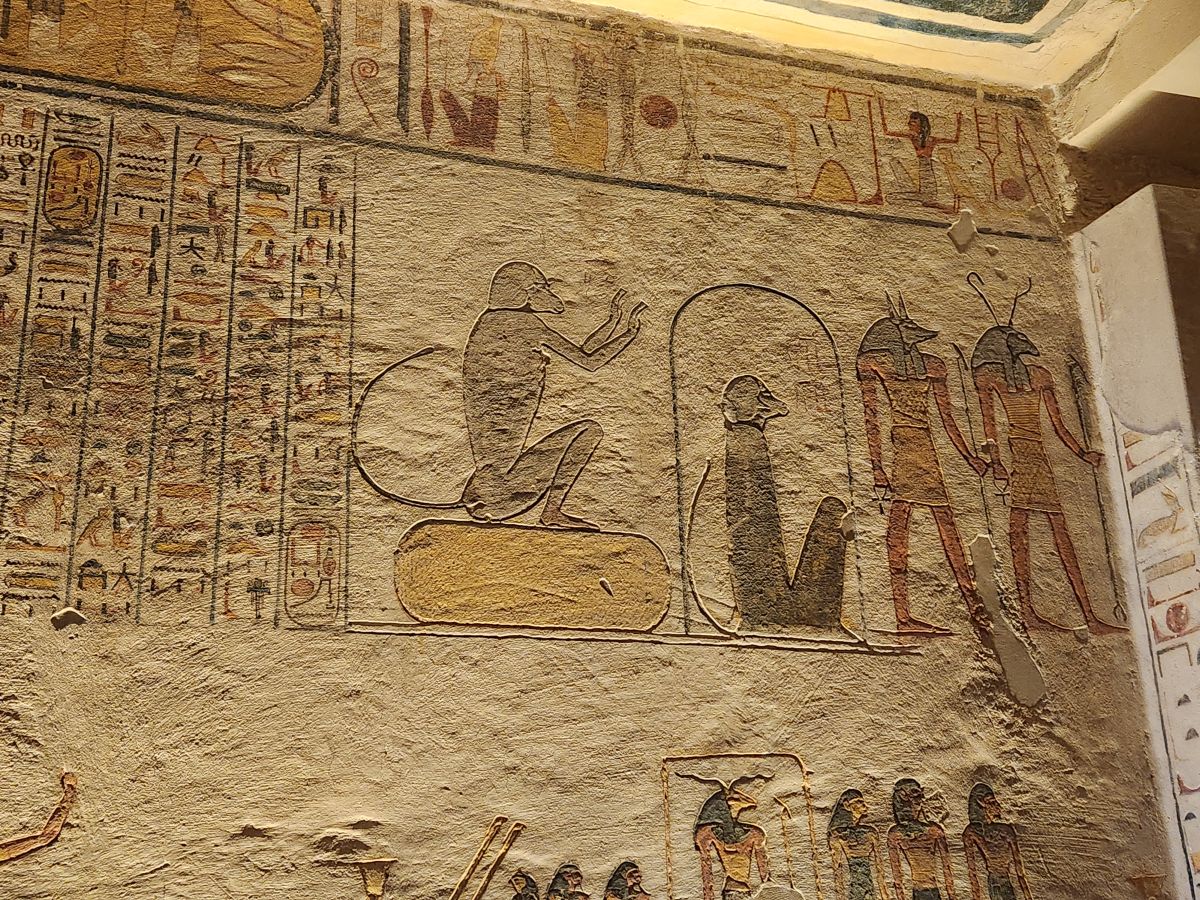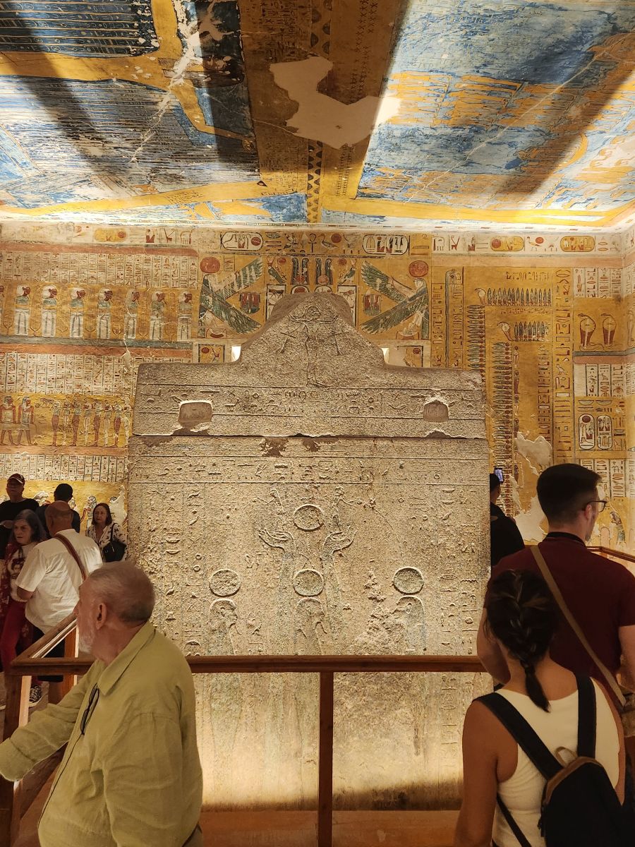 His sarcophagus is still down there, carved with 2 protective goddesses. As well as paintings of the King making an offering to God Nefertum and the King on his Barque. Plus the King with God Osiris and so much more. It is beautiful.