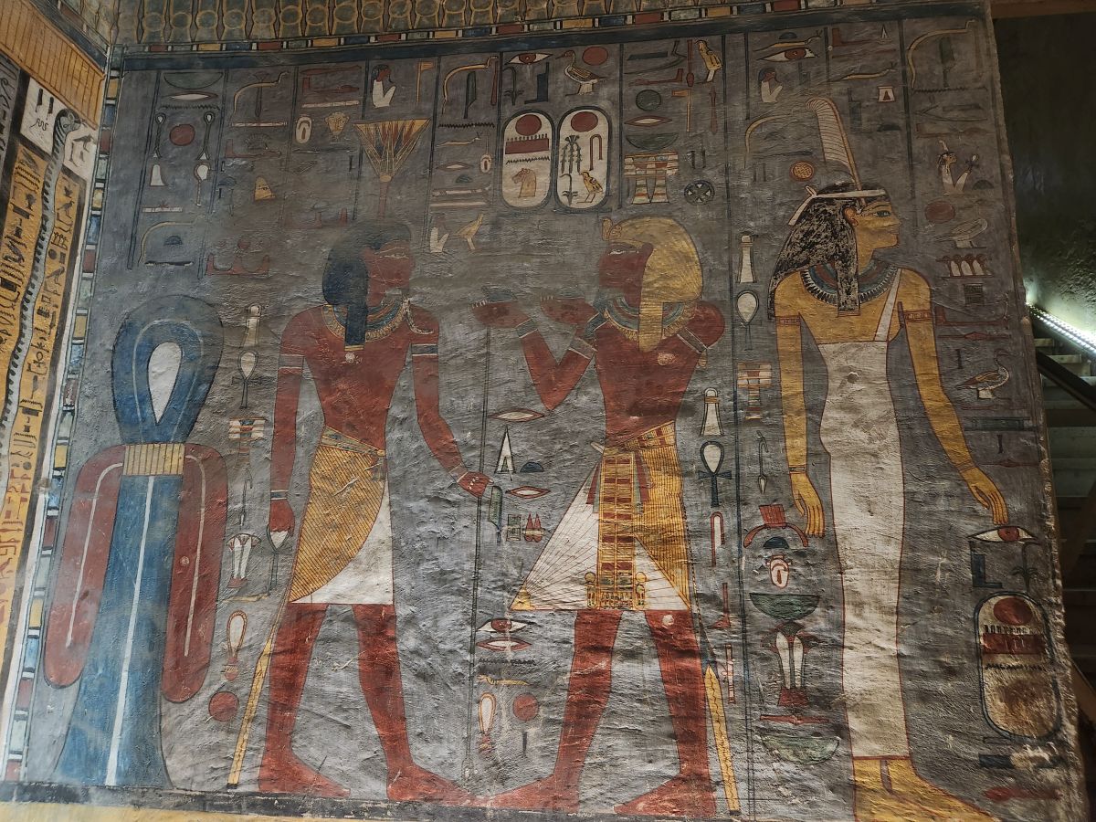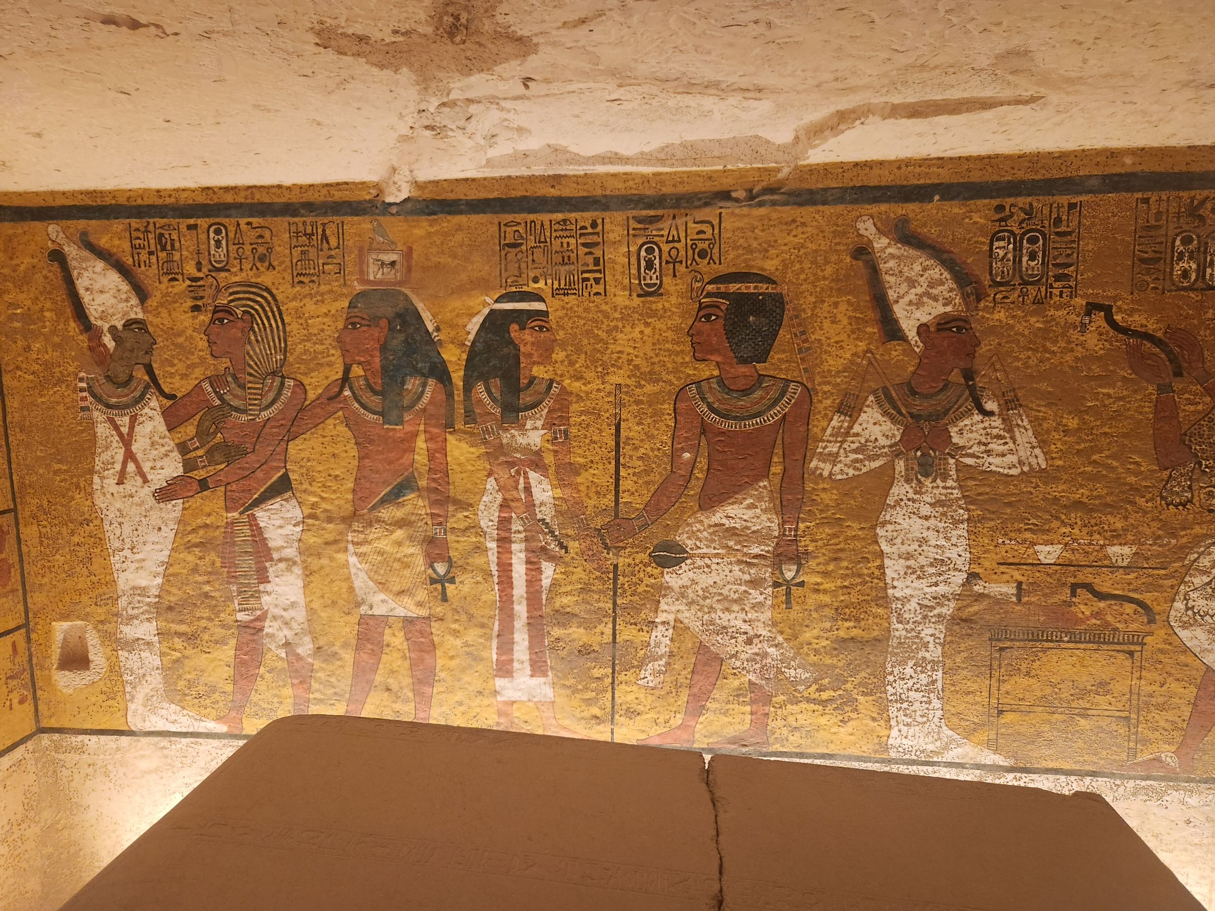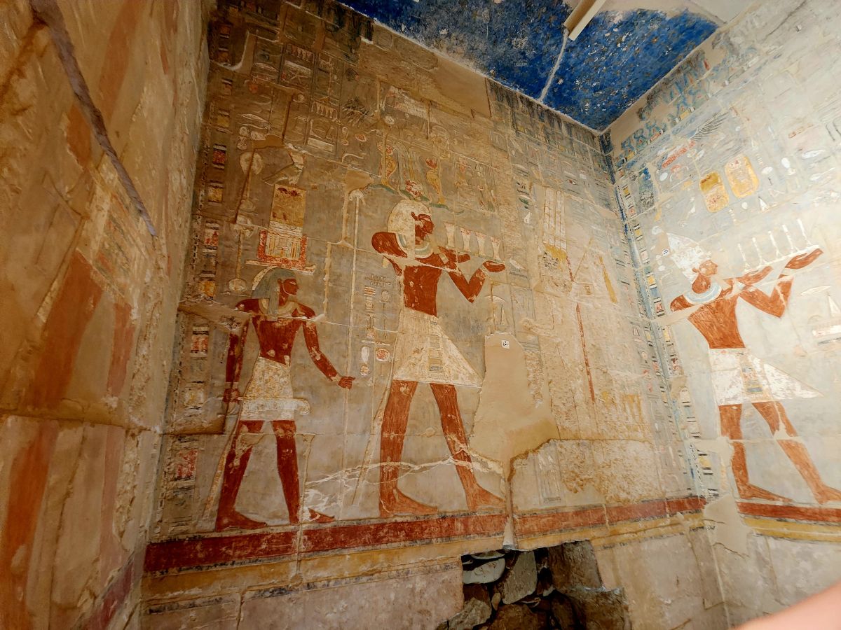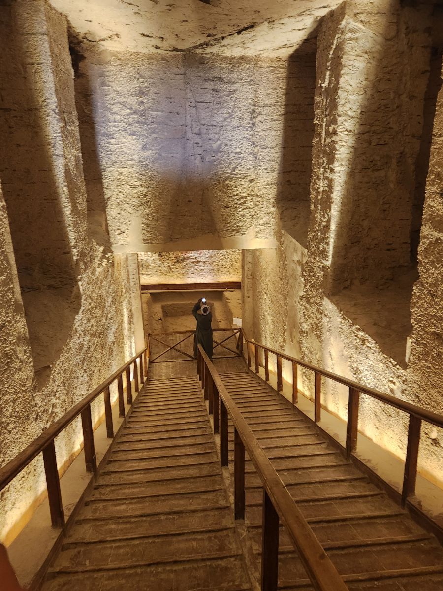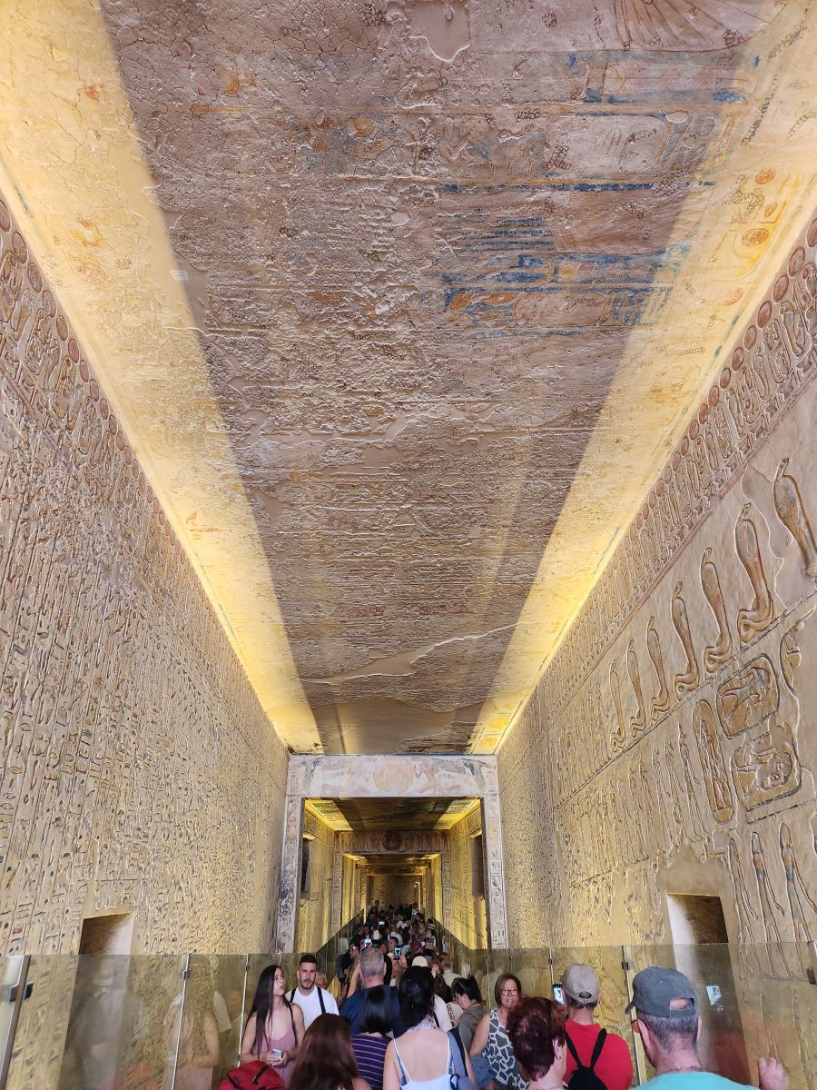His sarcophagus is still down there, carved with 2 protective goddesses. As well as paintings of the King making an offering to God Nefertum and the King on his Barque. Plus the King with God Osiris and so much more. It is beautiful.