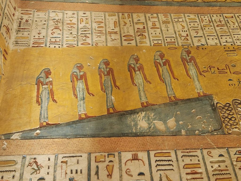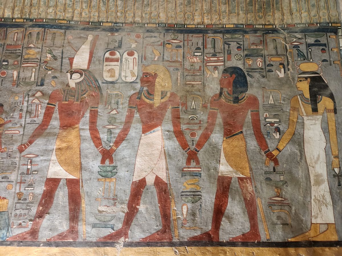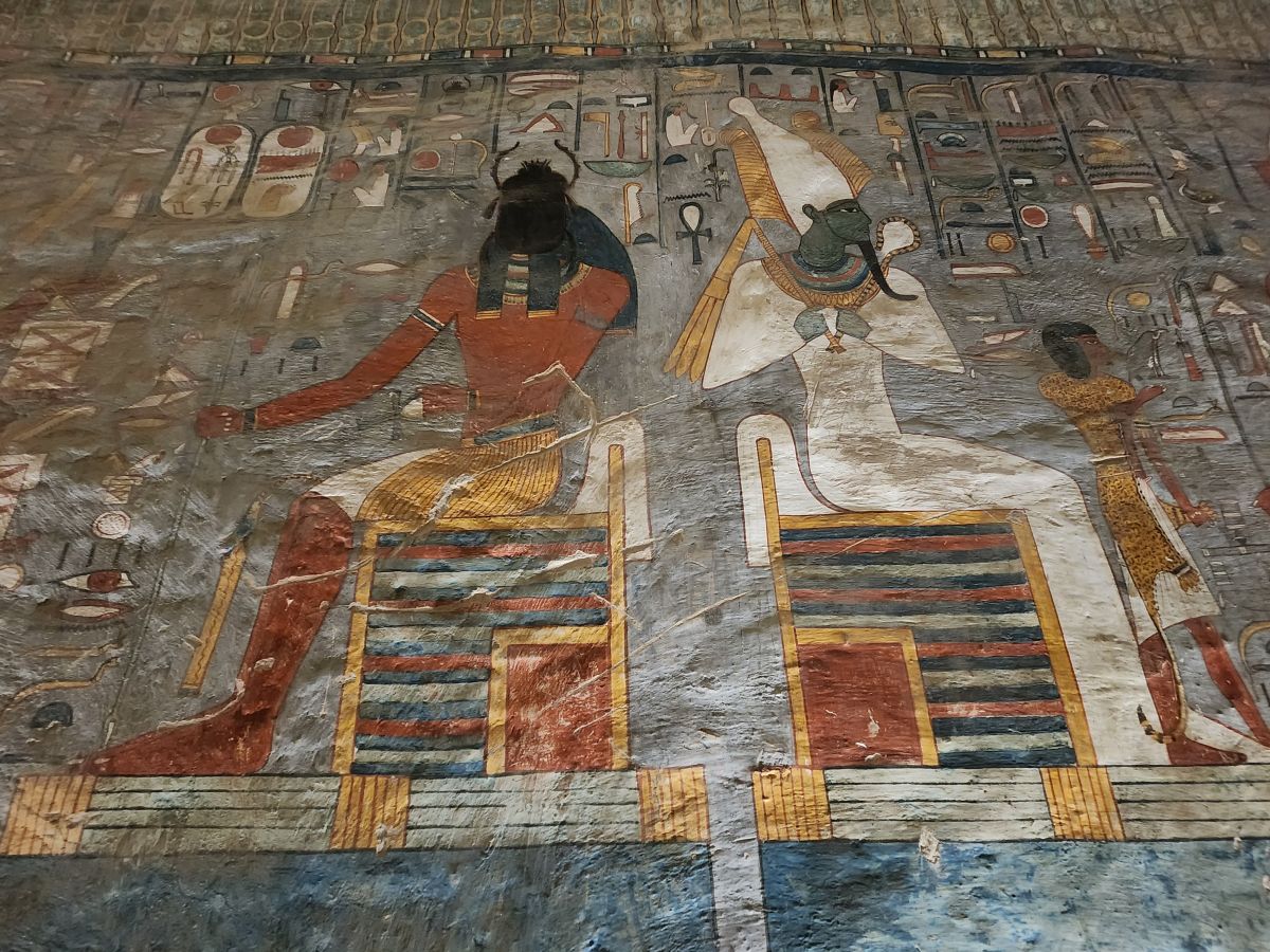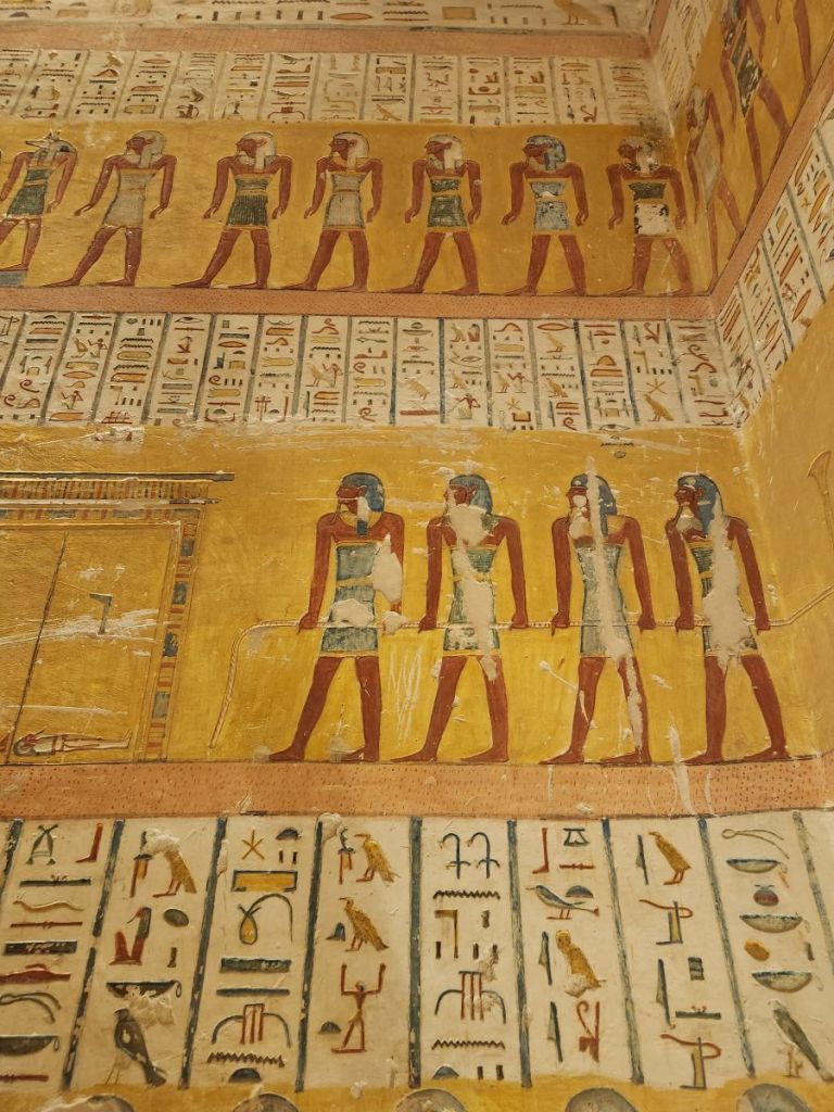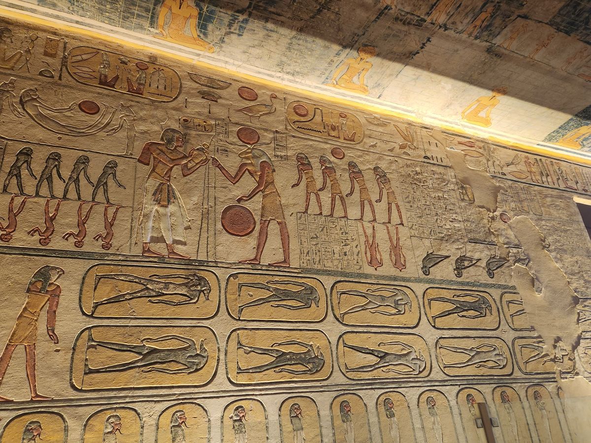 His sarcophagus is still down there, carved with 2 protective goddesses. As well as paintings of the King making an offering to God Nefertum and the King on his Barque. Plus the King with God Osiris and so much more. It is beautiful.