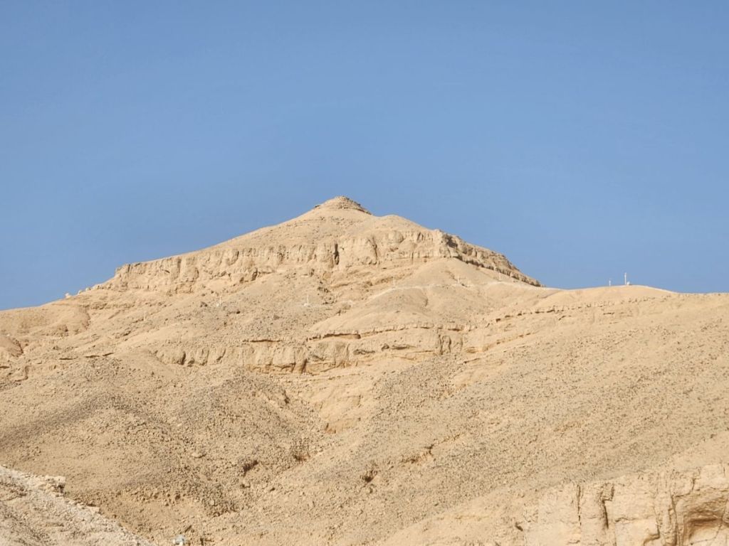 As we approach the Valley of the Kings, Amr gives us the some history and explains that the location was chosen for a number of reasons: The limestone was easy to cut into for tombs; the site is away from city; the location is high enough that floods didn’t affect the tombs; and the mountain above the valley is in shape of pyramid (I think that was the biggest selling point!). The reason why this complex, if you want to call it that, was developed is that the Kings realized that the Pyramids were not sufficient to protect their ancestors’ tombs, bodies and funerary objects. Tomb raiders consistently broke into the pyramids and stole everything they could. The Kings wanted to hide their tombs away from grave robbers, and when King Thutmosis chose this area for his tomb, others began to follow.