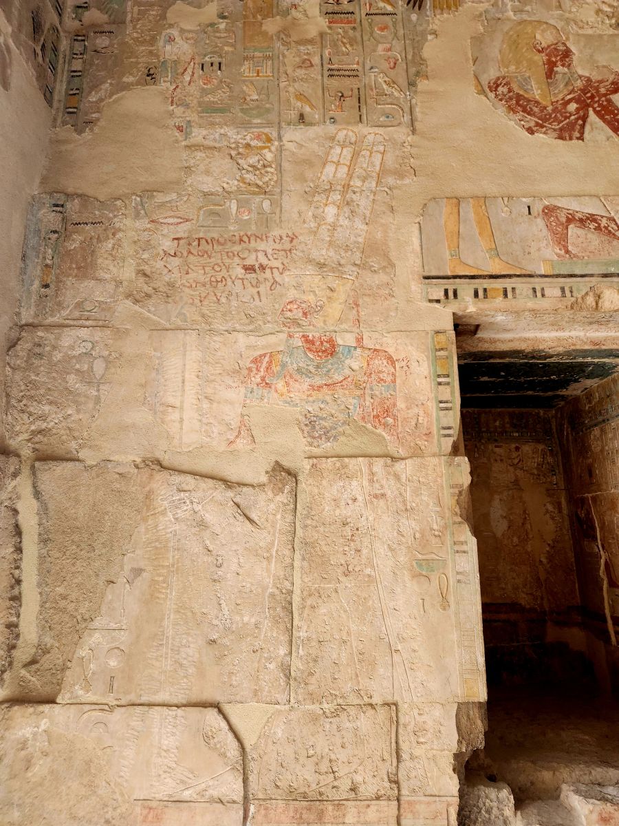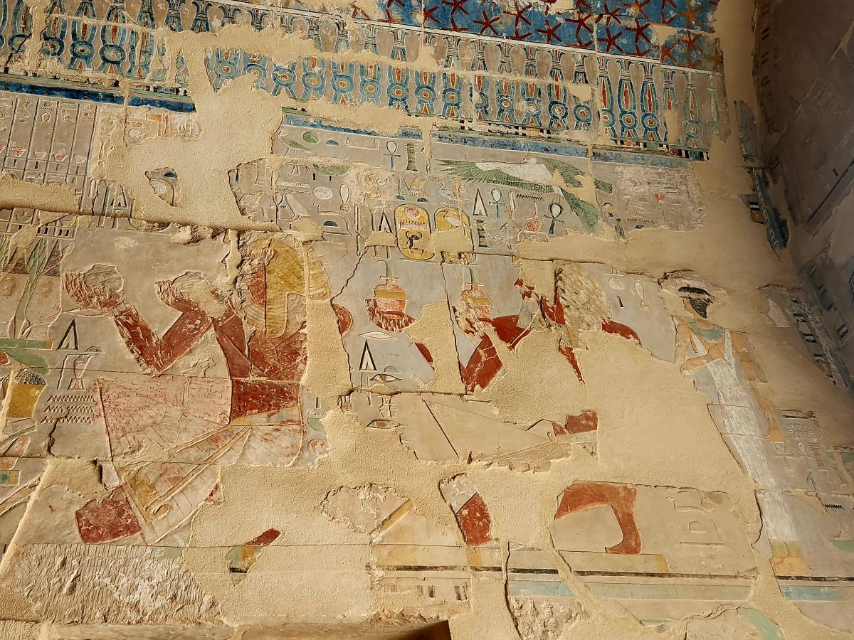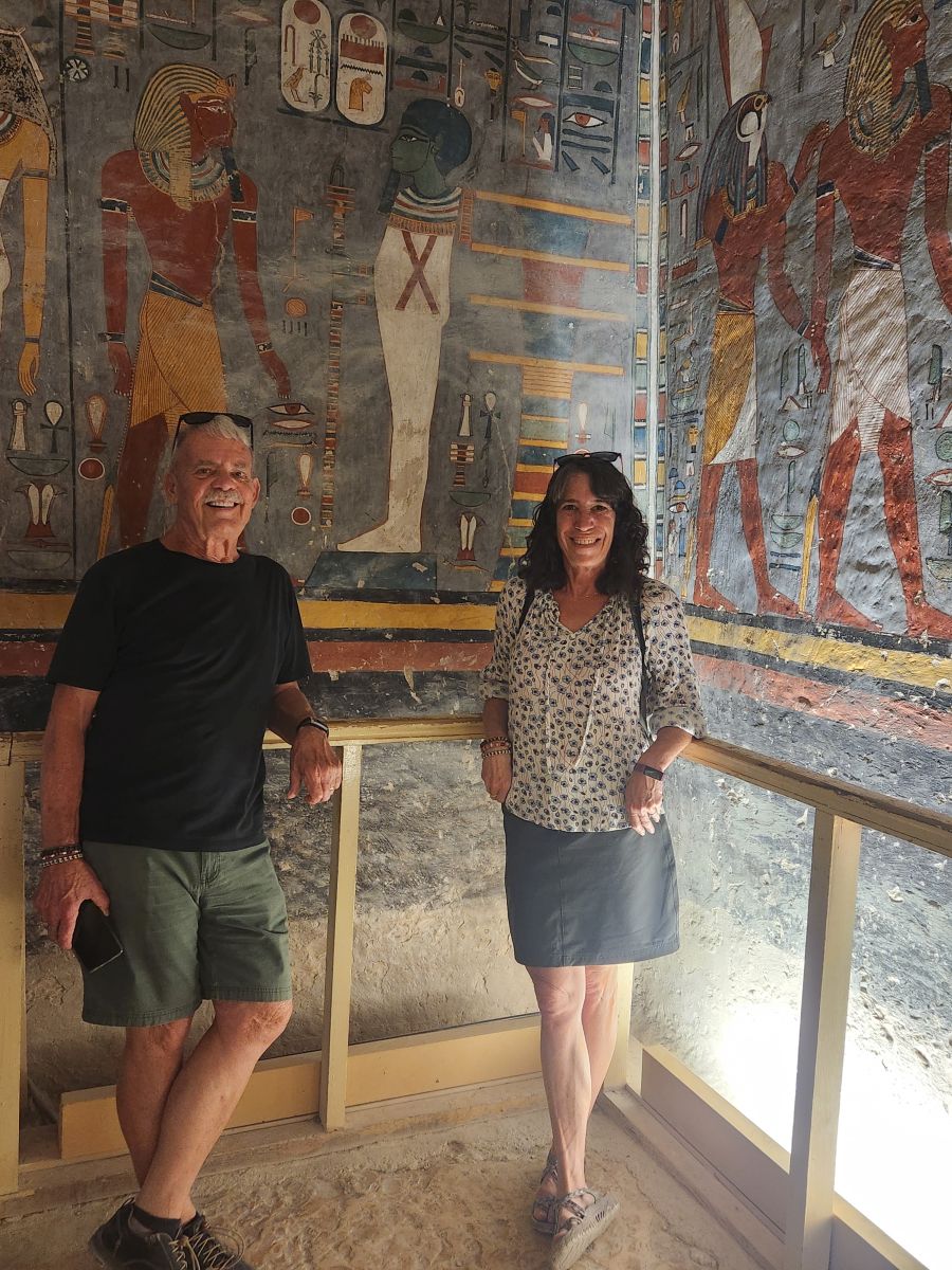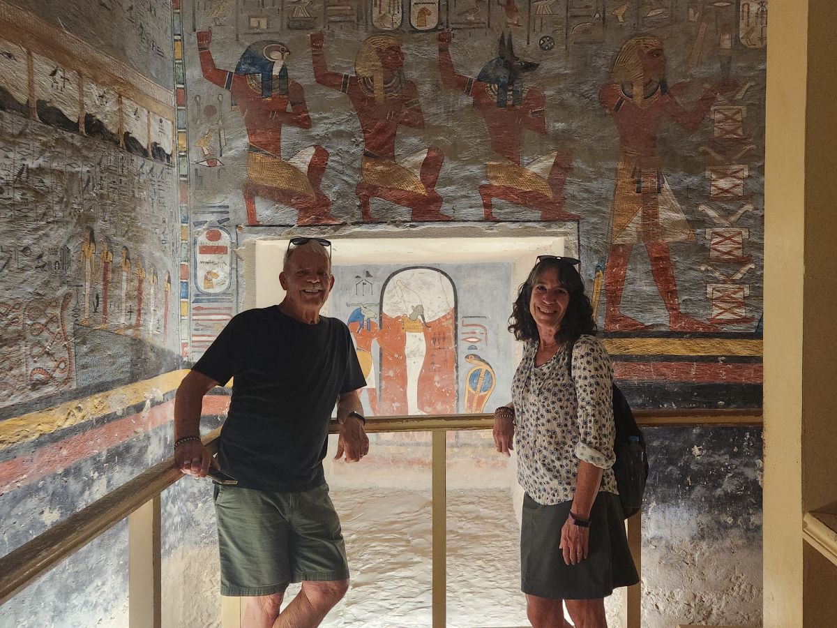 Amr is correct – these stairs are steep! And we are way down deep in the ground but with hardly anyone here. The tomb is indeed colorful with incredibly vibrant paintings. The tomb is actually unfinished because the king died after only 2 years of rule. But boy, what they did during those 2 years!