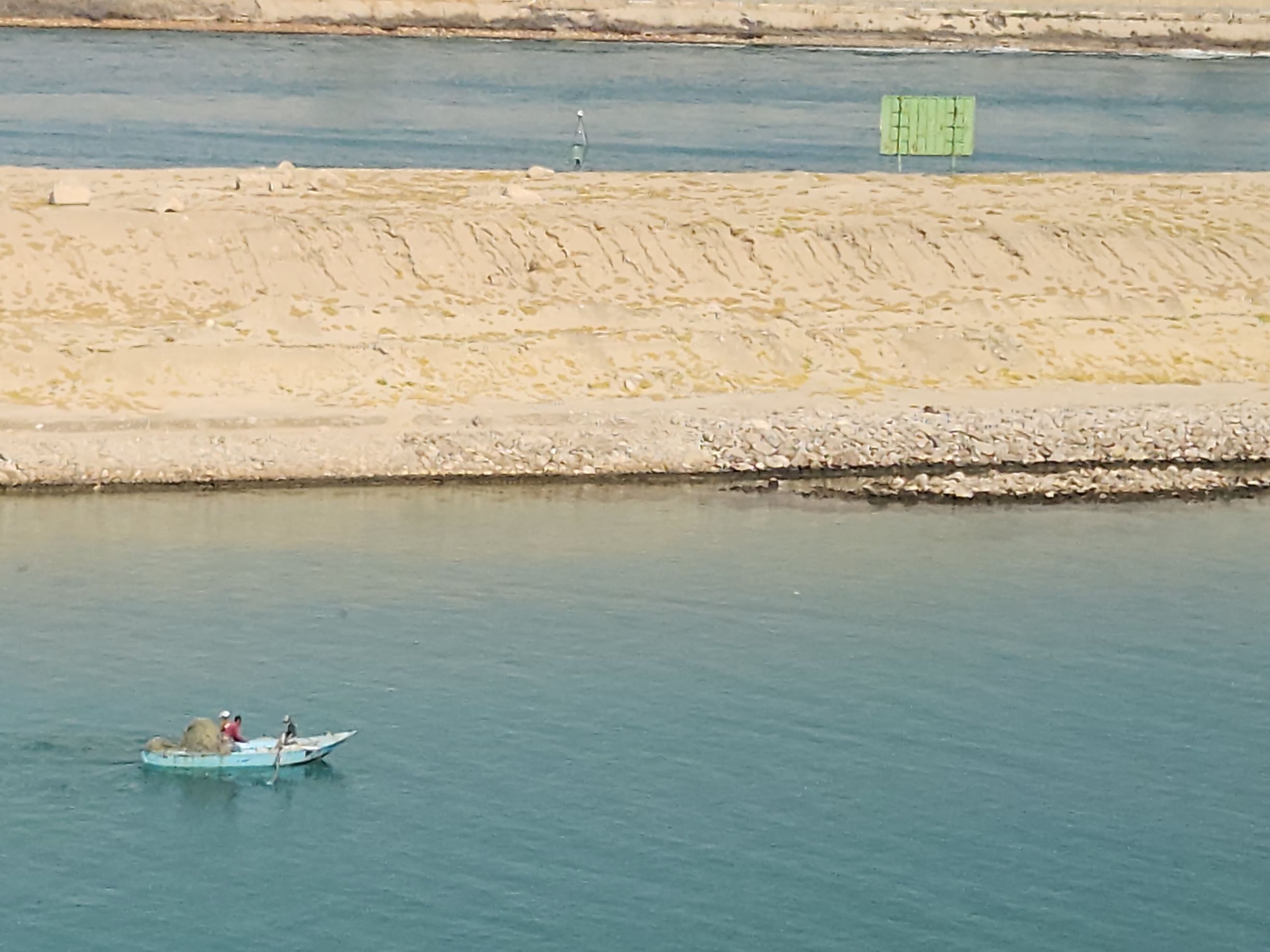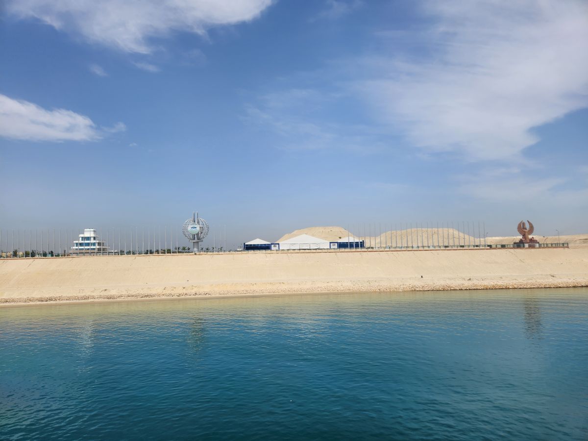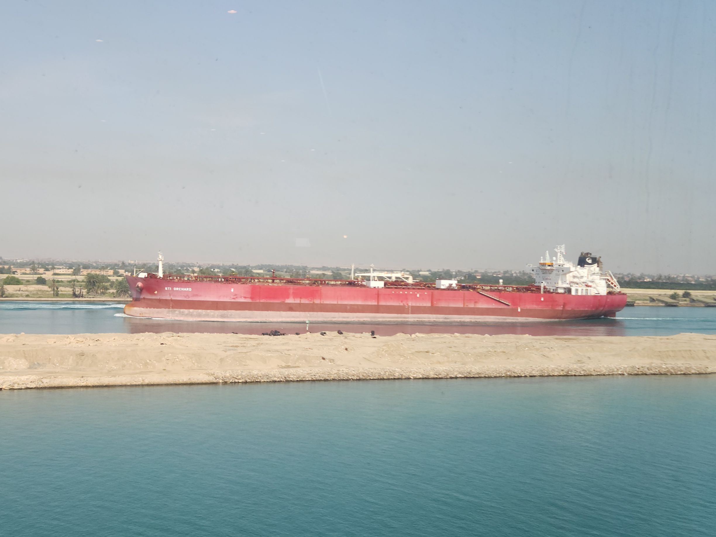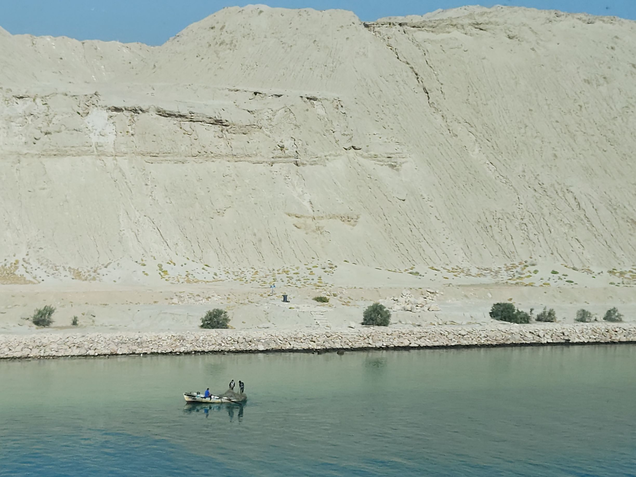 Well, bummer! Whatever time we started through the canal, it was early! Captain said picking up the pilot around 4:30am, but we still figured we’d have time to be up and see the Evergiven memorial. Um. No! God knows what time we actually started the transit, but by the time we are up – and it is still early – we are almost to the damn lake! Sheesh. I never even considered getting up early – at least not that early! Oh well. It was just a thing I had about Evergiven.