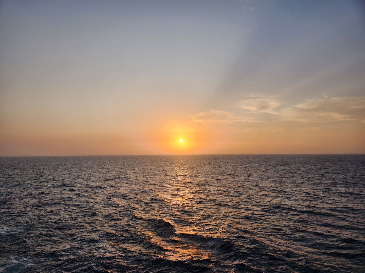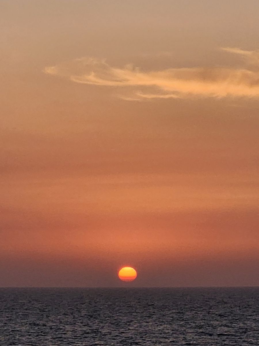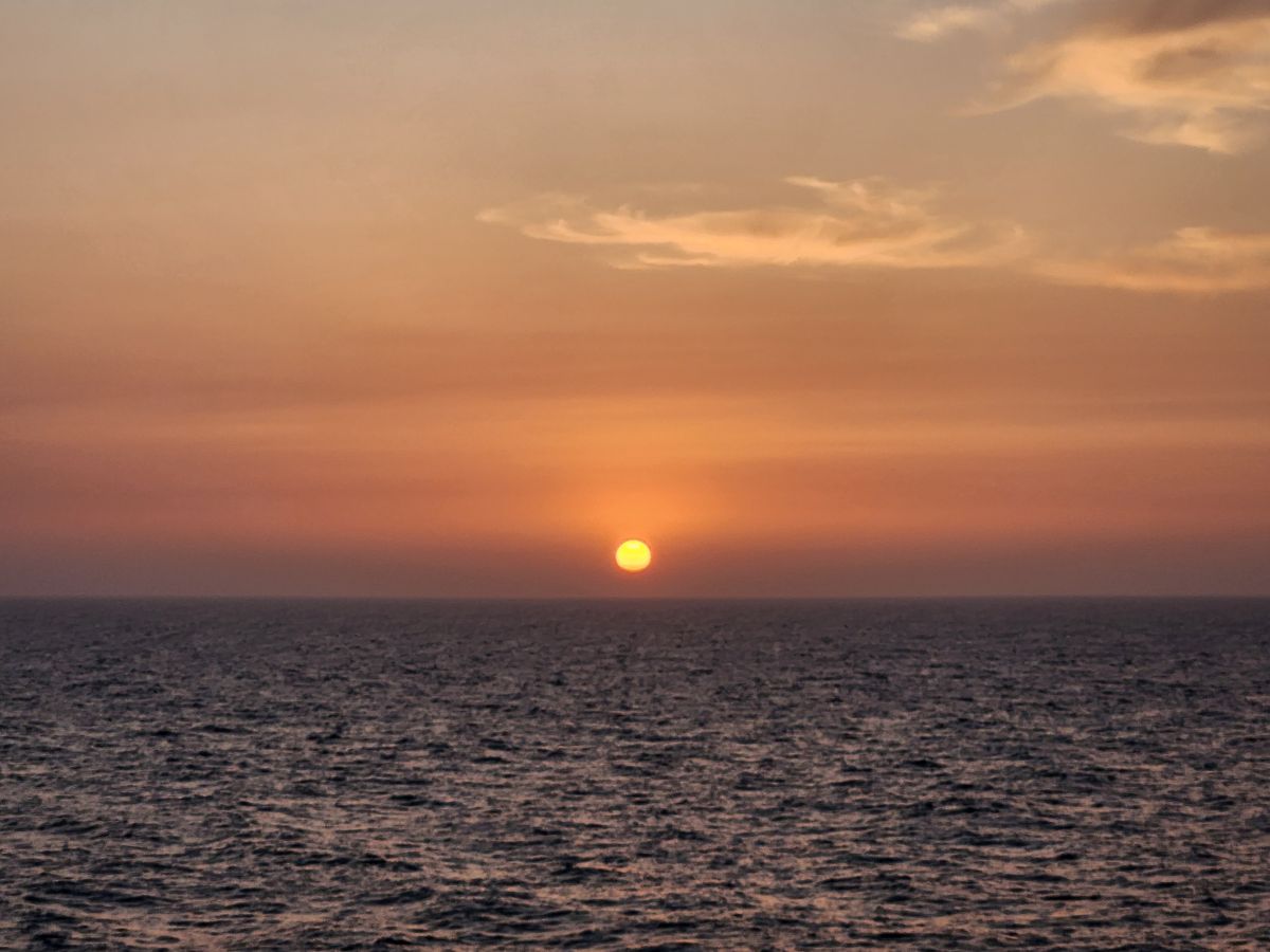 We have our normal afternoon activities, gym, drinks, a beautiful sunset from the balcony, then TV in the cabin and an early bed time – our tour meets at 6:15am tomorrow – which means we’ll be there before 6!