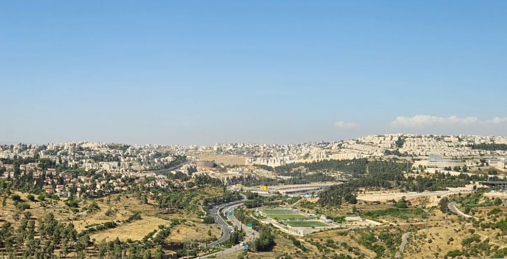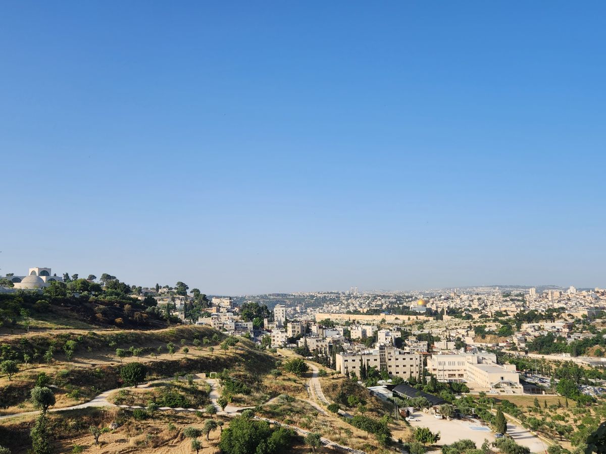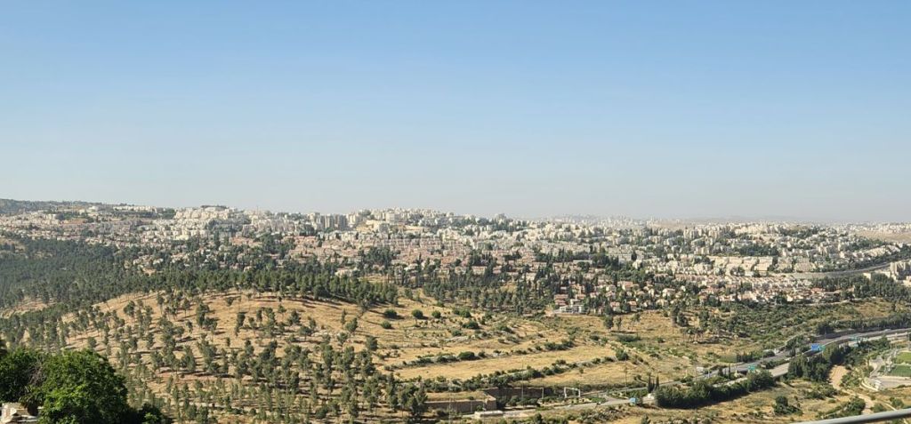 Finally safely ensconced on the bus, we start the drive back to the ship, passing a bizarrely constructed bridge – it looks like only one side has been completed, just strange – and onto the highway that gives us a really good long view of the sprawl of Jerusalem. It’s a big city!