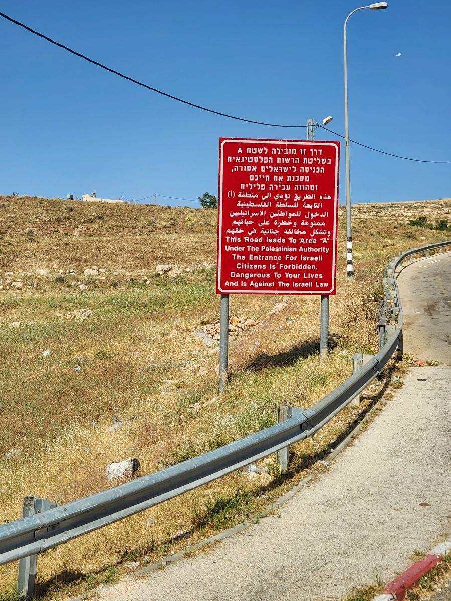 At any rate, we get through the checkpoint all right, heading into Palestine. As we enter, we see signs everywhere advising that Israeli citizens are forbidden to enter certain areas. This is serious stuff – but then again – we’ve seen that over the years from afar so there shouldn’t be any surprise, but it is still pretty weird to have it in your face like that. Due to the low pay here on the Palestinian side, and the benefits offered in Israel many Palestinians work in Israel and cross over every day. The pay is something like 3 or 4 times as much as over here.