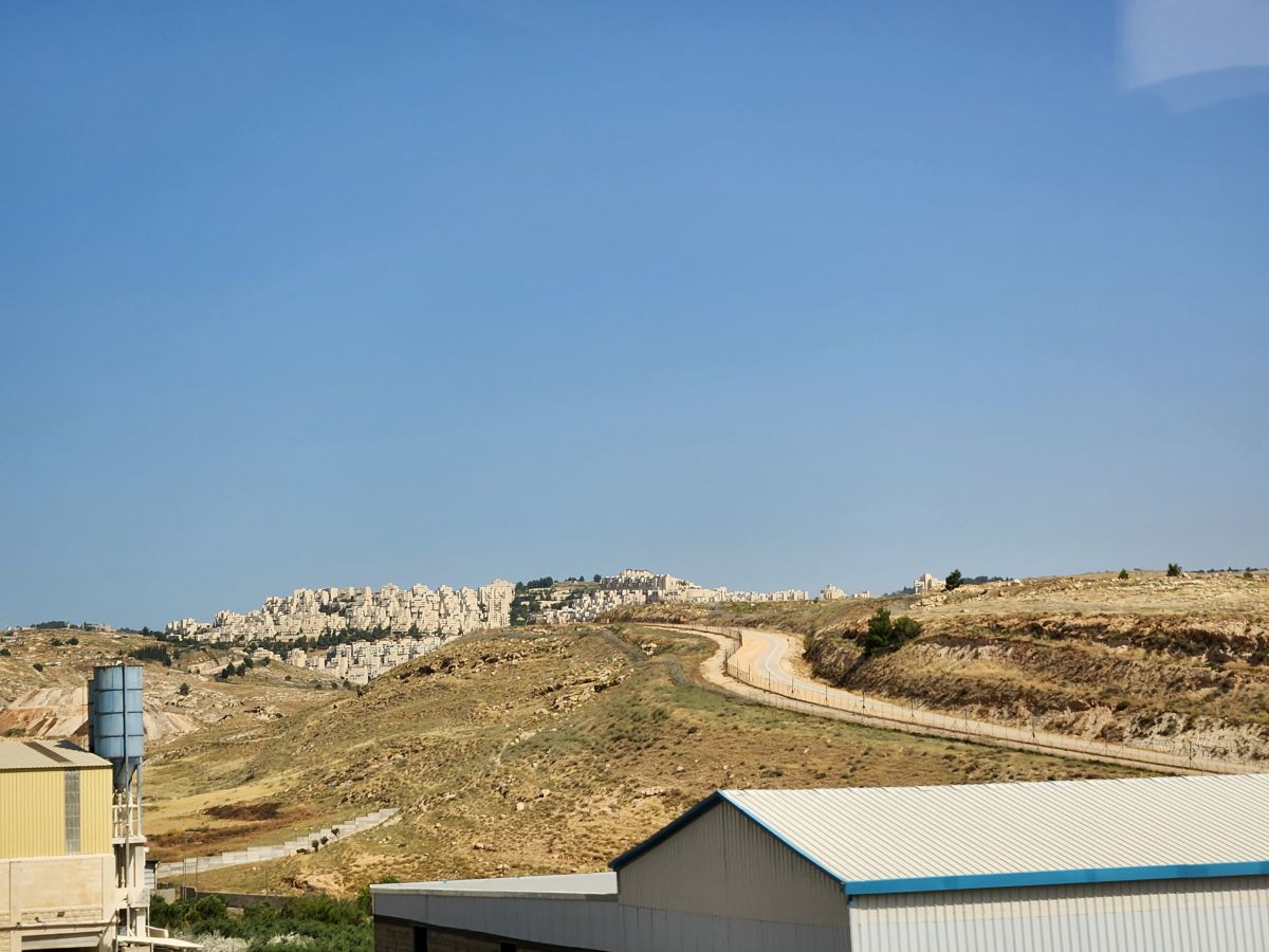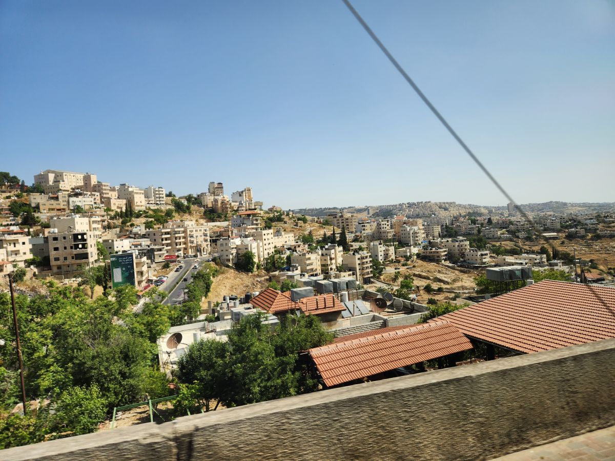 Driving in you can see the fence built to separate the countries, and the Israeli sprawl beyond what appears to be a no man’s zone stretching across the valley.