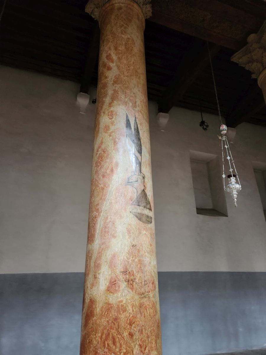 Okie dokie, so we’ll just head over to the Roman Catholic side then. There is a lovely courtyard with a statue of Hieronymus (reminding us of Bosch – the detective from the Michael Connelly series whose first name is Hieronymus, just like the painter who his mom loved – which is why he was named that!). Excitement abounds as Ed gets called into service as a stand in guide with the number paddle when Rafael goes to cajole these Guards into letting us in! The guards relent, Ed hands over his scepter and we enter into the cathedral which is beautiful, but so stark in comparison to all the other chapels we have visited today! And here again there is another ceremony going on. Rafael says we are blessed because of all the ceremonies in every chapel we visit.