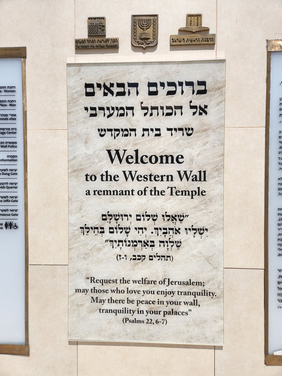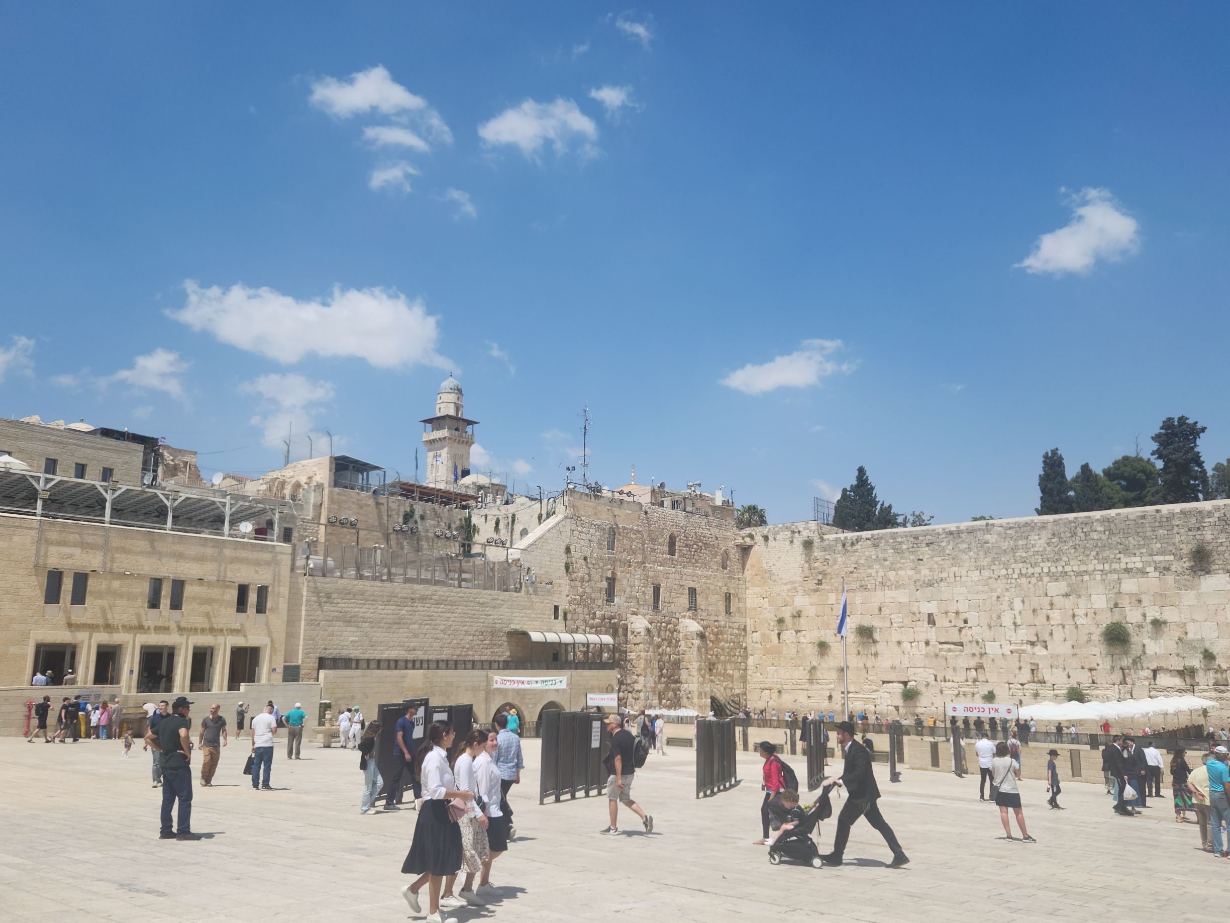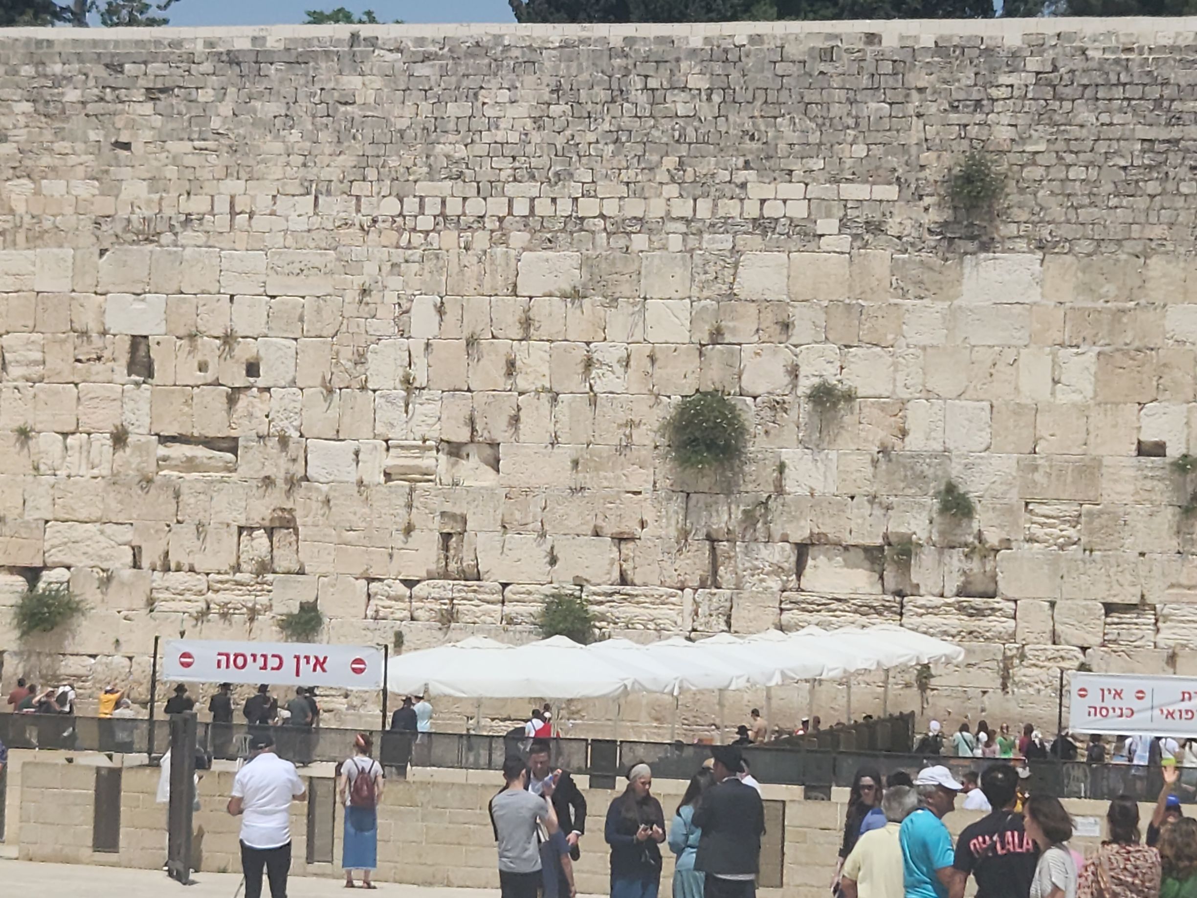 Lunch completed – we head for the Old City and the Western Wall (or Wailing Wall). The location of the beginning of the world and the first Temple (according to tradition), the wall was destroyed by various occupations and finally taken back into Israeli possession in 1967 after Israeli forces battled to liberate the Old City. It has always been a place of pilgrimage, and even more so since the liberation. Rafael tells us that the Muslim area of the city is right behind the wall and that occasionally stones will come raining down on this side of the wall, thrown from the Muslim side. Good thing to look out for, thanks! The Wall is split between men and women (as the temples are) so we dutifully separate and head to our respective areas. Strangely the women’s area was far more crowded than the men’s. The women’s area was smaller, but not by that much – it was just weird. And so many people were just there for selfies and pictures. I actually said my prayers and then walked backwards, always facing the wall, to leave. Taking a picture of myself there just wasn’t right – not with all the true believers trying to actually pray.