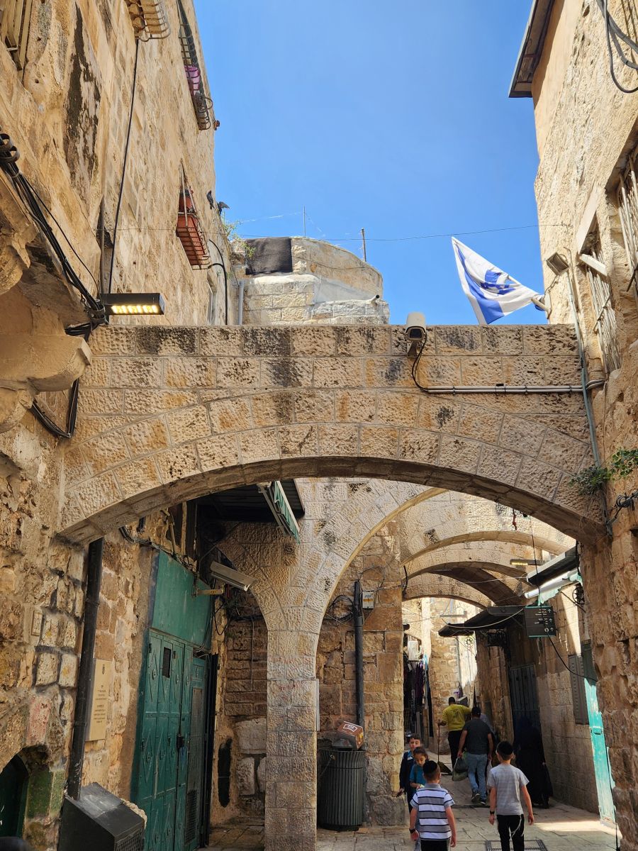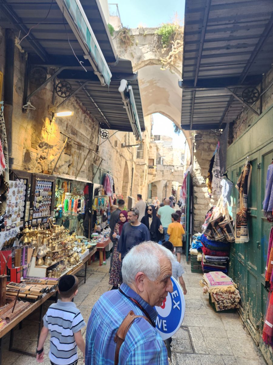 Once we had all regrouped, we started walking into the little crowded lanes of the Old City, finally reaching Via Dolorosa to walk the Stations of the Cross. We start at Station III (for some reason, and Rafael told us “they” might make us start there – who “they” are, we’ll never know) and continued through the increasingly crowded streets to all the rest of the stations. And no, I’m not going to do the whole explanation of each station – if you know them, you know them. If you don’t? I’m not going to be helpful here, sorry!