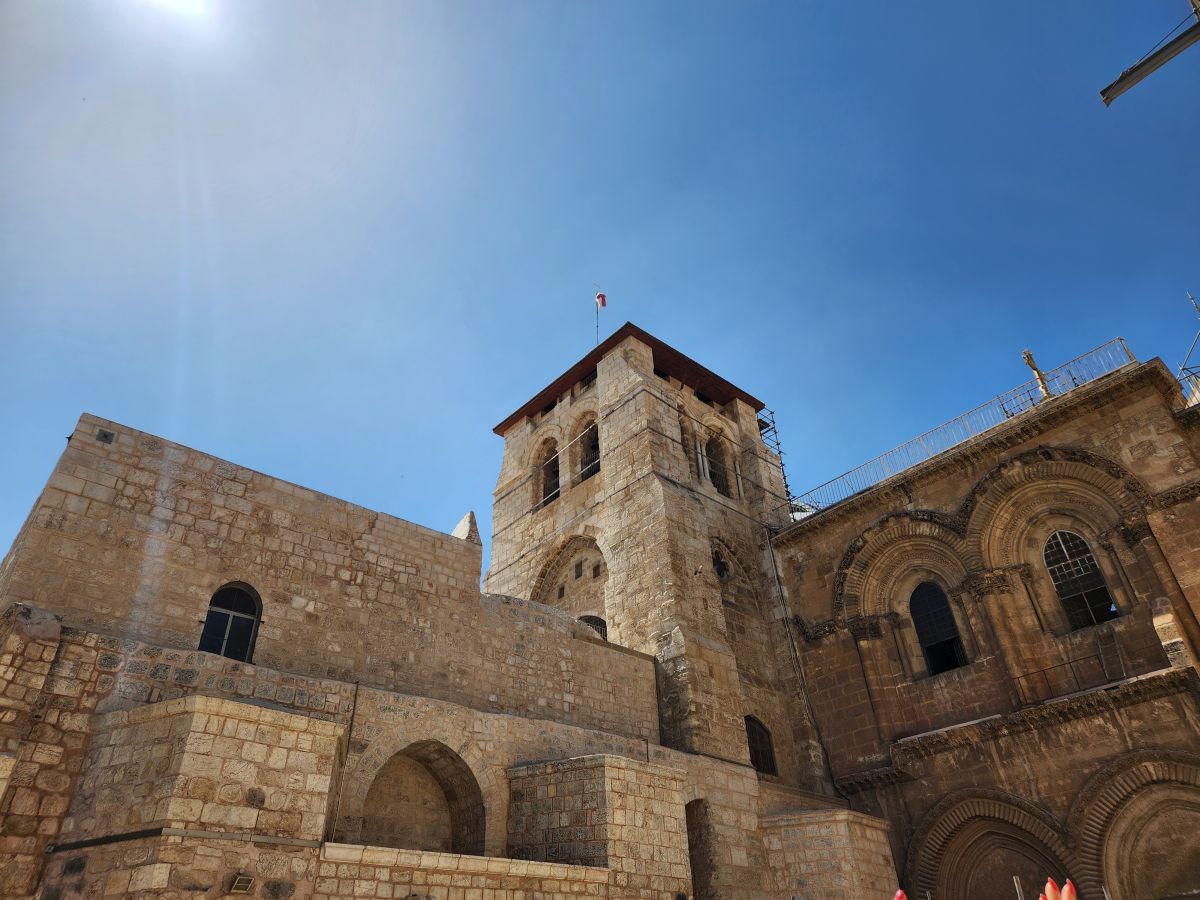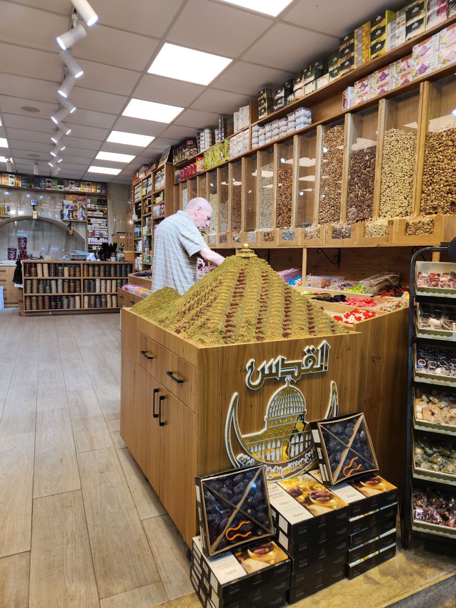 We pass some great architecture on our way to the Church of the Holy Sepulchre – along with a great spice pyramid display!