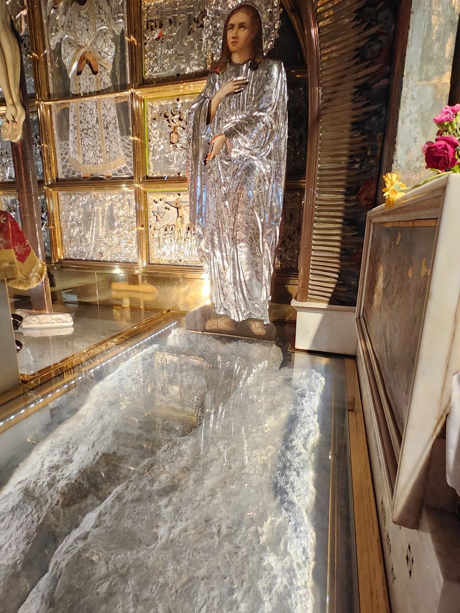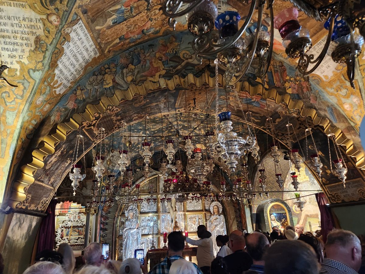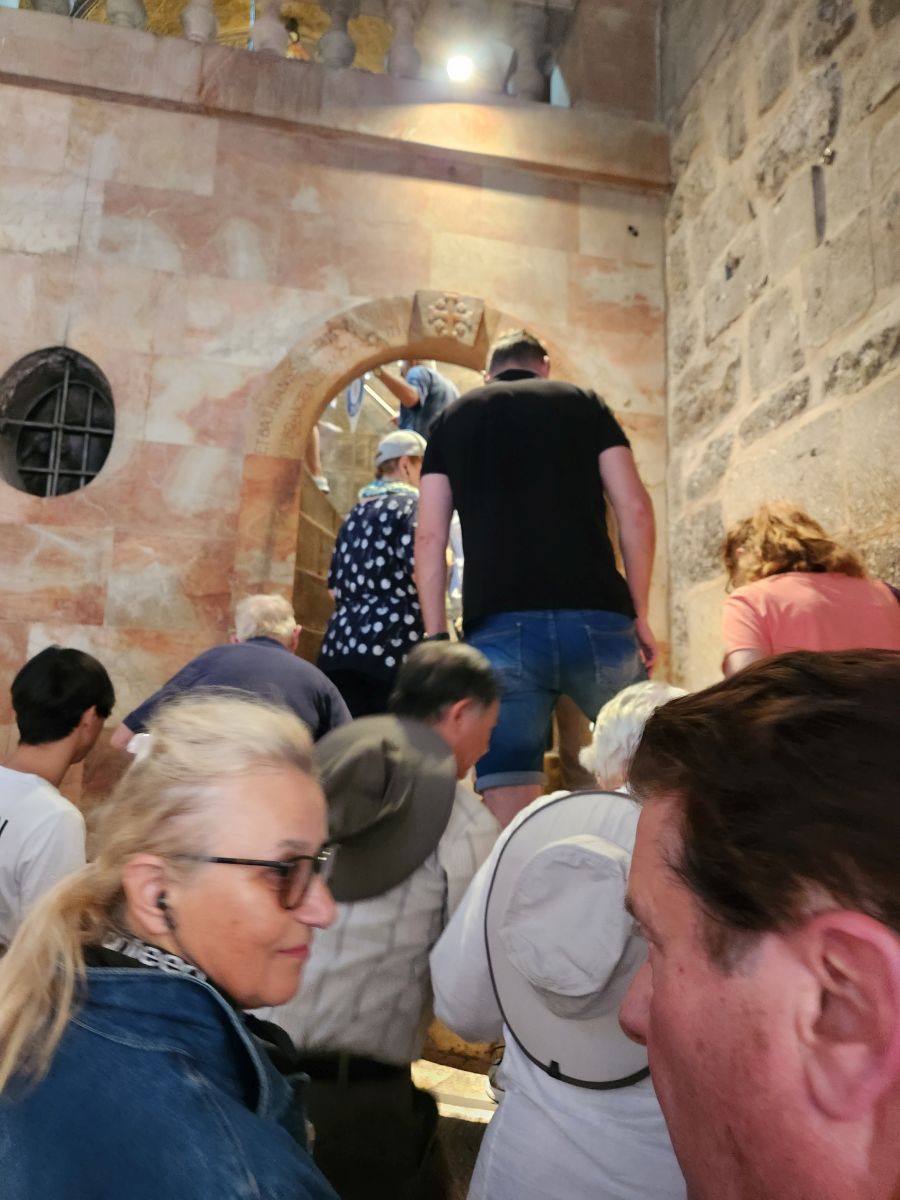 And of course, the tomb where Jesus was placed only to be missing when Mary came to see him the next day! It is empty, of course, but you can still go inside. If you dare. We say that because the line is forever long – easily 500 people long. And they only allow 4 people in at a time. Oh yeah. You’d be there until well past the time the ship sails! Needless to say, we are not allowed to even contemplate going in – not that we’d want to. We already figured we’d tell Rafael we’d meet him at the Gate if he said the group was going in! Fortunately we didn’t have to make that decision.