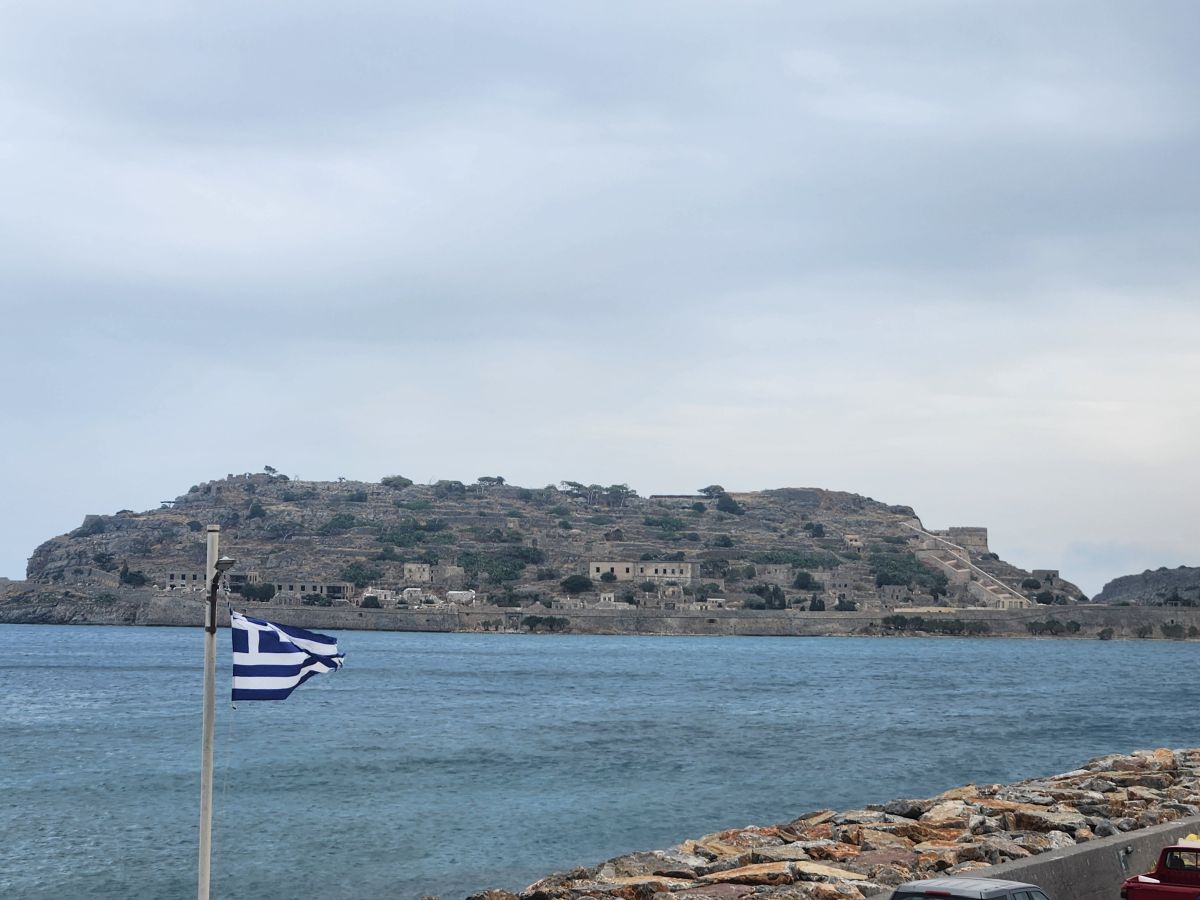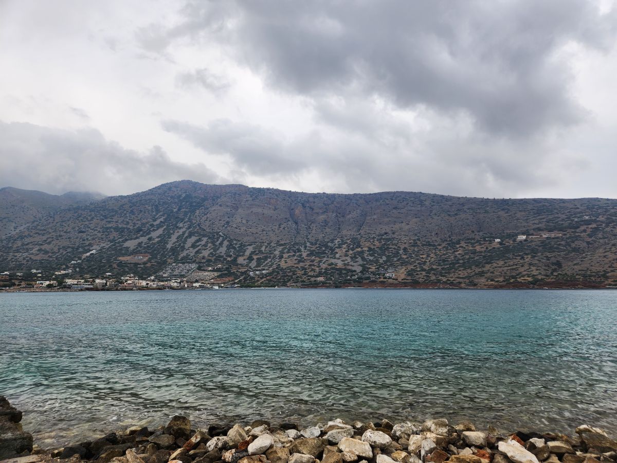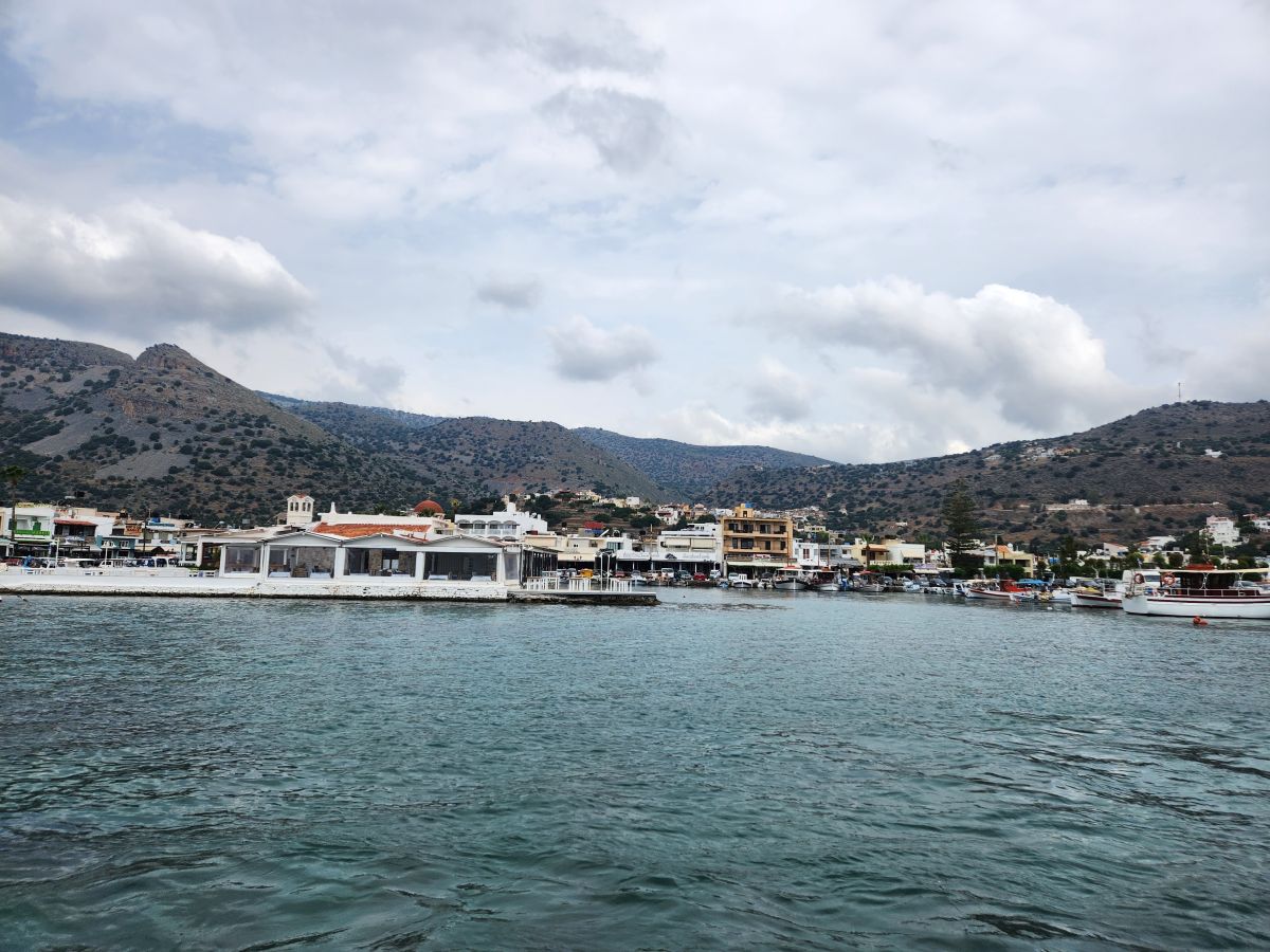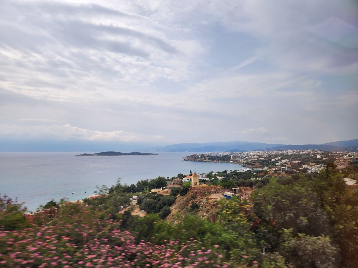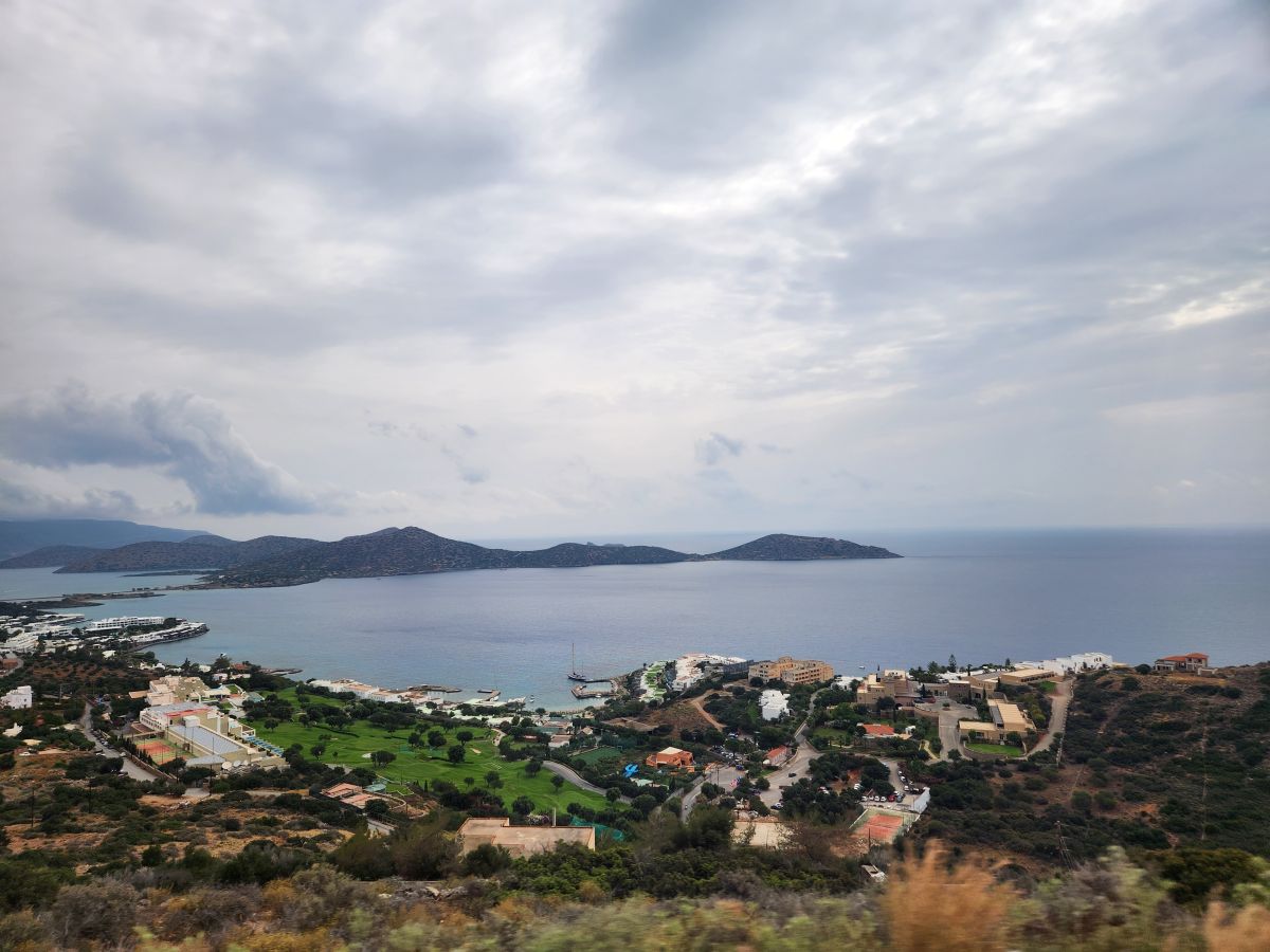 The scenery is gorgeous, and while we never stop for photos, we do get some good shots from the bus of long views overlooking Agios Nikolaos and then the causeway that connects the mainland to Elounda Island.