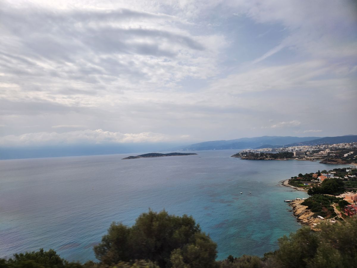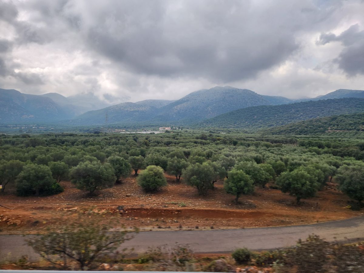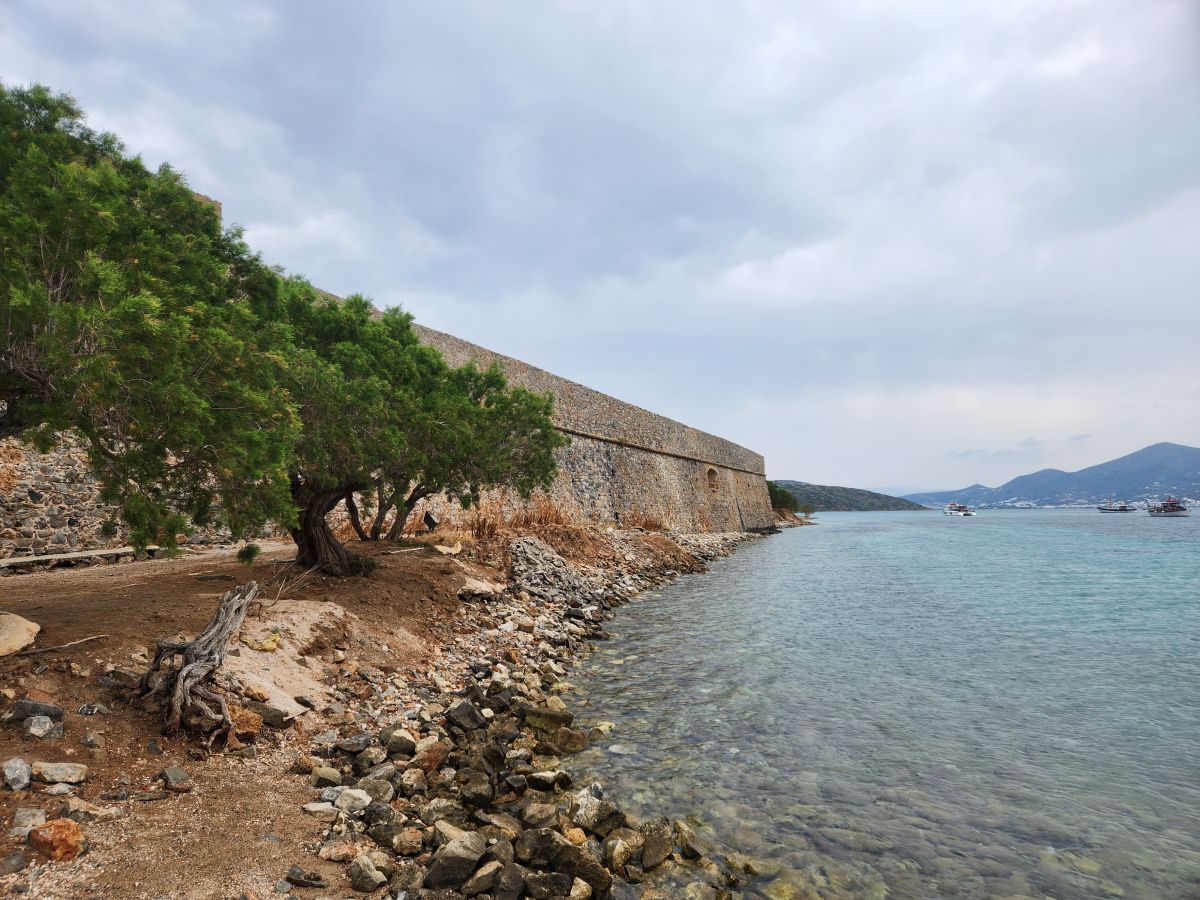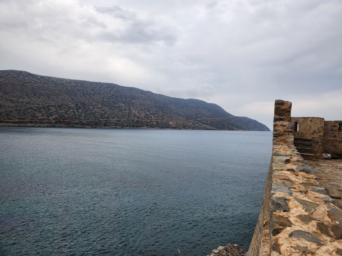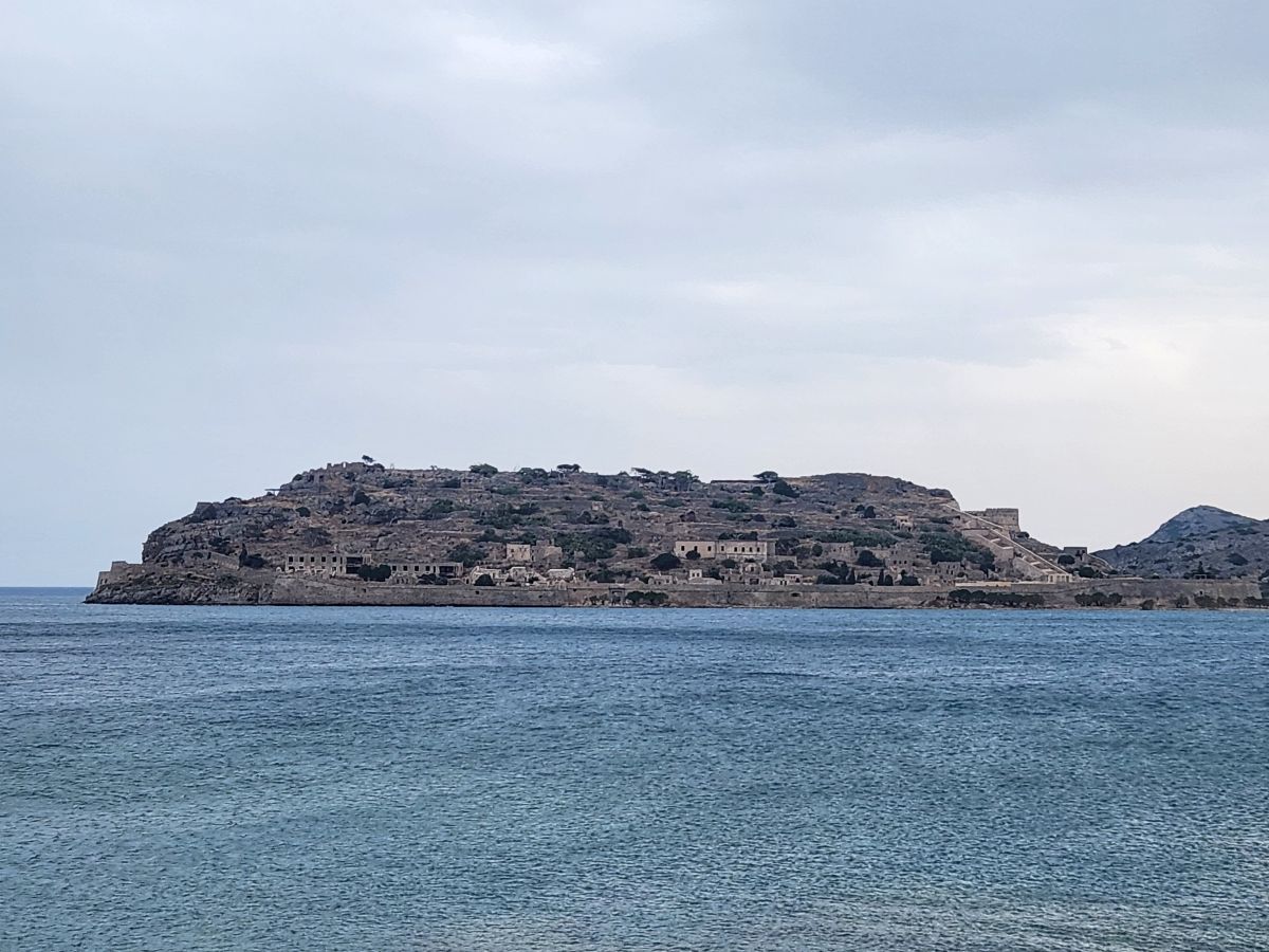 The scenery is gorgeous, and while we never stop for photos, we do get some good shots from the bus of long views overlooking Agios Nikolaos and then the causeway that connects the mainland to Elounda Island.