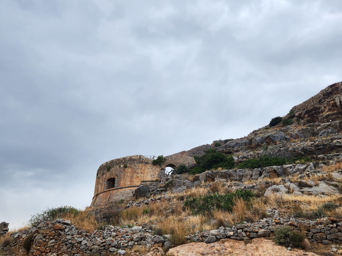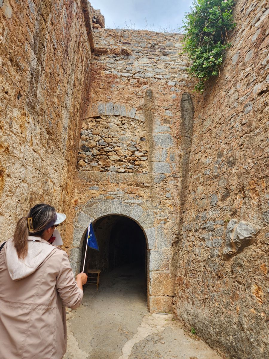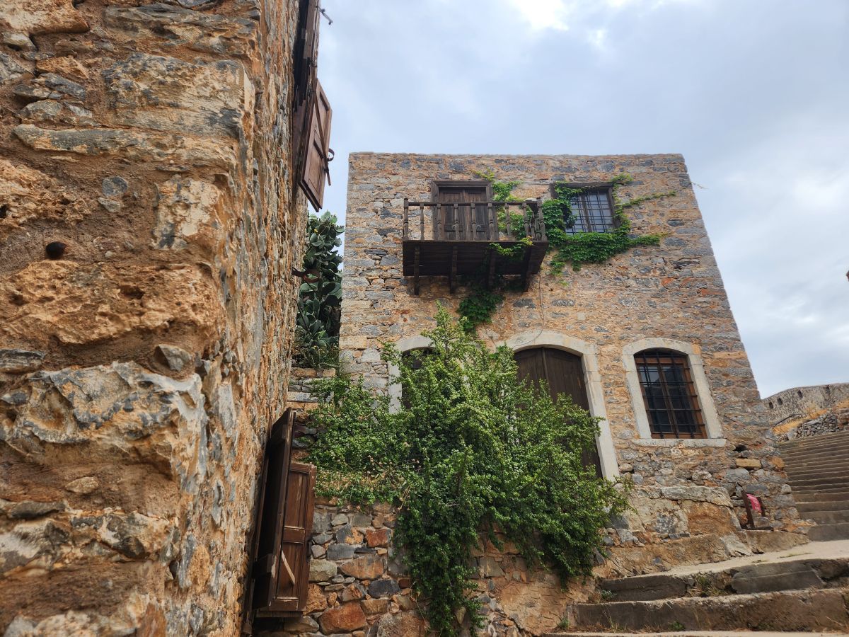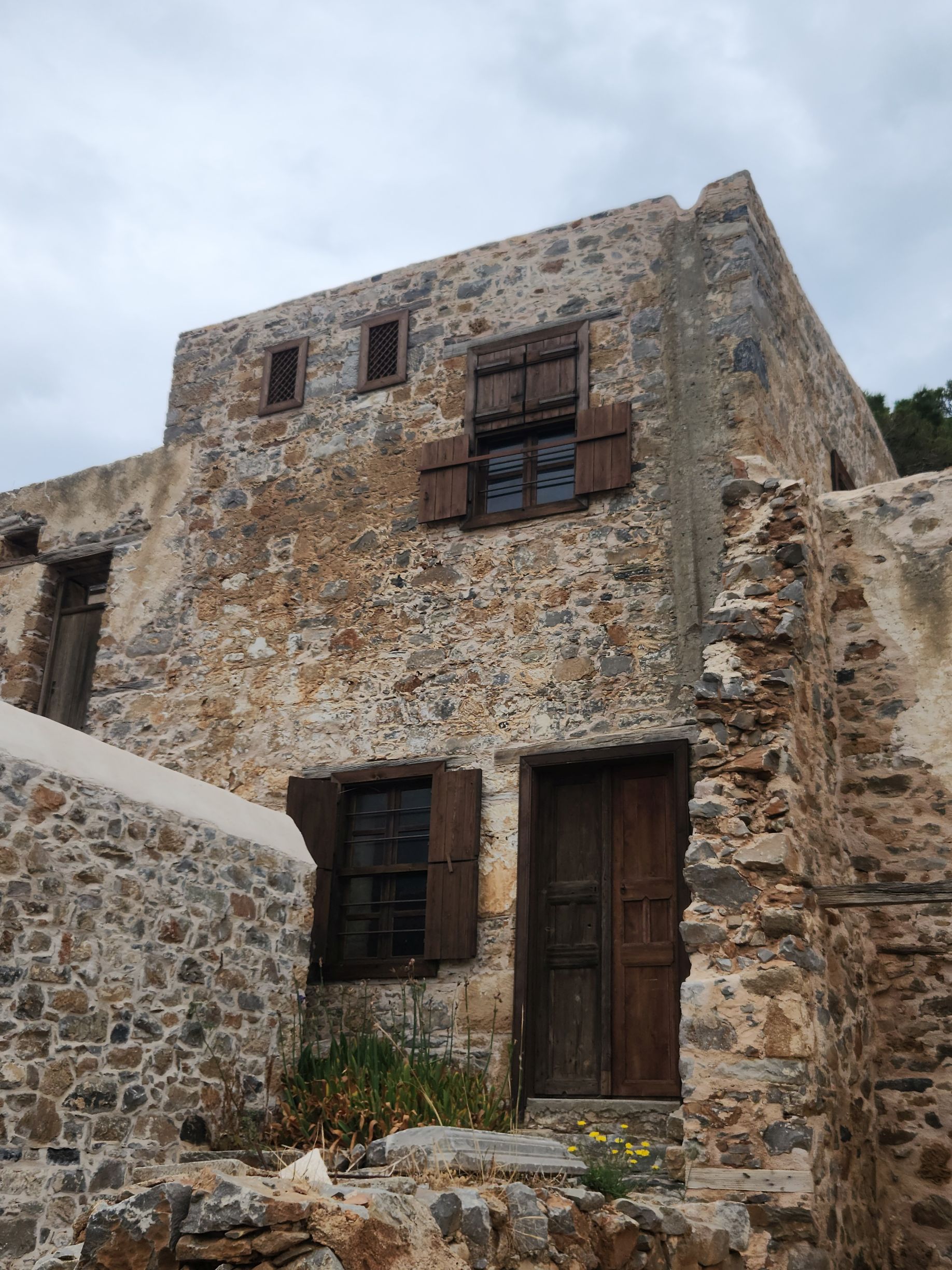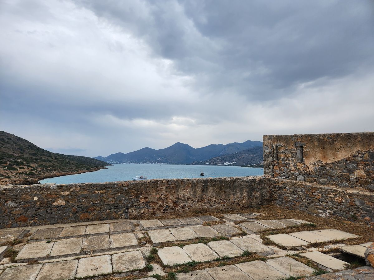 Arriving at Elounda harbor, we board the wooden sailing boat Katerina – my boat! – which ferries us 20 minutes over the protected bay to Spinalonga itself. The island is teeny – with the huge fortress on the upper levels guarding the island. We begin our tour walking through a tunnel cut from the mountain rock, then begin our circumnavigation of what is essential the ruins and recreation of the Leper colony that was here for years until being disbanded in 1957.