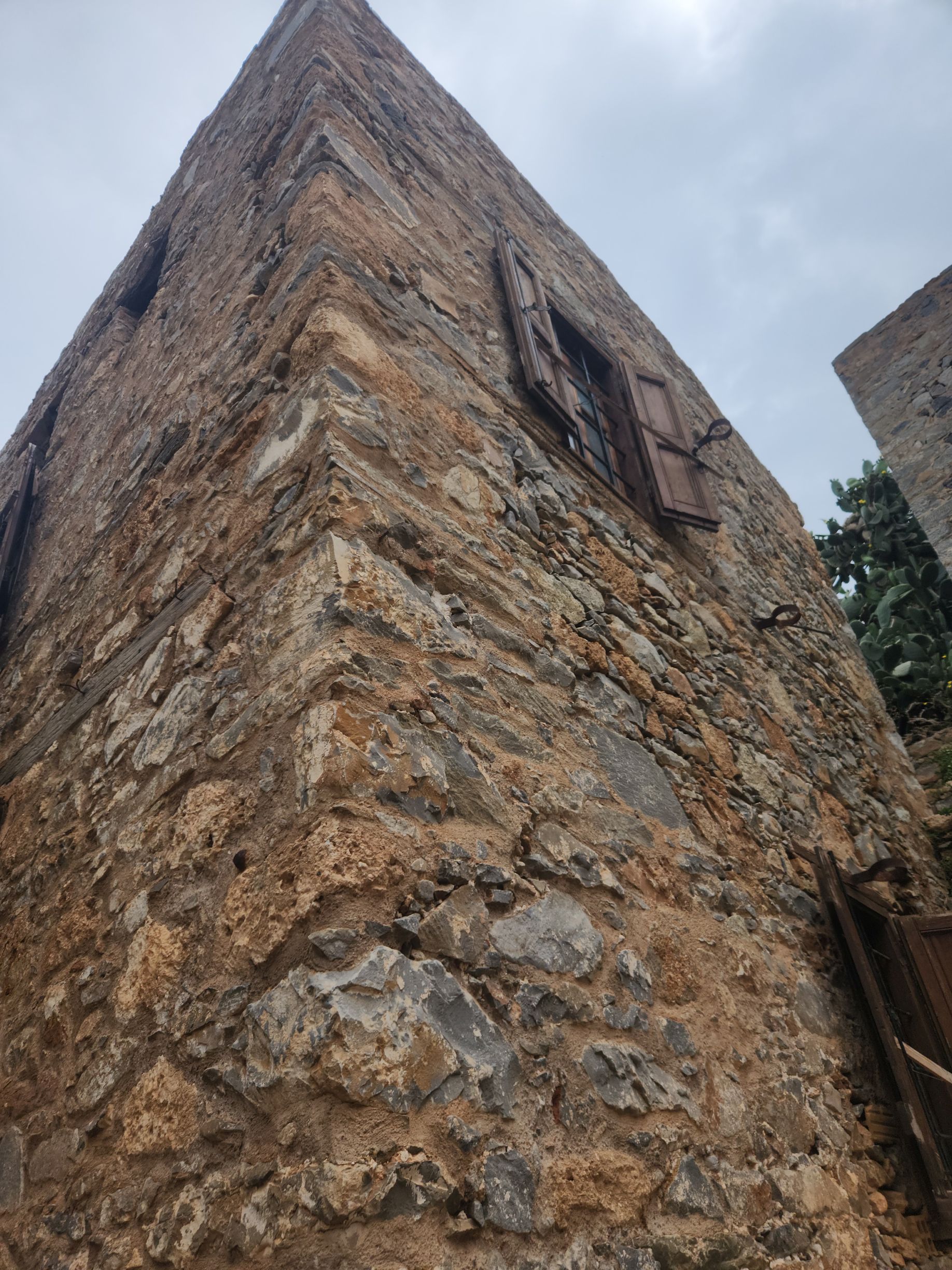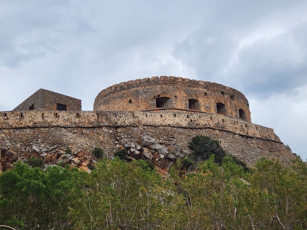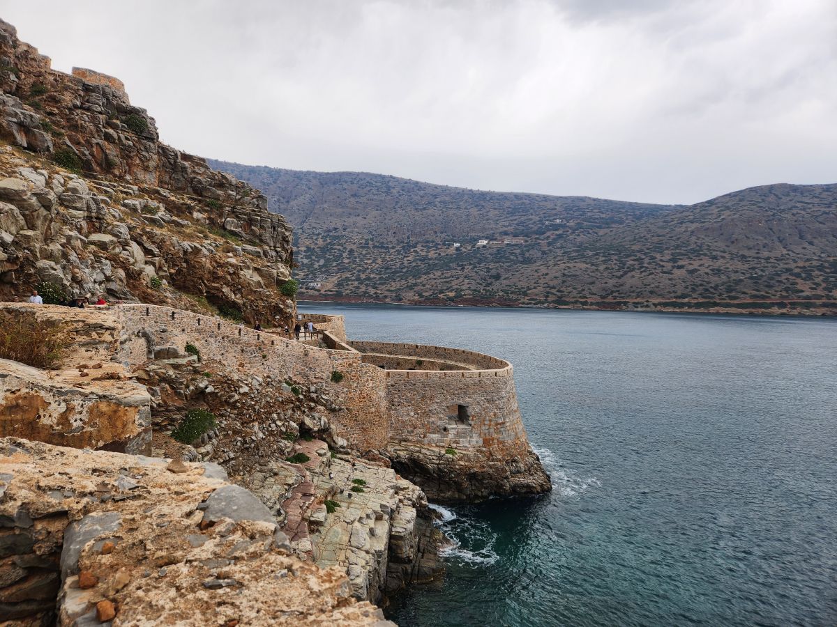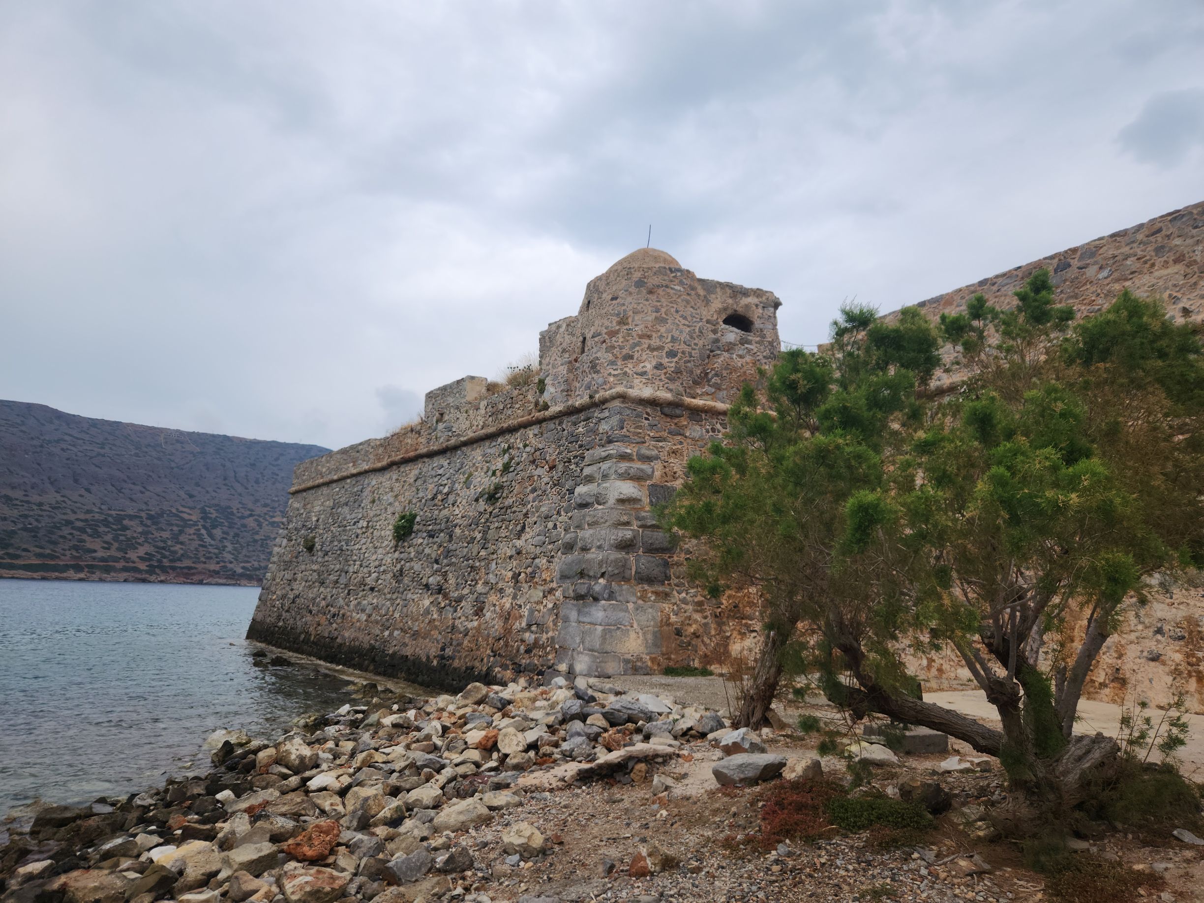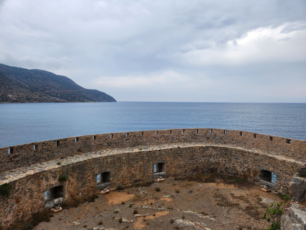 Arriving at Elounda harbor, we board the wooden sailing boat Katerina – my boat! – which ferries us 20 minutes over the protected bay to Spinalonga itself. The island is teeny – with the huge fortress on the upper levels guarding the island. We begin our tour walking through a tunnel cut from the mountain rock, then begin our circumnavigation of what is essential the ruins and recreation of the Leper colony that was here for years until being disbanded in 1957.