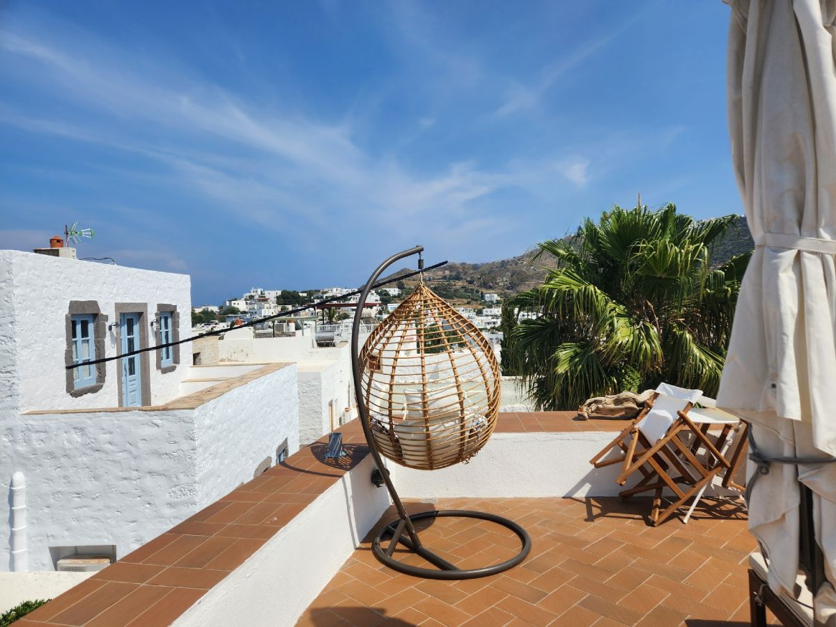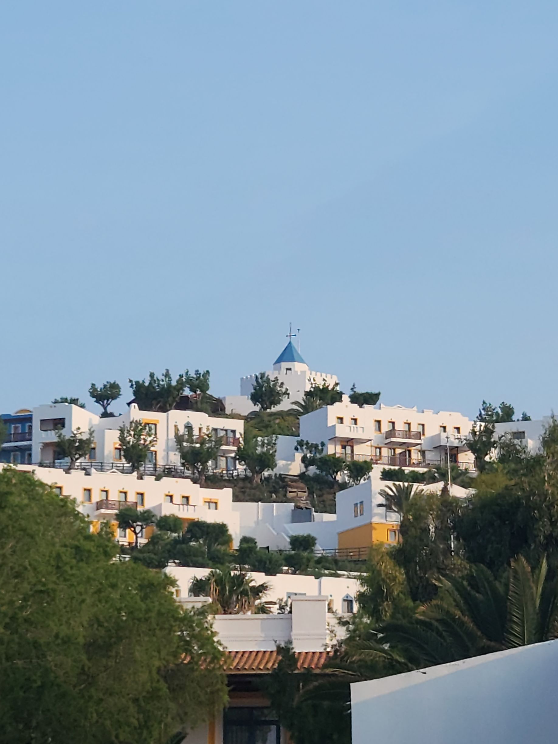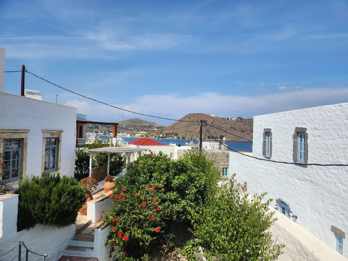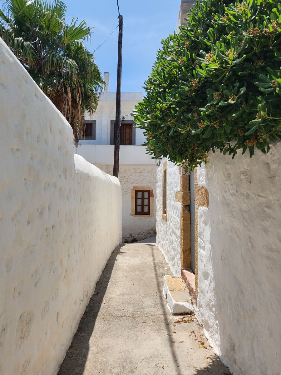Then we hit the grocery store to stock up on supplies, and spend the rest of the afternoon peacefully in the beautiful garden and up on the rooftop staring out at the gorgeous view of the Skala, the harbor and the Monastery up on the hill in Hora. Nothing wrong with that!