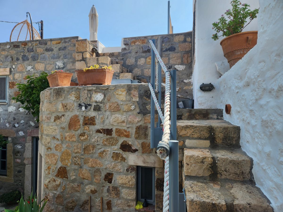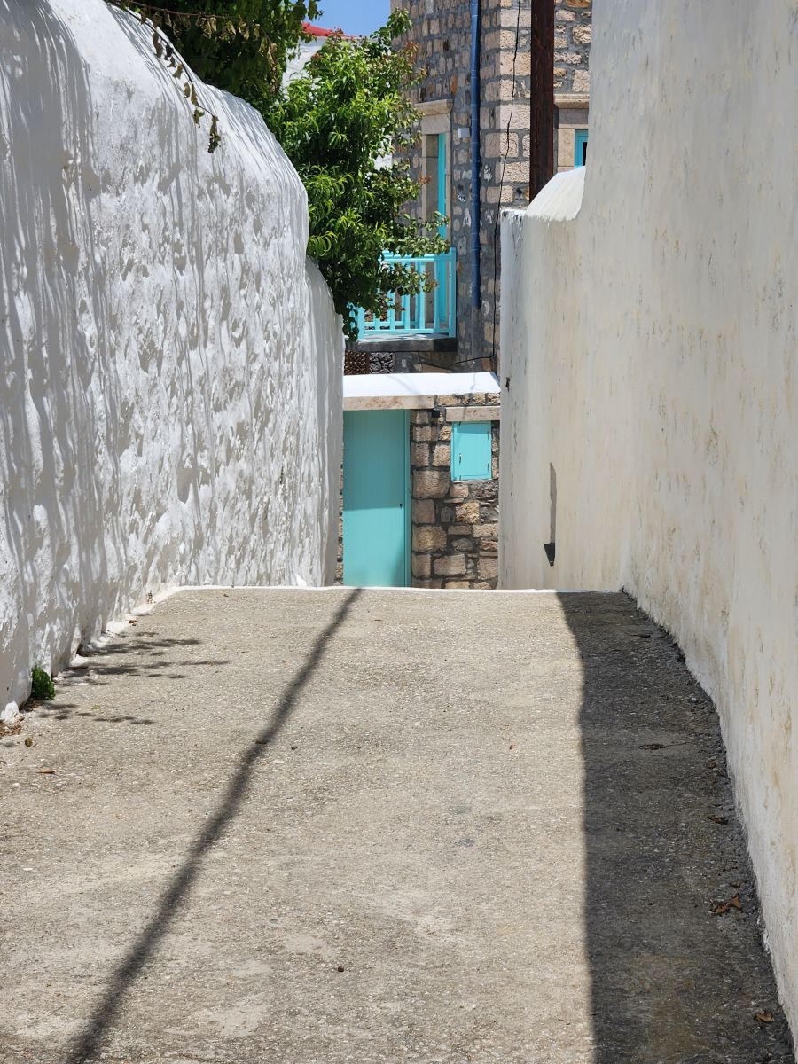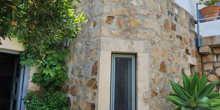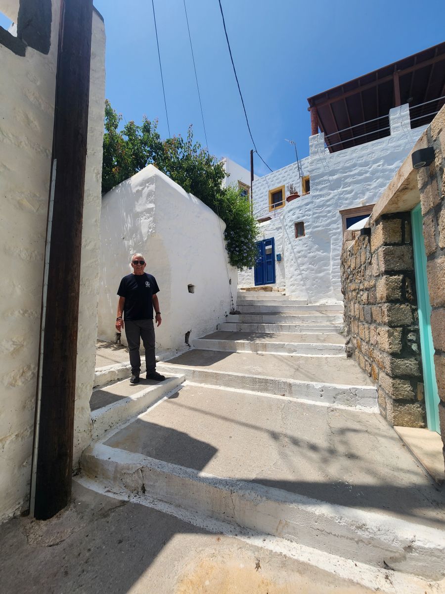 Finally we arrive in Patmos and are greeted by Liza, holding up a sign for Dimitrius – our host for the next 4 days. She greets us and escorts us through the winding little alley type streets off the Skala, around the main square, up some stairs, more little streets, more turns, more stairs – I’m ready to drop bread crumbs to find our way out and back! Seriously though, after a few minutes of walking, we arrive at the door to the stone house. What an amazing place!