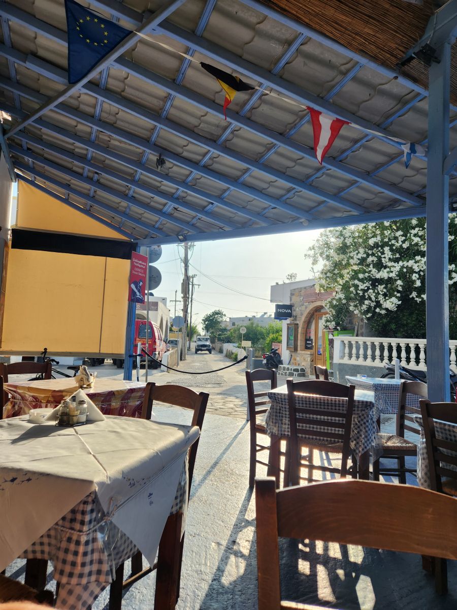 We continue along the water, back through town, stopping a little coffee shop for an excellent Tiropita – our first of the trip! We’ve waited so long for this! And some ok cappuccino. The Tiropita was the star – for sure. Now we’re on to the other big grocery store in town for more supplies – then it is back to the house for our leftover Souvlaki – which is every bit as good the next day!