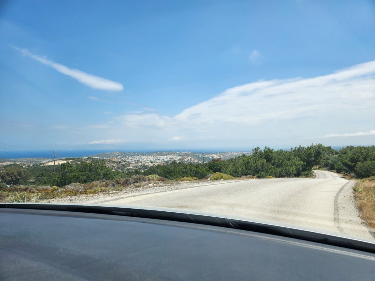 Today we are exploring the Northwest part of Kos, around Kefalos. This is the one place we did not make it to on our last trip here. The drive out here takes only about 30 minutes, and we go right past the airport and through the “forest” where we thought we’d explore last time, but it isn’t really too much of a forest – just a few scraggly trees. We drive out the one main road with little traffic, passing Cavo Greko where we ate on our last trip and finally pressing on through Kefalos to the “Kefalos viewpoint” way up on the mountainside.