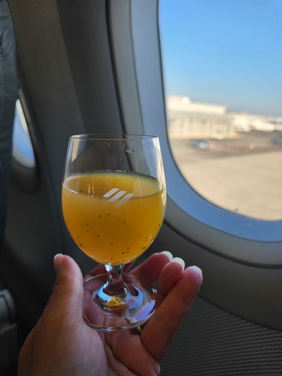 Check in was a breeze -walked right up and had the sweetest girl check us in. Then through security, again a breeze and we had a couple hours to kill in the teeny airport. We plopped down in one of the restaurants (Italian – but we were there for the drinks) had 2 beers and 2 wines over the course of 90 minutes and then reported to our gate where we miraculously boarded with only the 30-minute delay.
