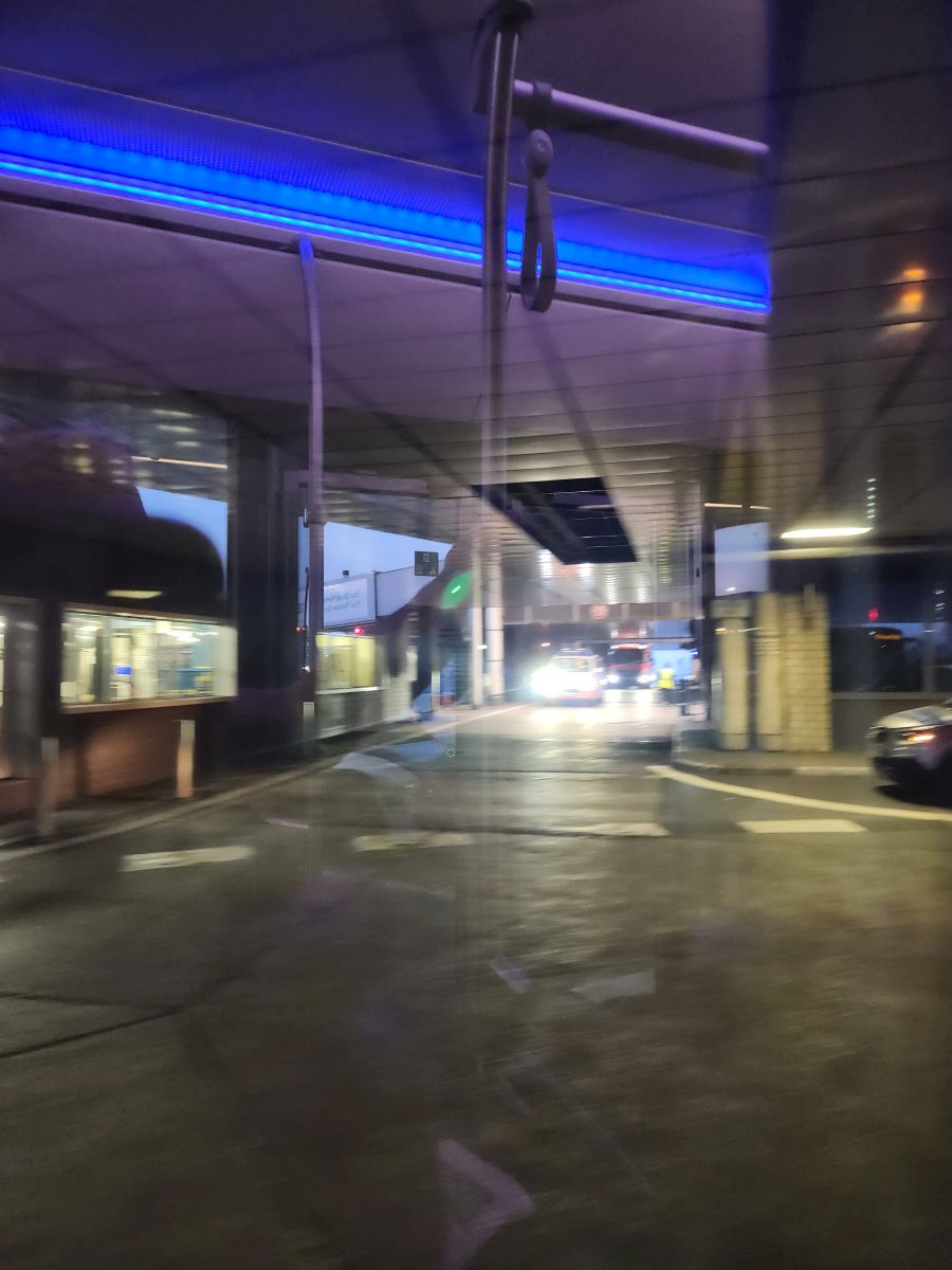 Of course, that’s when the fun began! There were a lot of folks on our flight with tight connections, and of course, we don’t have a gate, we have a bus way out there on the tarmac. So they were all a little stressed to begin with – understandably. Then we deplane, and there are 4 Polizei standing by the airplane stairs, 2 at each exit. They are checking the men’s passports – only men. Hmmm….very odd. After Ed passes inspection, we hop on the bus, only to sit there forever until the Polizei are through and say we can go. Then we drive, and drive, and drive, finally making it to the terminal only to be stopped in a long line of buses all waiting to off-load their passengers. What the heck?