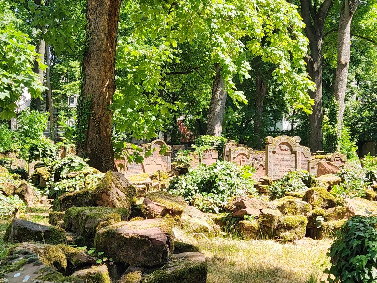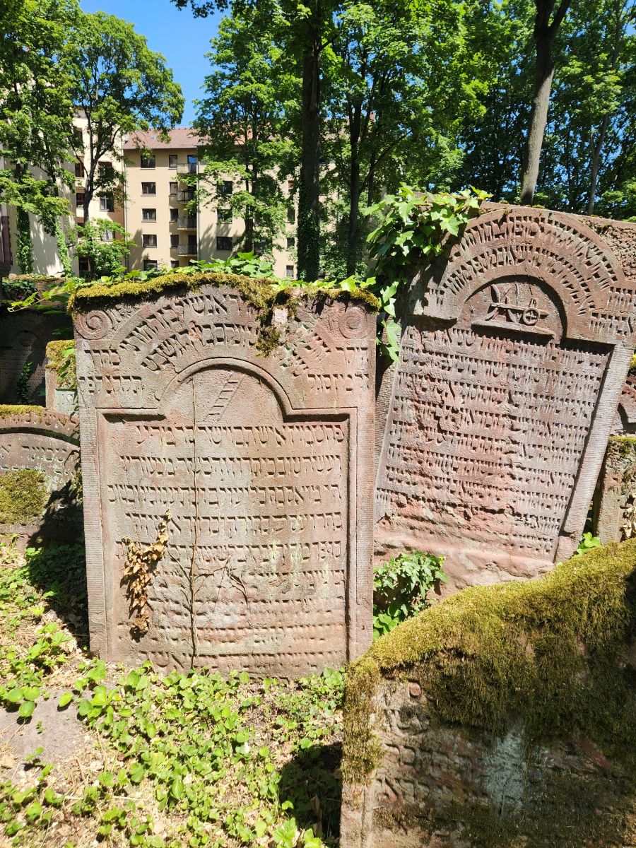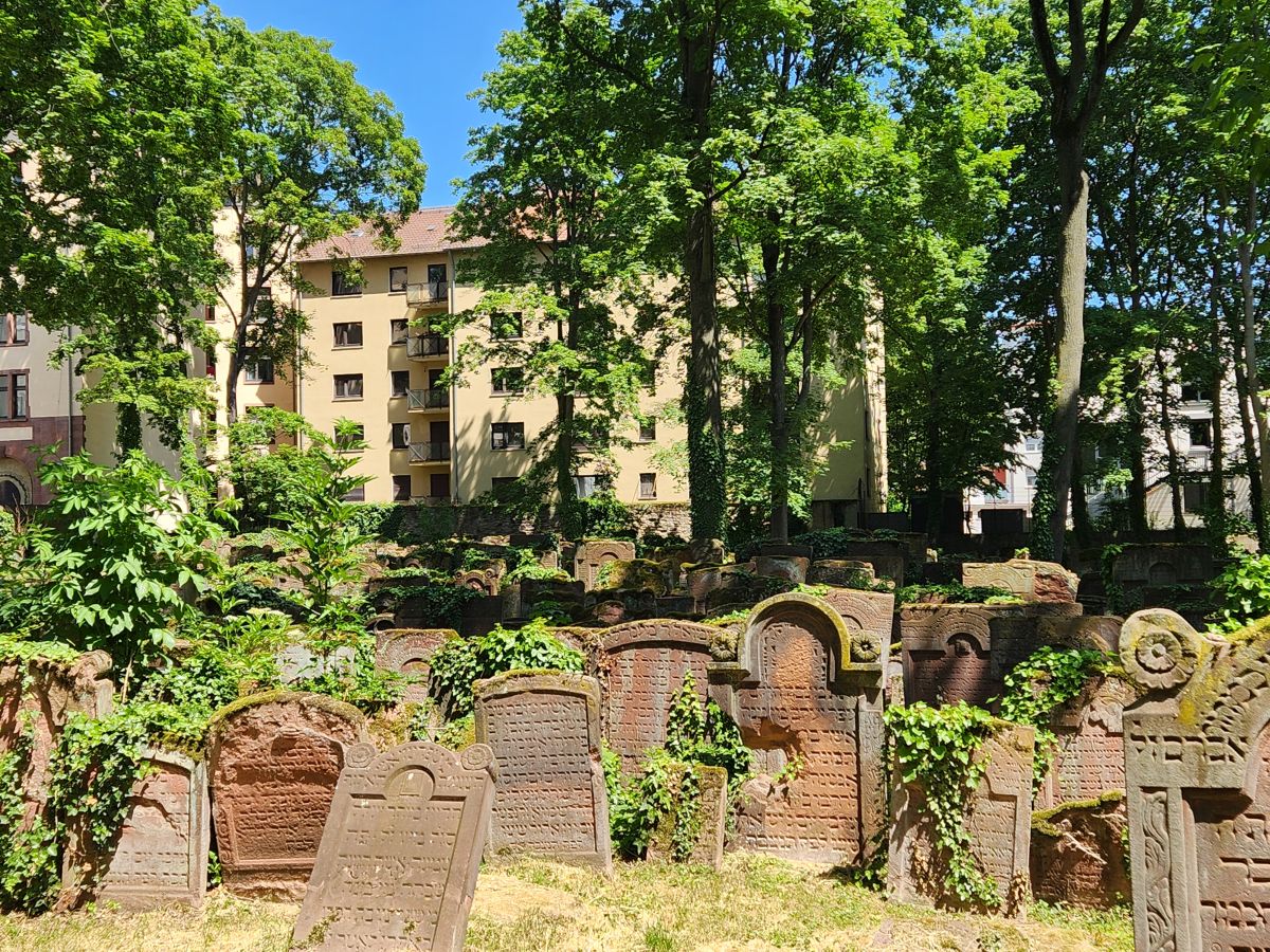 After lunch, we make our way over to the Judengasse museum which turns out to be the highlight. The museum tells the story of the Judengasse, the Jews who lived there and how the Holocaust affected the area, including the synagogue which was burned during Kristallnacht and the graveyard which was desecrated, but that the powers that be managed to save about 1600 gravestones while the other were destroyed by the Nazis. There are also great old pictures of the original street as it looked before it was razed in the 1800s and of the massive synagogue before it was burned to the ground.