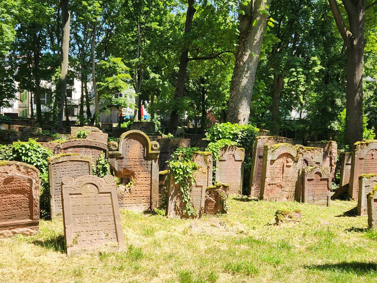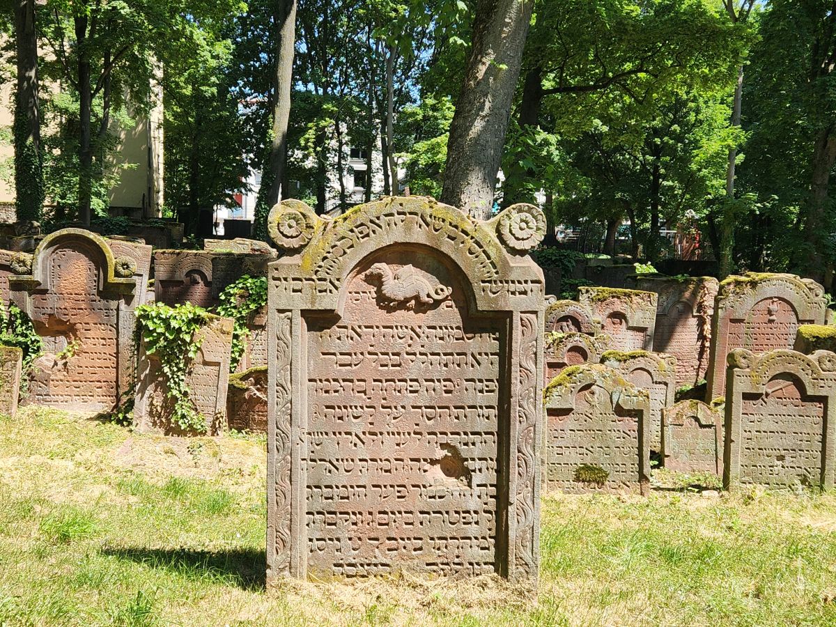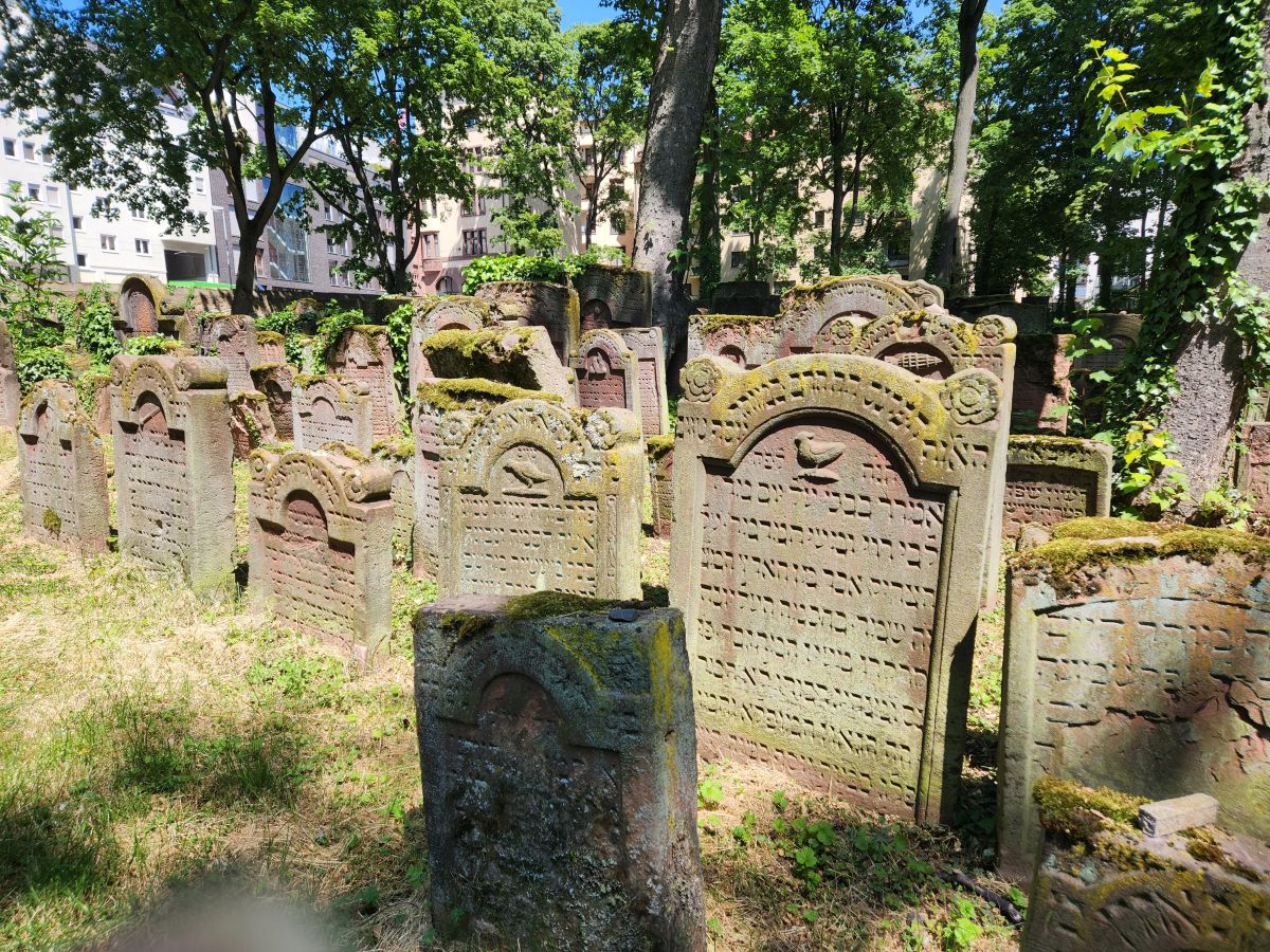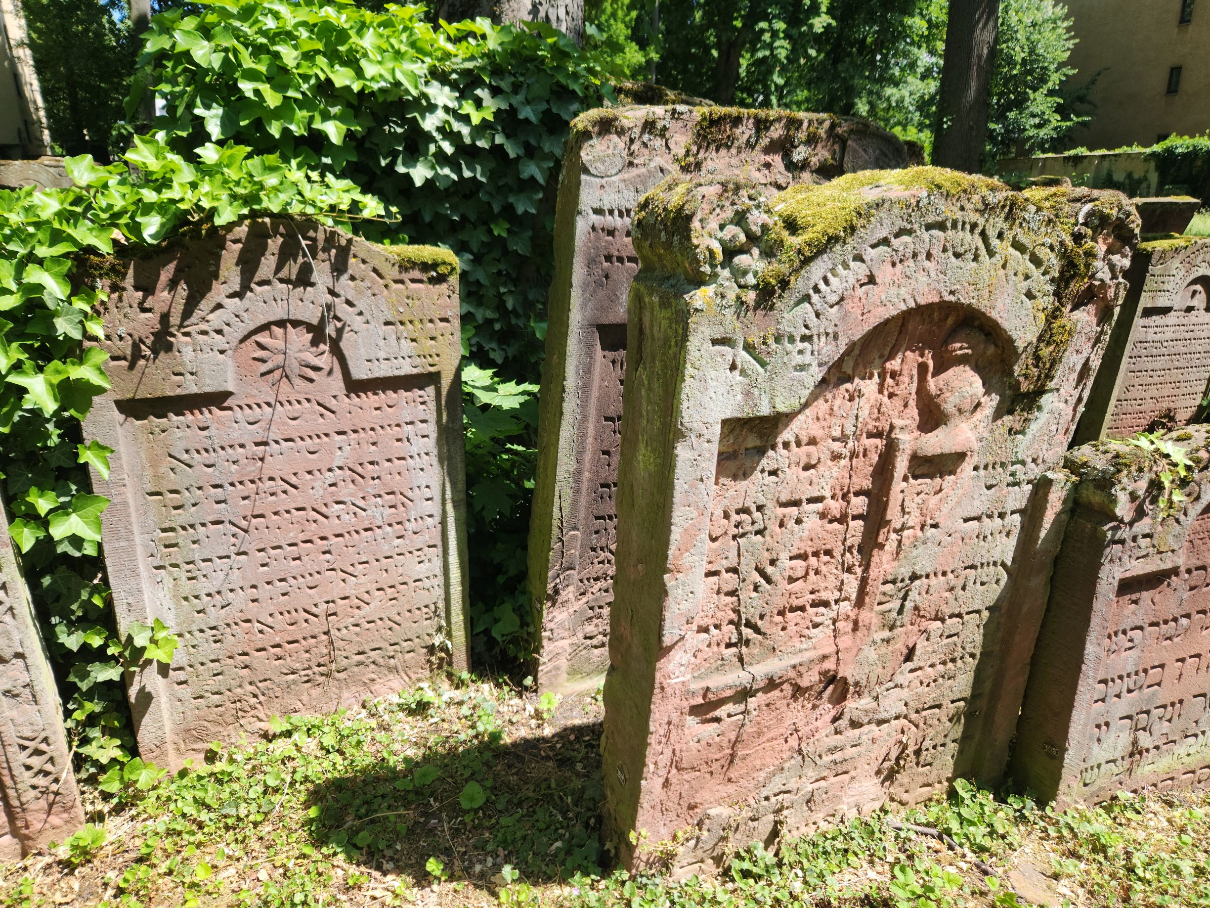 After lunch, we make our way over to the Judengasse museum which turns out to be the highlight. The museum tells the story of the Judengasse, the Jews who lived there and how the Holocaust affected the area, including the synagogue which was burned during Kristallnacht and the graveyard which was desecrated, but that the powers that be managed to save about 1600 gravestones while the other were destroyed by the Nazis. There are also great old pictures of the original street as it looked before it was razed in the 1800s and of the massive synagogue before it was burned to the ground.