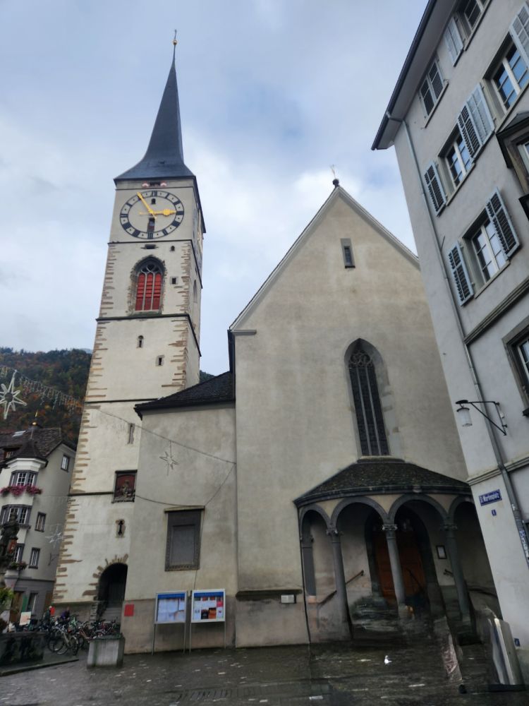 We organize ourselves, freshen up, then are picked up by G&S for a walk around Chur, the oldest city in Switzerland. We had been to dinner here on our last trip, but had not explored, which makes this afternoon a perfect time to do it. The old town is a delight – narrow streets, old beautiful buildings. We wander through the area, past the Postplatz, with it’s cool new statue of a man on stilts (of which I couldn’t ever get a good picture) then to town hall before stopping in front of the Obertor, one of the Medieval fortification towers, then on to the Cathedral of Mary the Assumption.