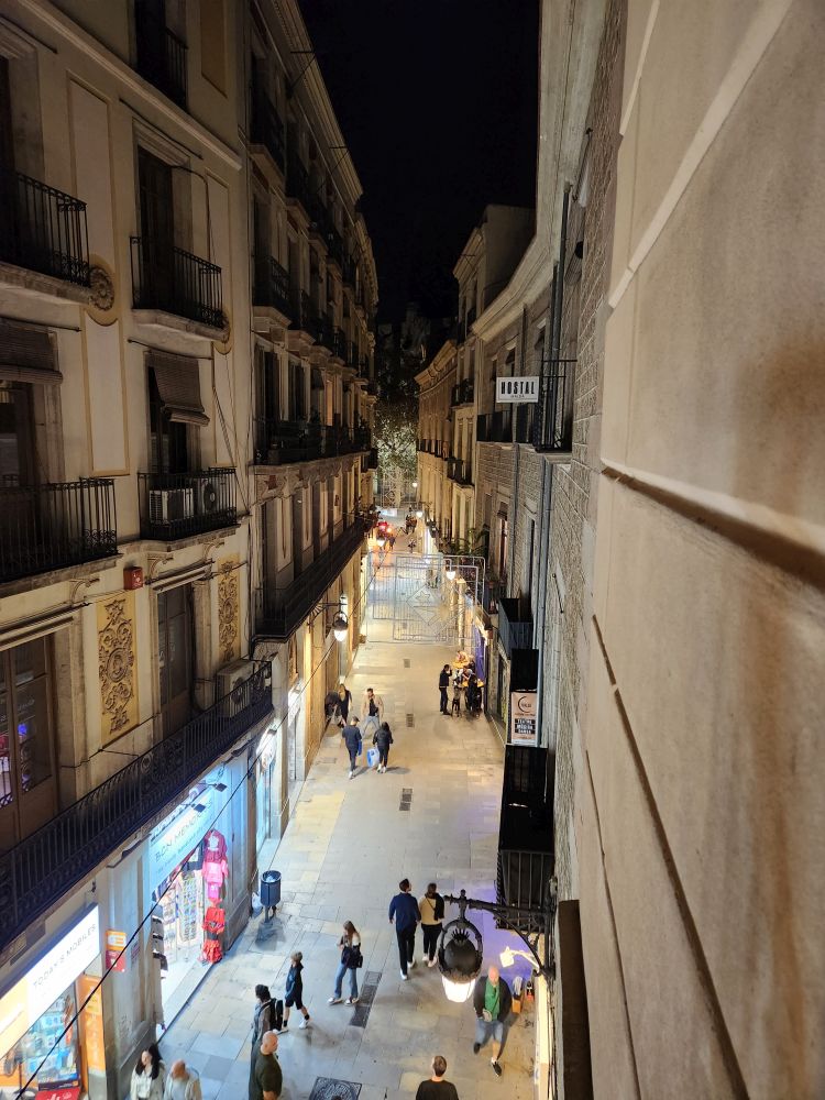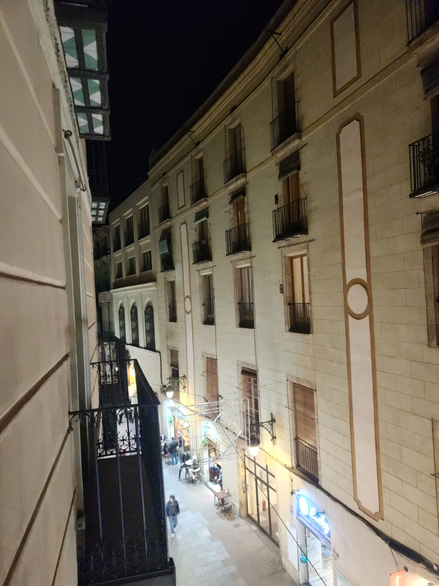 After that lovely meal, we head back to our cute corner room with the 2 balconies looking over C. del Pi and hang out for our last night on land for the next, oh, 37 days!