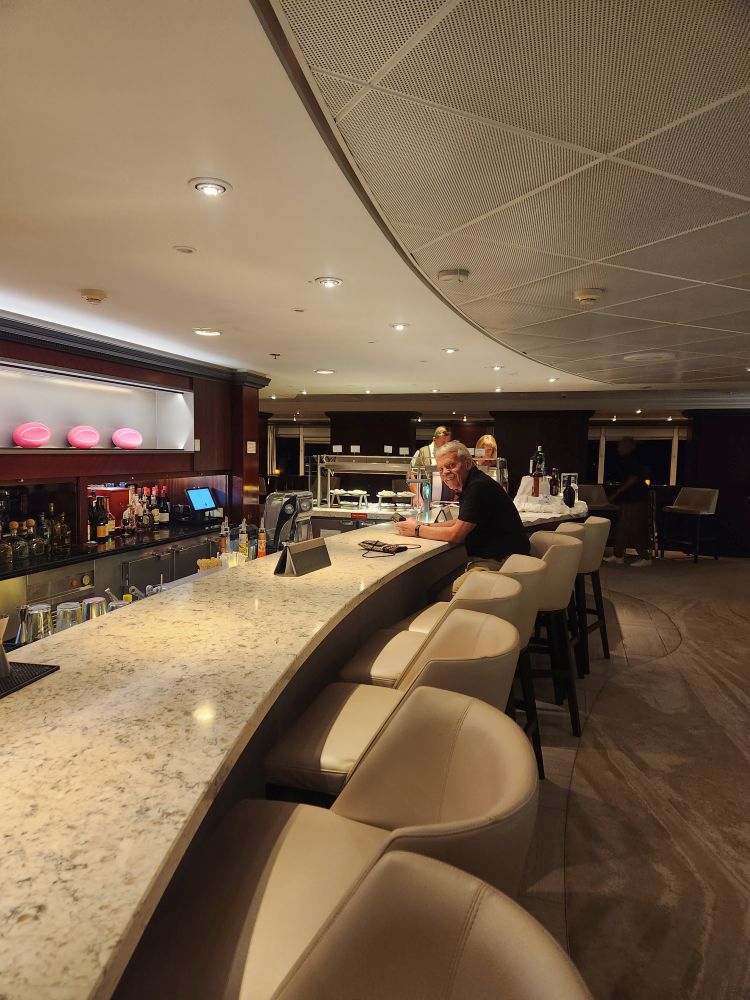 As we wander through the ship, we find that we know tons of staff from the Quest. Half the bar staff and servers have come from Quest it seems. It is like old home week! So fun. The day progresses as normal, gym, drinks in an absolutely empty Living Room, dinner – yes we are definitely taking Table 4!!! – welcome aboard show which is not the variety show but another one for some reason, but singers and dancers are great – even if they aren’t Zoe and Galen.