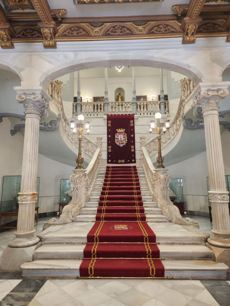 We actually arrived early, at 10:30a, sailing through a thick fog bank on the way into port. Per usual, we headed out right away, even though we knew we’d have to cool our heels for lunch – but better to be walking around on land then just hanging around the ship doing nothing. A huge bonus of our early and weekday arrival is that we finally get to tour the City Hall building, the Palacio Consistoria, which I’ve wanted to see since our first visit here ages ago. Our timing never worked out – today though breaks our streak.
