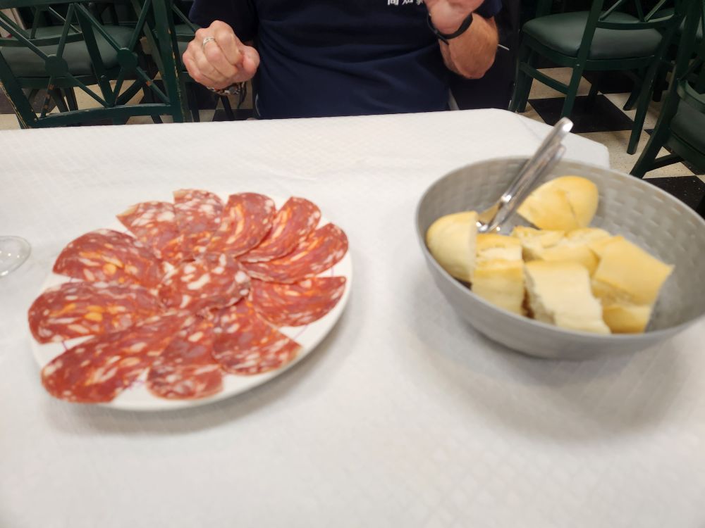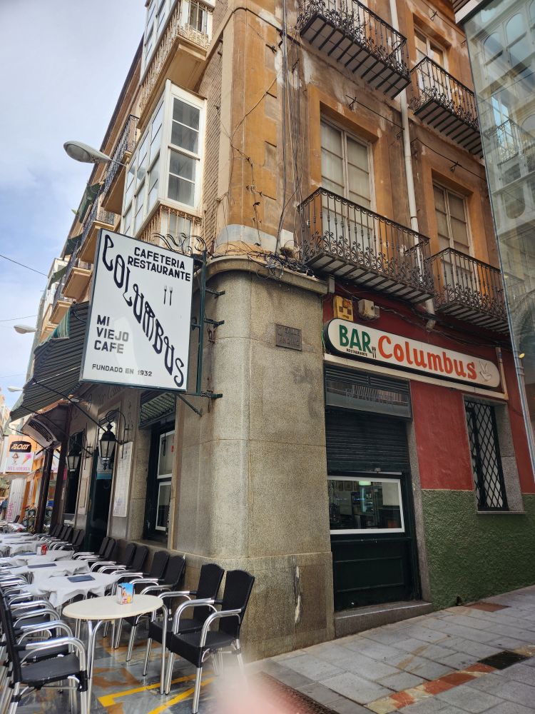 On our two trips up and down Calle Mayor we has passed a cute little bar called Bar Columbus, Mi Viejo Café. Well how can you resist that? It was the typical old, local bar where we are the only non-Cartagenians there, and definitely the only ones who want food at this time of the day, even though it is just turning noon. Everyone else there is chatting over cappuccino and espresso, while we navigate the menu and help the old waiter set up the table with tablecloth and utensils. Perfect! We order a traditional meal of thin sliced chorizo and pulpo and have a lovely meal in a great cozy atmosphere.