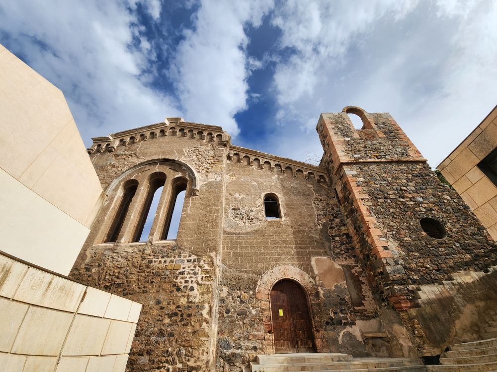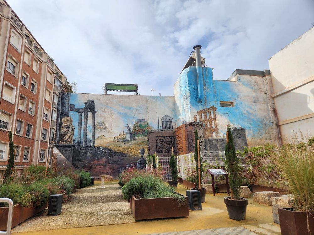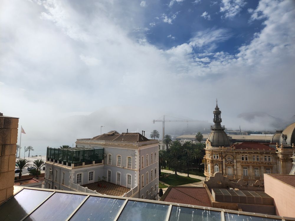 Now it is time for exercise! We are climbing up to the fortress and back. Get our blood pumping and work off the chorizo and bread we just had for lunch. We know exactly where we are going as we’ve done this before, just in the opposite direction. Up through town we go, passing Jardin Romano Cuesta de la Baronesa, the small little garden with the gorgeous mural. Then onto the mirador in front of the Catedral de Santa Maria la Mayor where you can see the fog trying to break up over the water.