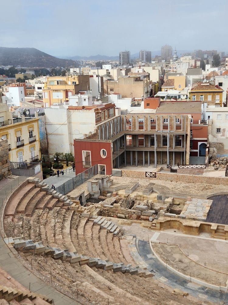 Then up the steps and out onto the broad walkway above the Roman Theater. The views down into the theater never cease to amaze us!