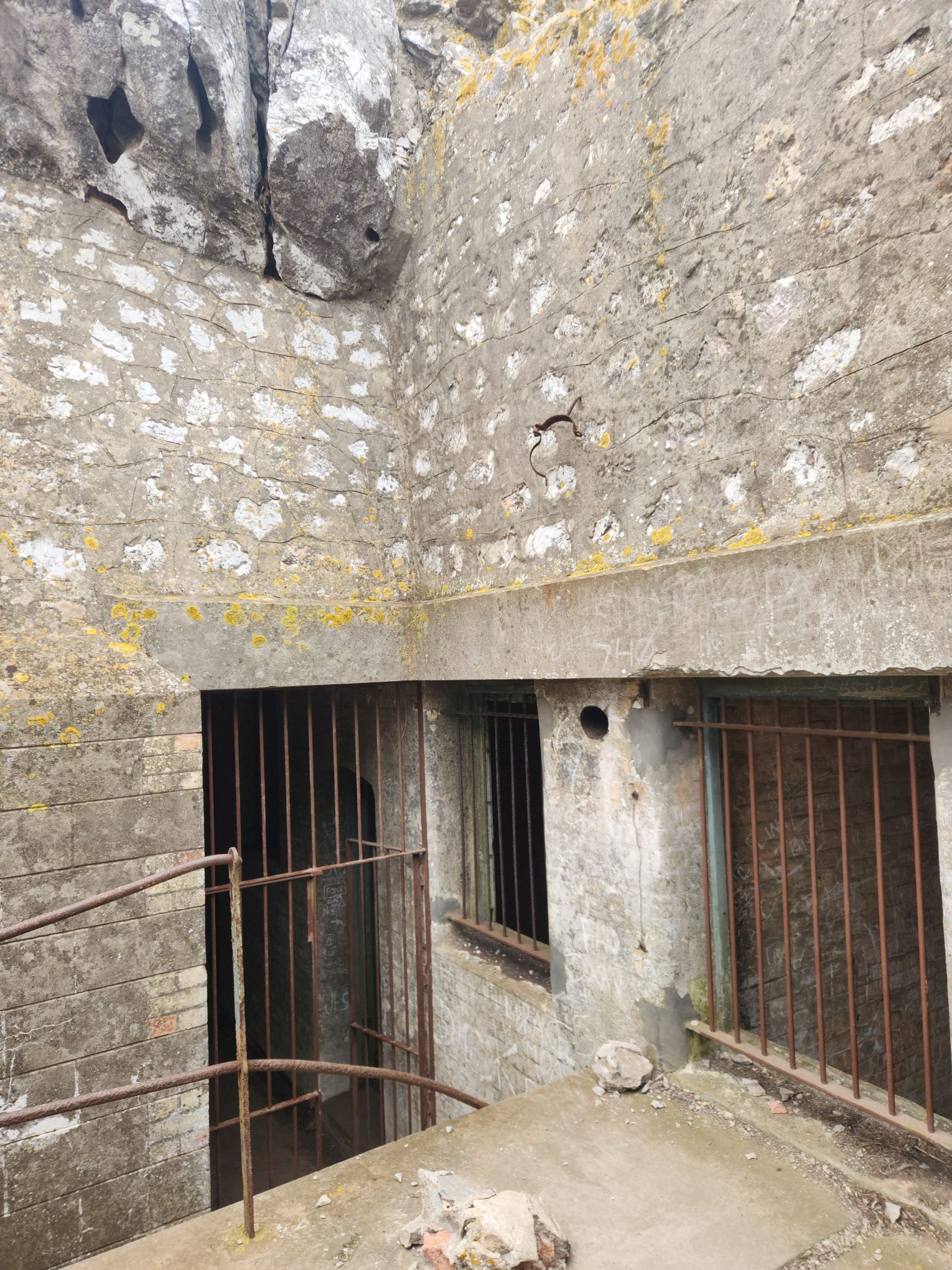 We are sort of following some directions we found on TripAdvisor for walking down from the top of the cable car, but end up taking our own little tour up the Douglas Path and Lookout to the top of this craggy peak where the Lookout building is still there and you can explore all through the rooms that must have held troops and armaments in the day. Pretty wild that you can just wander all through these rooms unmonitored.