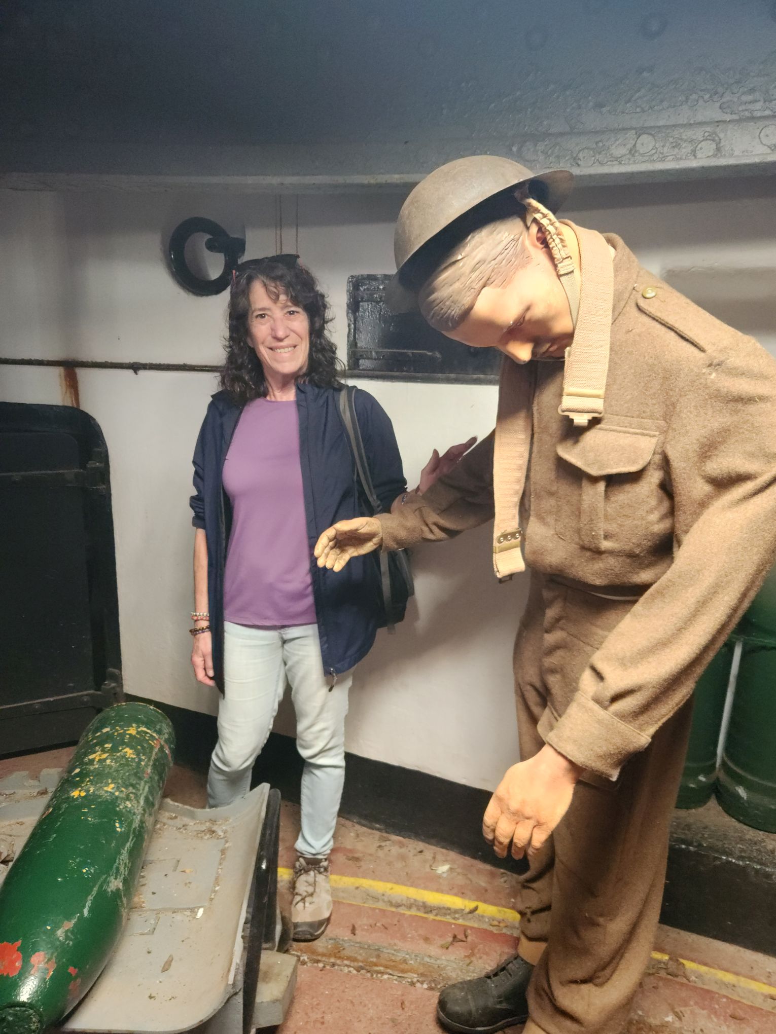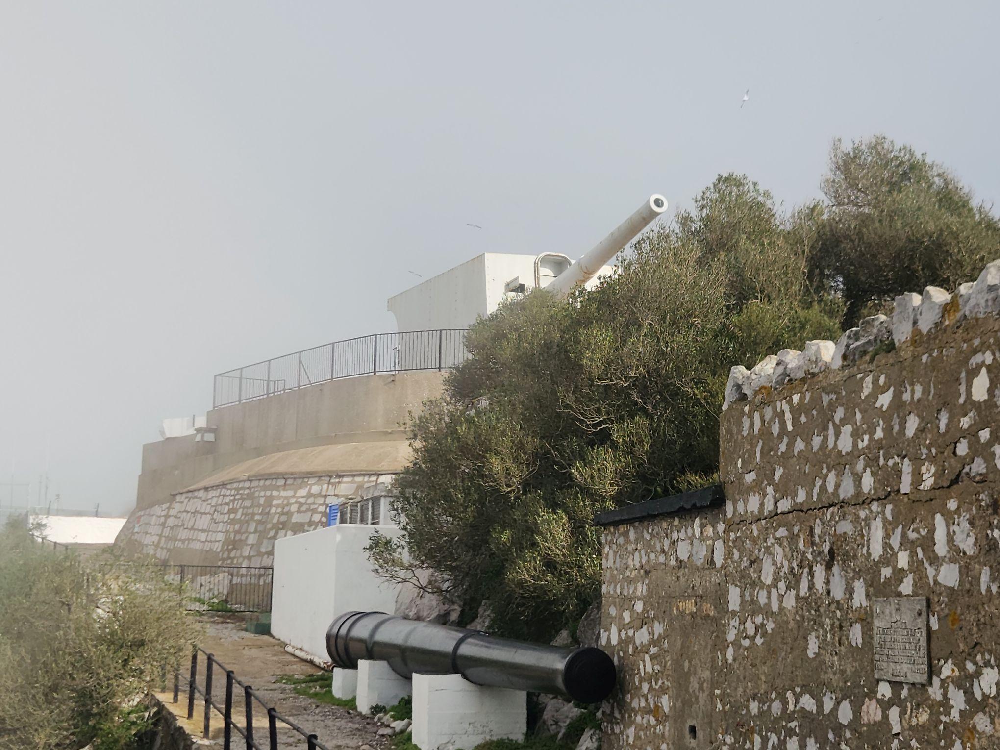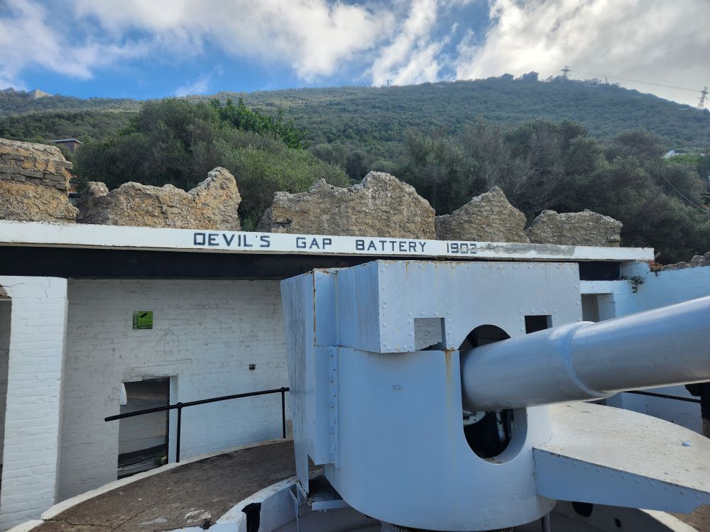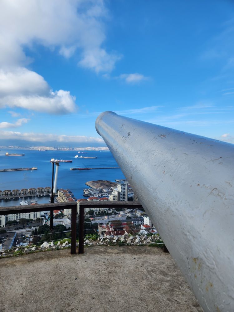 Reaching O’Hara’s Battery, the highest point of the Rock, and named after a former Governor of Gibraltar, we wander through the battery, built in 1890. There are complete machines and mechanisms for the guns and tunnels and everything down here. Just really mind-boggling that we’re just walking around with only signs telling us not to touch things! But totally cool to walk underneath the huge gun mounting and all around the top lookout platforms. Oh, and the dead looking soldier mannequin that is inside with the gun mounting. Weird. But, hey, what to do we know – and we aren’t touching him to fix his head!