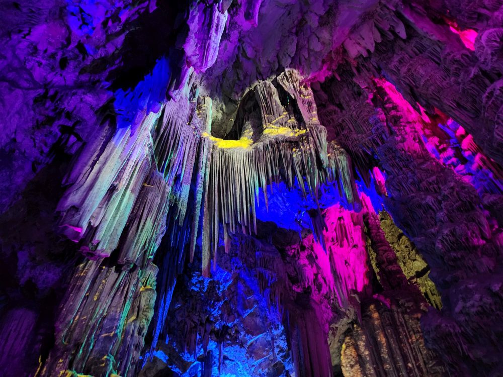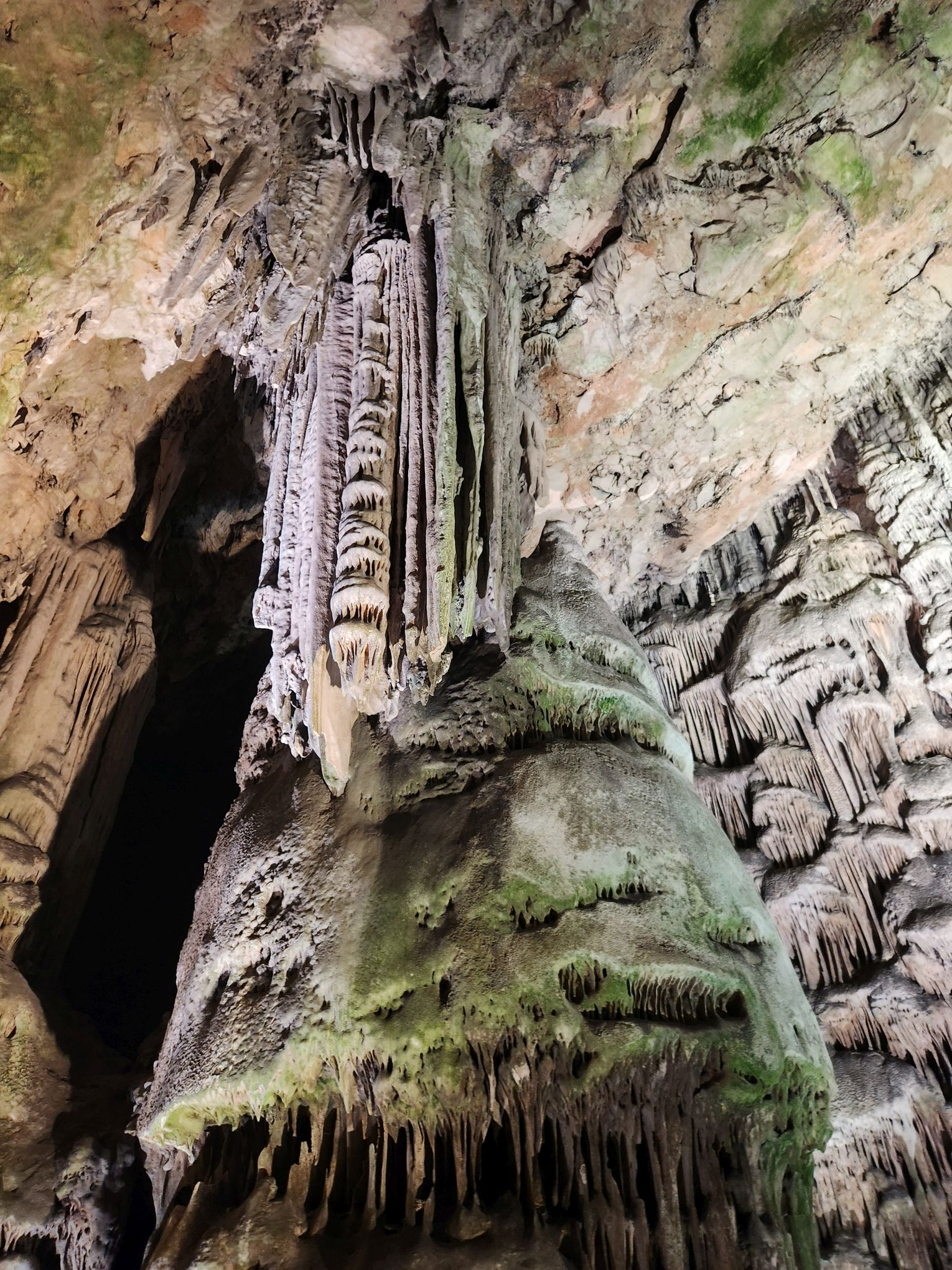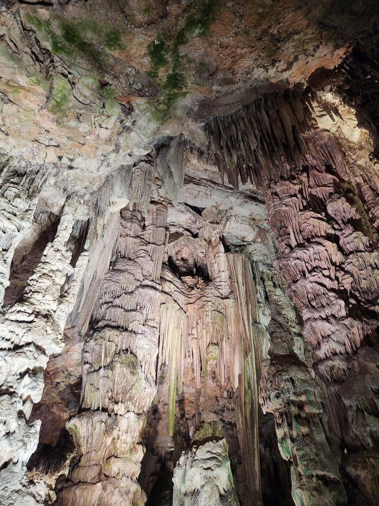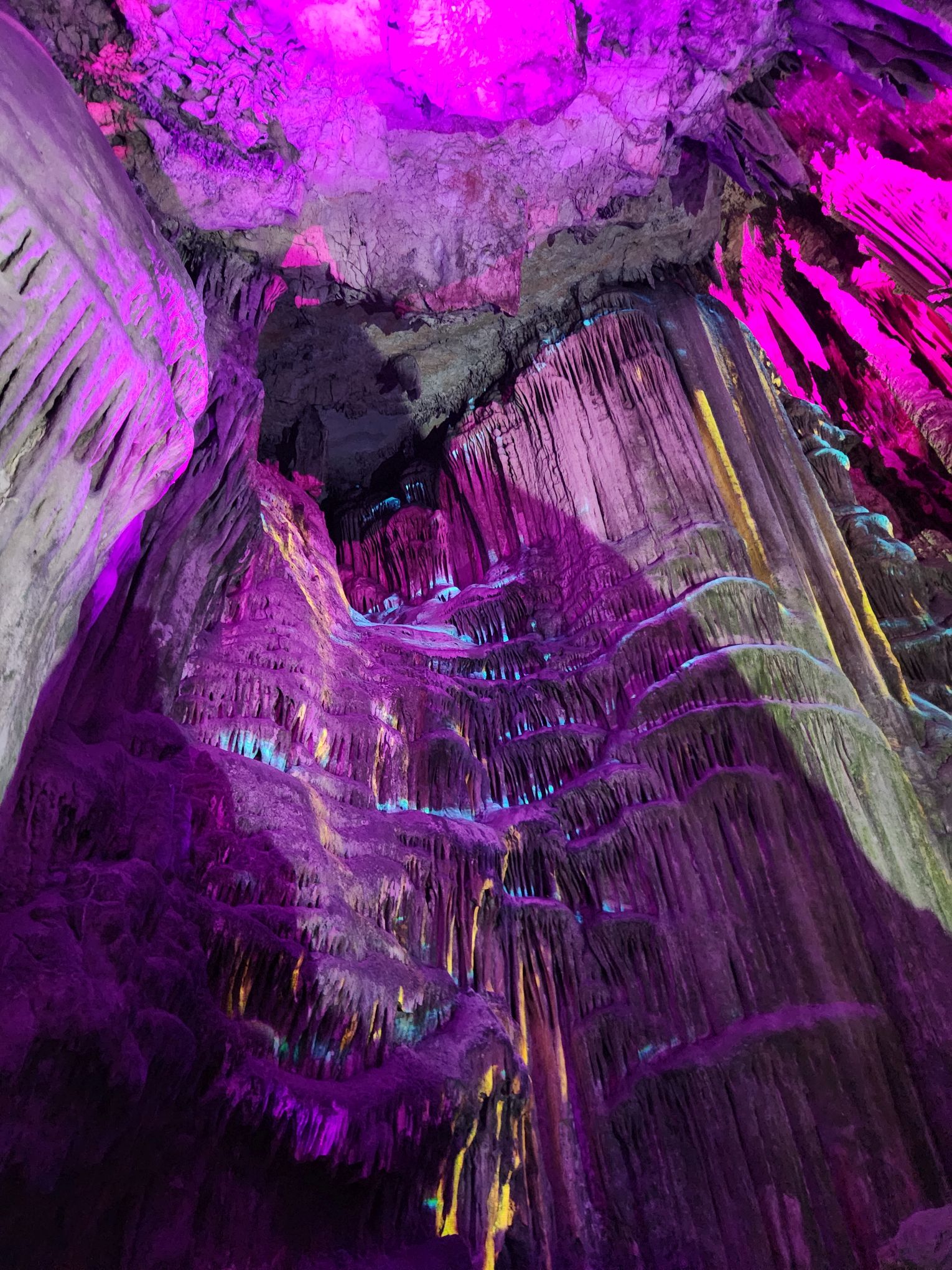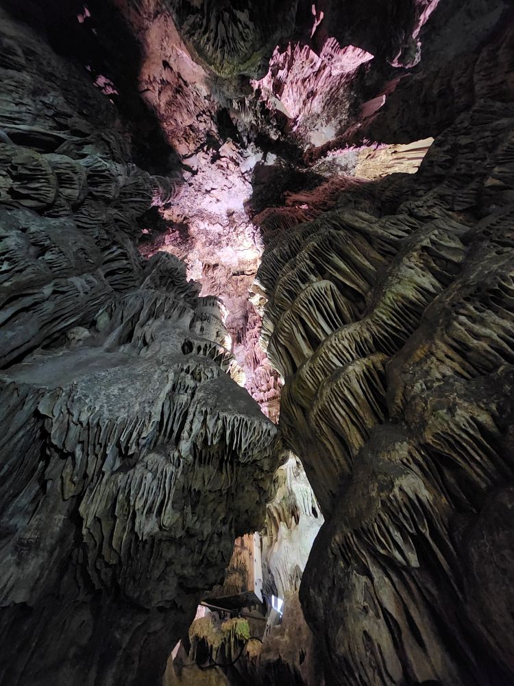 We wander through all the little caverns and areas, just taking in the incredible stalagmites and stalactites. The only thing that is sort of disturbing is the digital “video” type show – there are all these different color lights projected onto the rocks that fade in and out of each other. To some degree, it’s cool – but on the other hand, it is sort of annoying and you lose the simple beauty of the natural rock.
