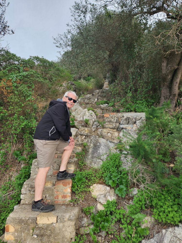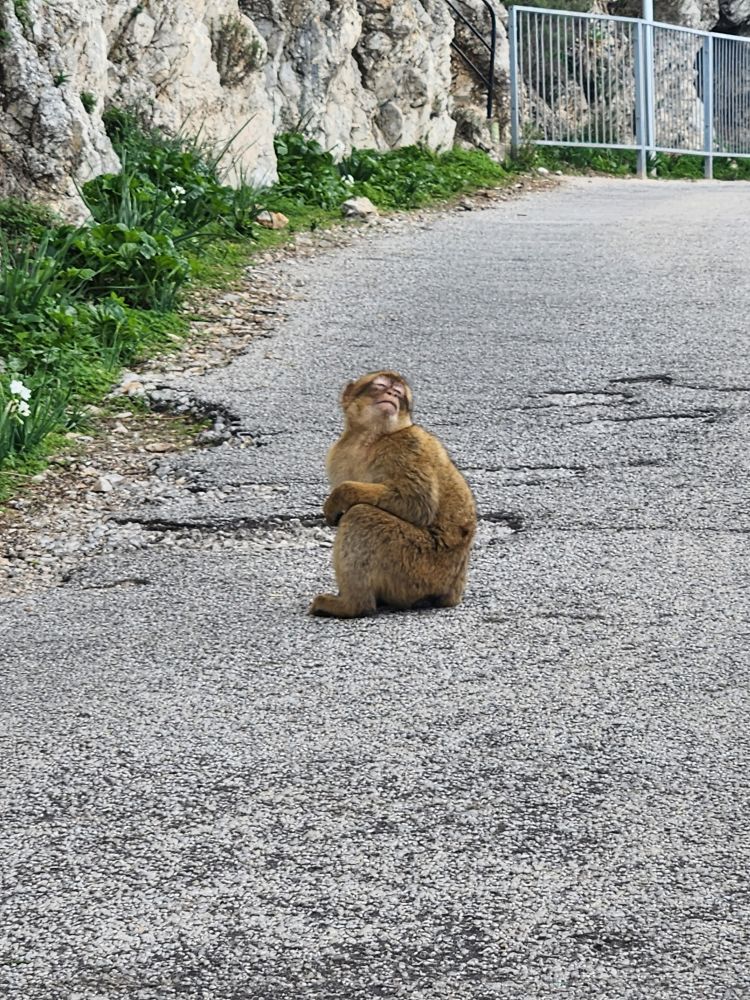 Back out on the path we head toward the Mediterranean Steps and O’Hara’s Battery, passing another Macaque couple on the way who are just perched on a rock wall, nit picking. They are amazing creatures to watch!