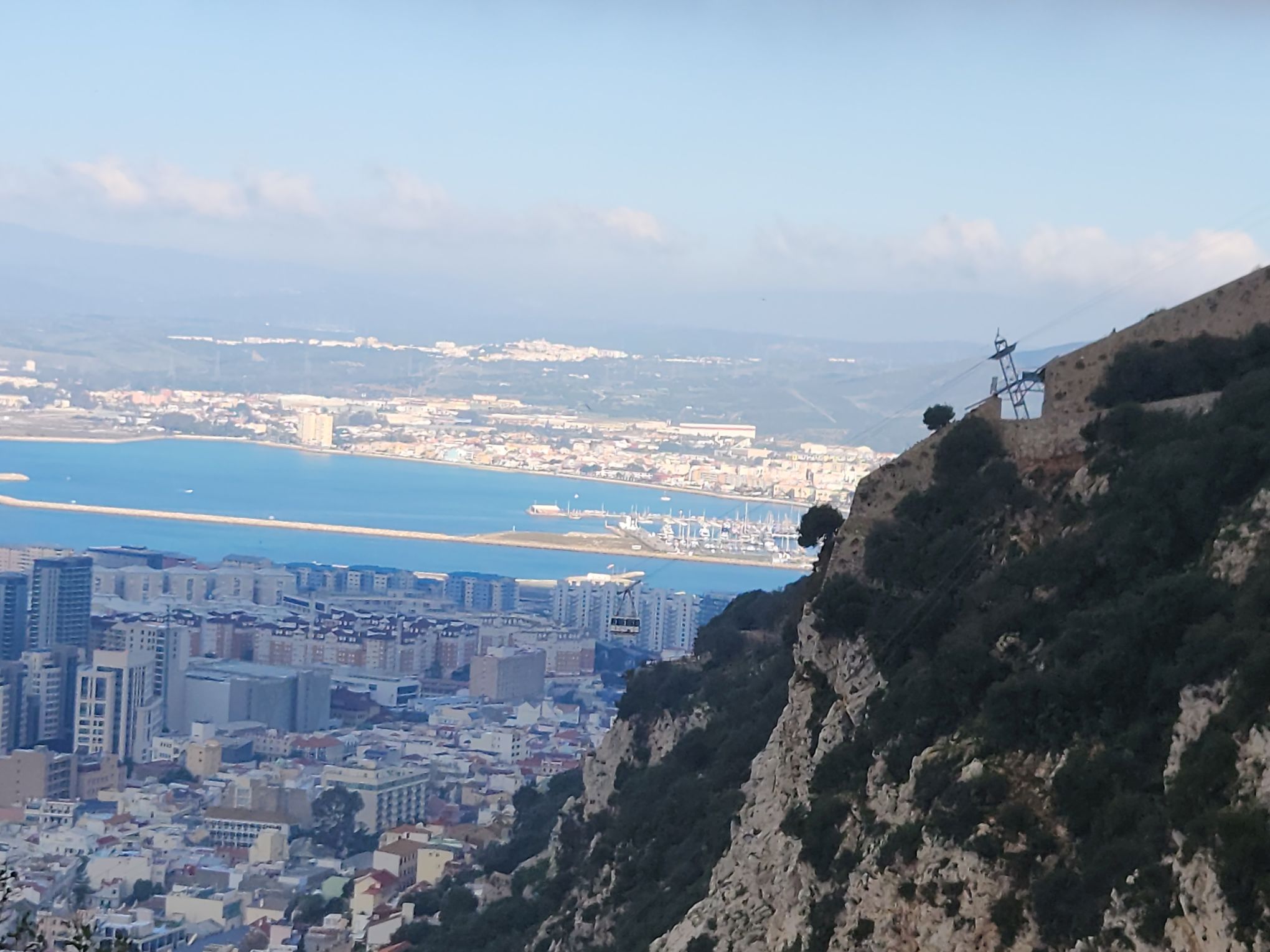 We walk through all the streets we have become familiar with on our many visits here. Up through the marina, traversing the entire length of the old town over to the Cable Car station. They supposedly don’t open until 9:30, and we are about 20 minutes early, but when we walk up to the ticket office, the lady is open and sells us our tickets for one-way cable car and admission to all the attractions on the Rock. It’s expensive, 67.60 GBP for the both of us, but it’s a full day excursion for us – so well worth it. The ticket lady is sweet – she asks us if we are on the ship and what time we sail. We tell her all aboard is 4:30 and she approves our purchase of the one-way cable car ticket, nodding her head, telling us we have enough time. Very sweet. I’m sure some people try to walk down and don’t realize how long it will actually take – so nice that she checks up on her customers!