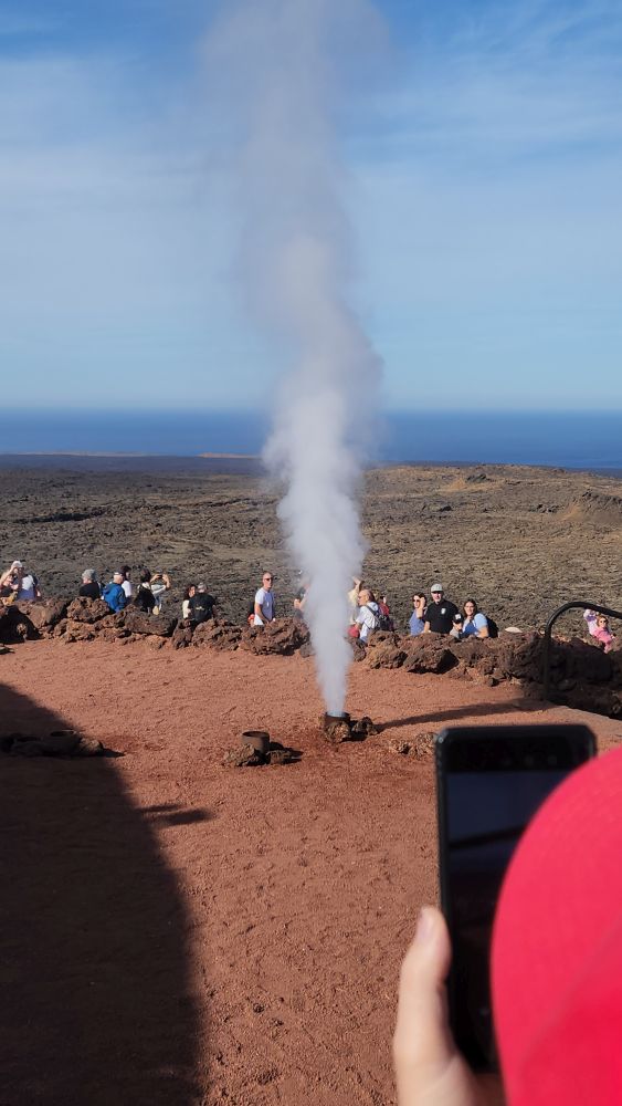 The last demonstration is a water geyser. They’ve placed tubes in the ground where they pour water, and after a count of 3 you get a geyser of huge – and probably hot – proportions! Really amazing and quite fun! Demonstrations done, we get a few minutes for a rest stop and to wander through the restaurant and gift shop where they cook everything over volcanic rock and flames.