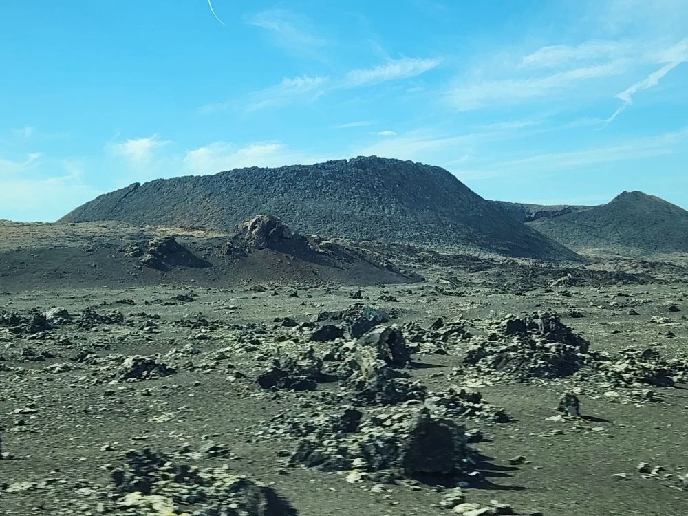 Really, it is spectacular. Just miles and miles of volcanic ash and lava flows. Volcanoes all in a row. Even huge lava tubes that have collapsed which we drive through on the bus – with the lava walls towering overtop our huge vehicle. Very impressive to say the least!