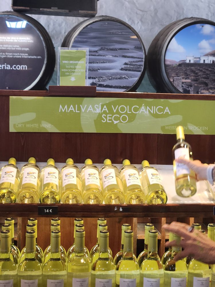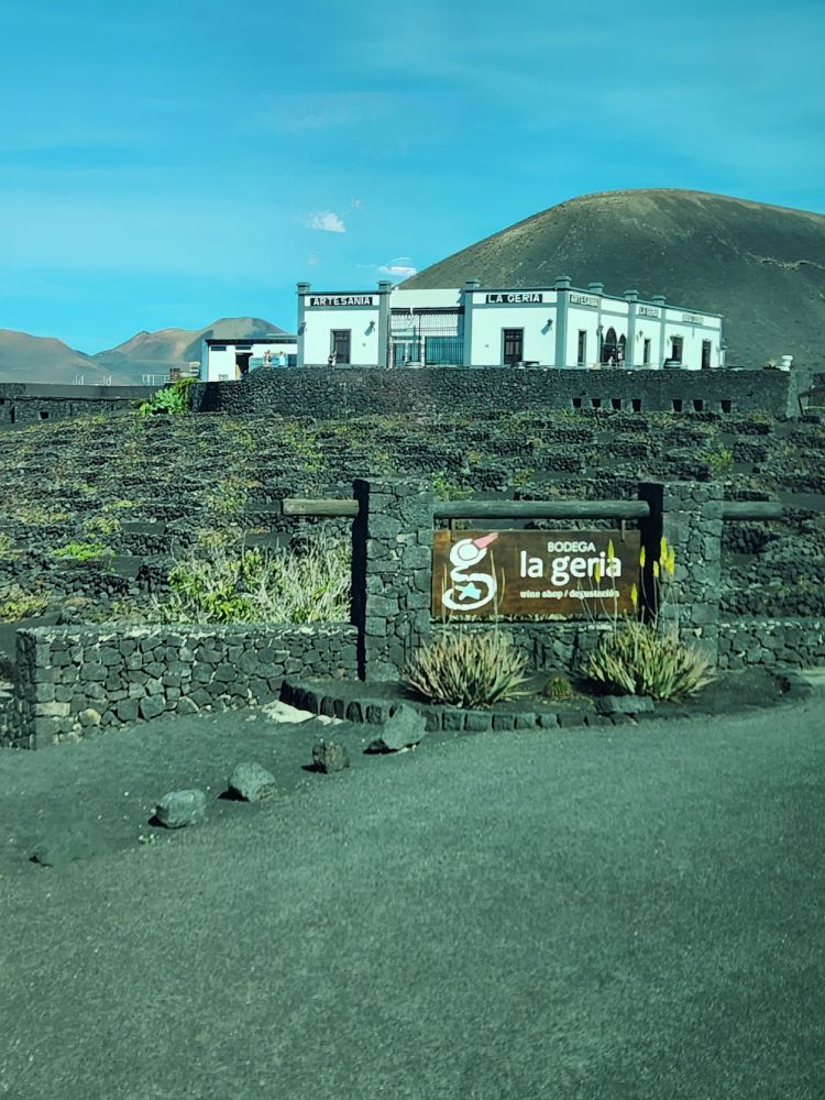 Arriving at La Geria, one of the original bodegas on the island, we each get a taste of the traditional Malvesia Seco, a nice dry white wine, as well as a Moscato, which actually is not all that bad. But the prices are a bit steep – well – ok – not on normal terms, but considering I’ve been buying wine for under 3 or 4 Euros everywhere, 17 euros is a bit much, particularly since I didn’t really like it all that much, and I have very good free wine onboard. So, we sipped and left, taking the rest of our time at the bodega to walk around the exterior patio and take photos of the magnificent vineyards surrounding us.