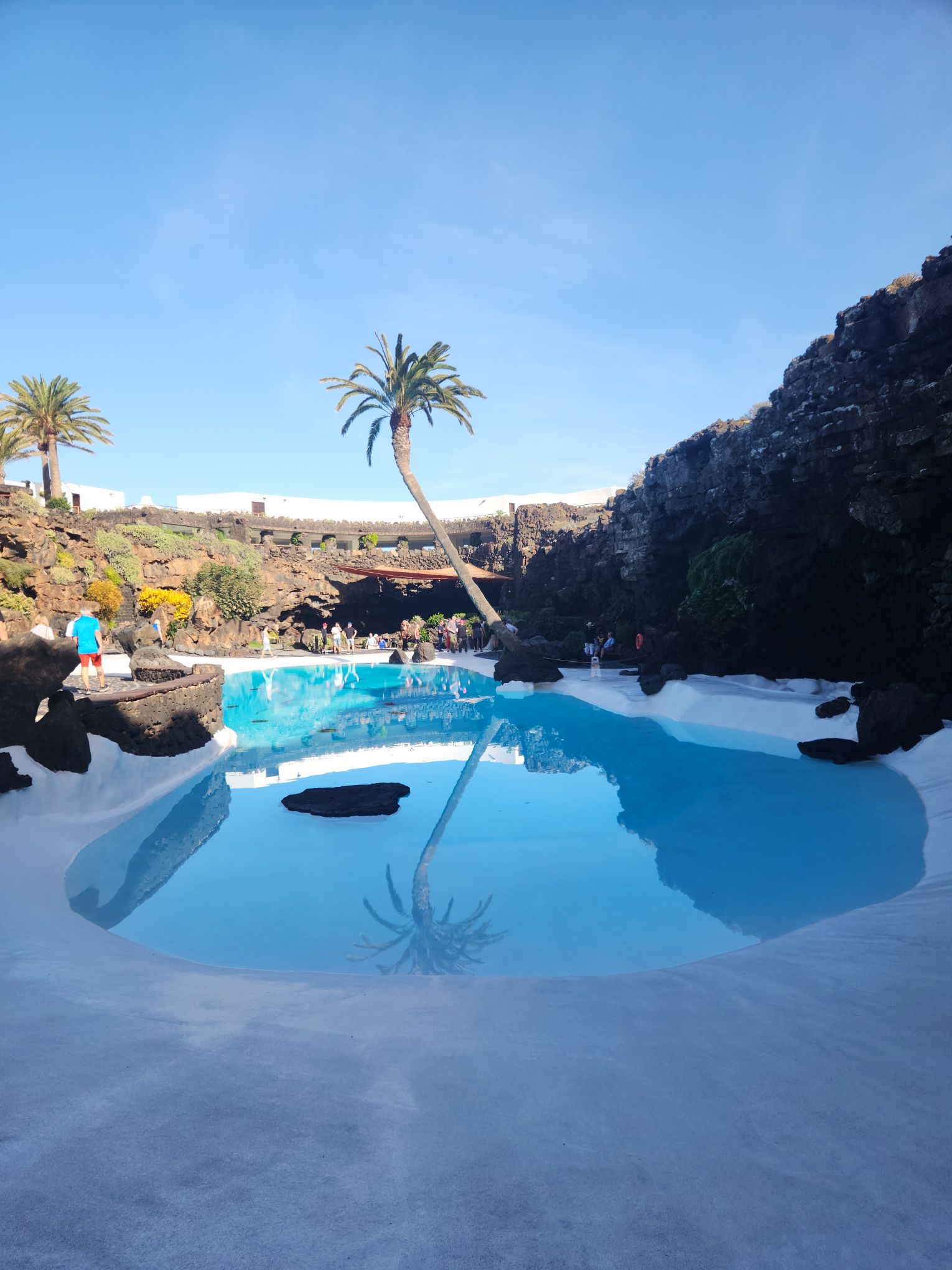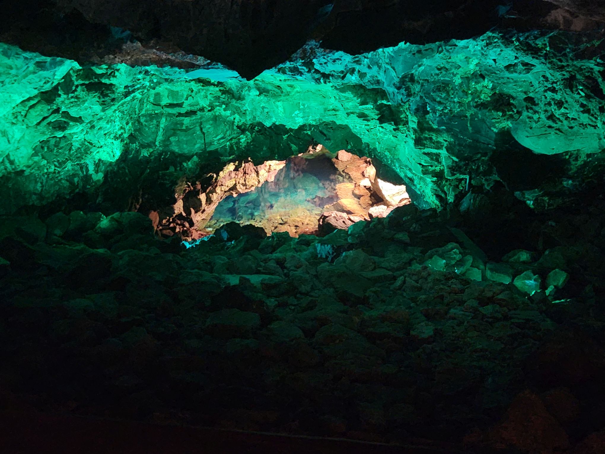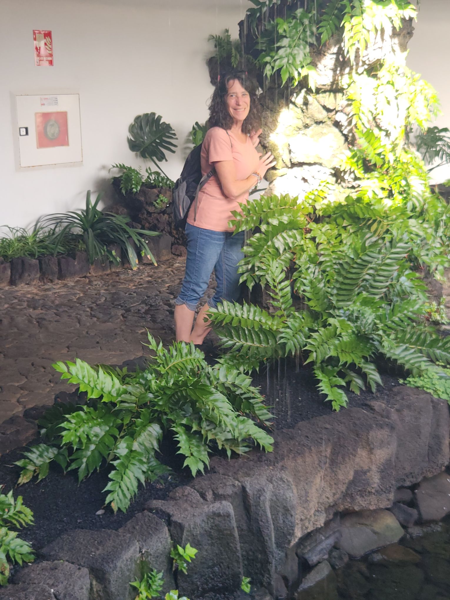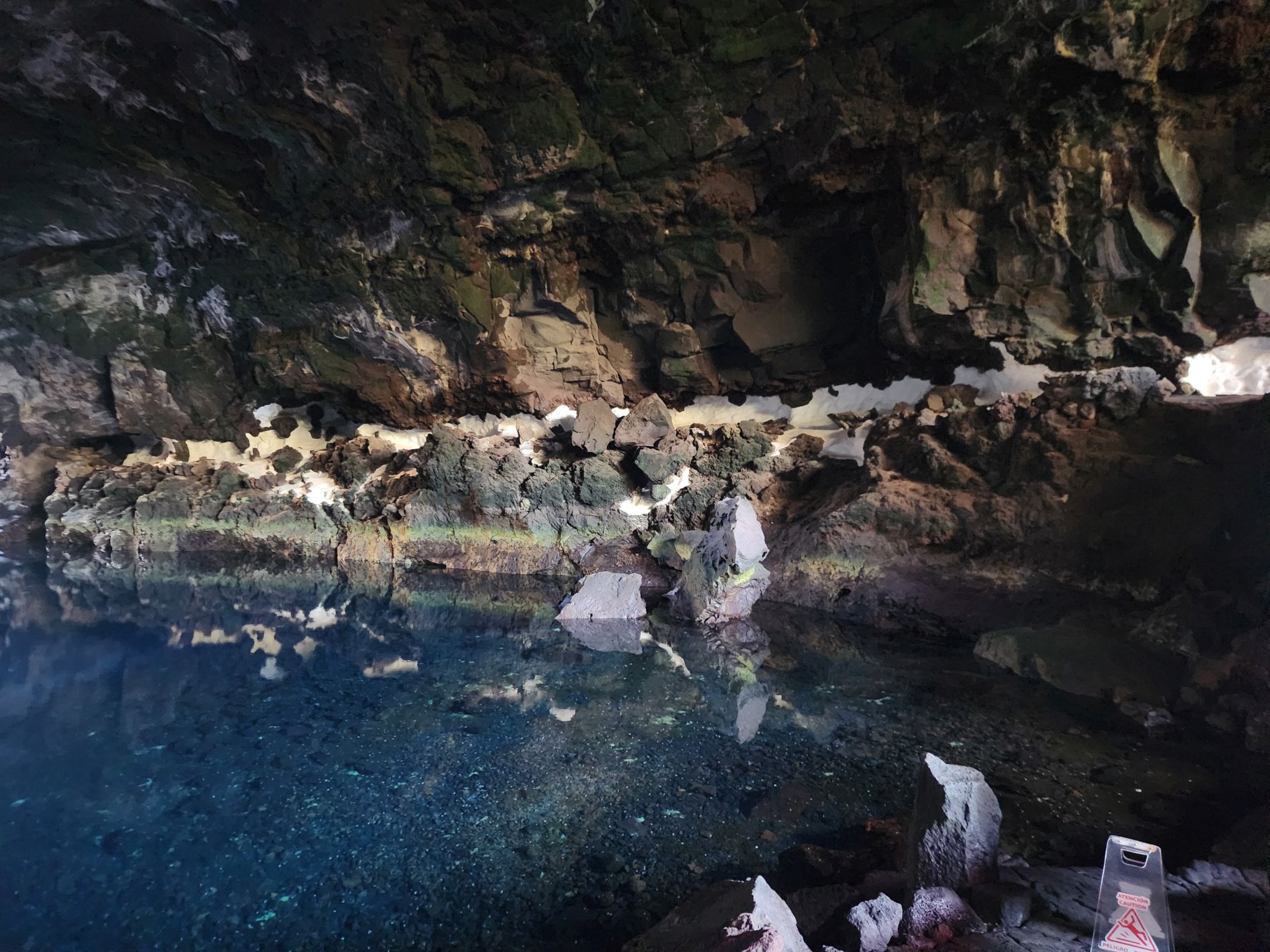 Our next and final stop is at Jameos del Agua, a restaurant and nightclub created by Cesar Manrique. This underground enterprise contains a lagoon where little white crabs live and multiply, a full restaurant, two separate night club dance floors – one made of all recycled wood – a swimming pool (that is no longer in use, but still pristine clean), 3 coffee bars and an auditorium for concerts. Amazing and incredible and quite fun to explore! Cesar was a talented – and versatile – guy, that’s for sure!
